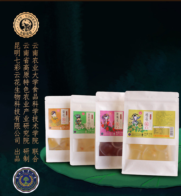 Цветочное желе 1 сельскохозяйственного университета Юньнани кит.фунт Юньнаньский сельскохозяйственный университет, Академия сельскохозяйственных наук, роза, жасмин, желе, цветочные закуски