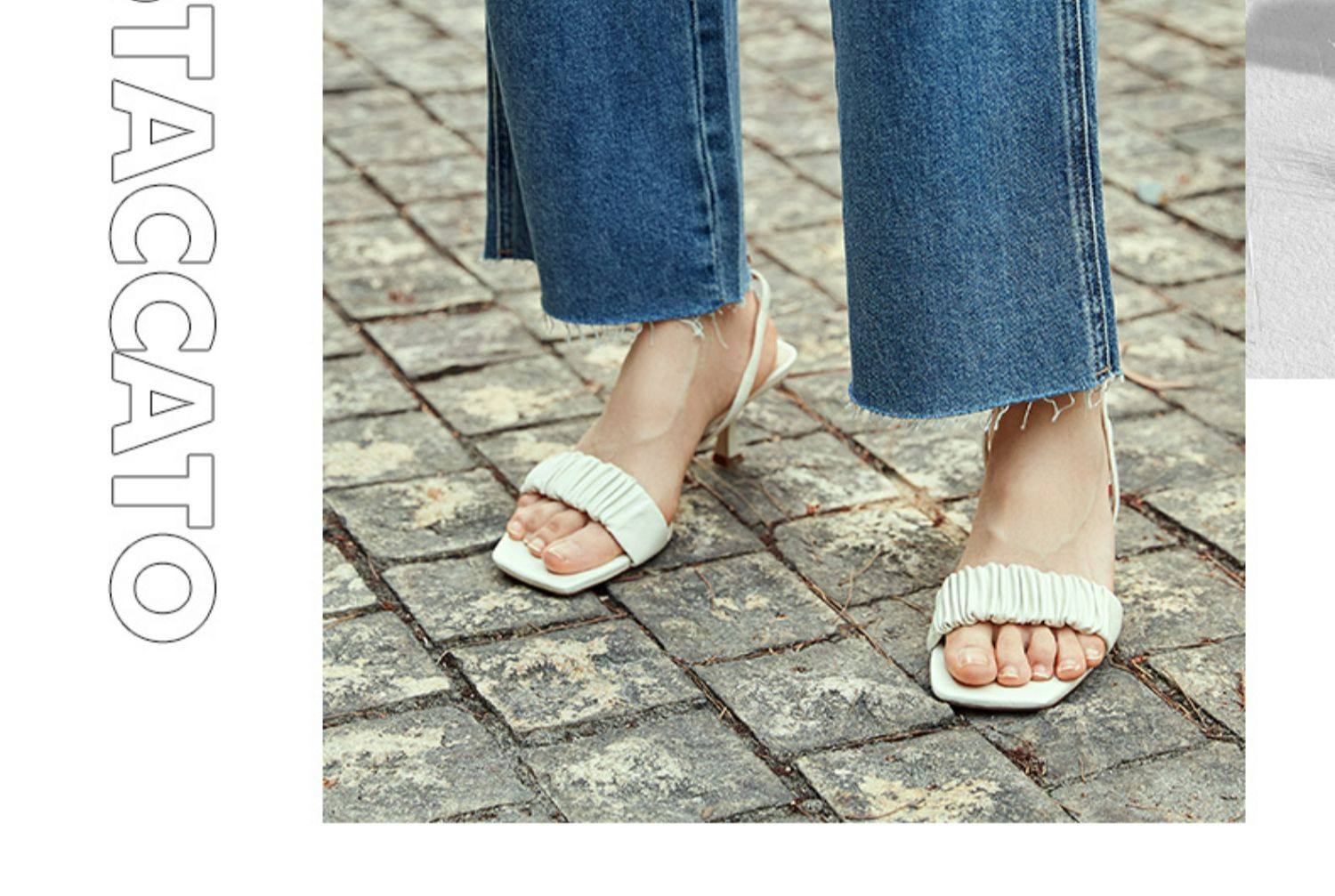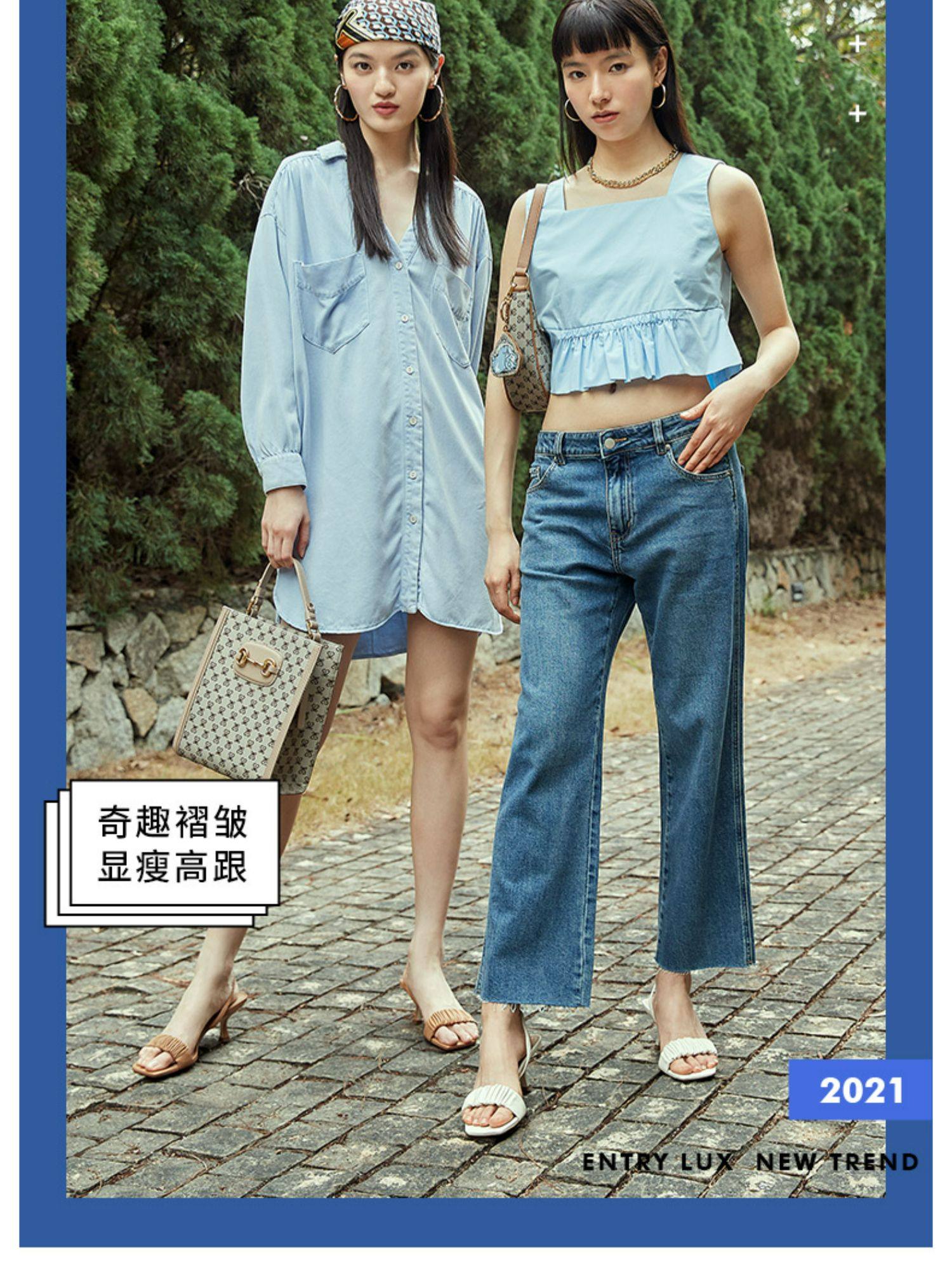 Сумата Лето новая коллекция Сладкий плиссированный сказочный ветер слово Рядом на высоком каблуке Сандалии женские EBQ02BL1.