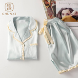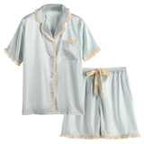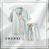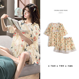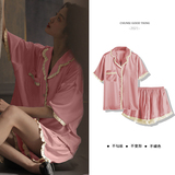 Пижама женский летний ледяной шелк короткий рукав Тонкий стиль копия Реальный шелк может быть сделан дверь Домашняя одежда женский для отдыха два наборы Пакет