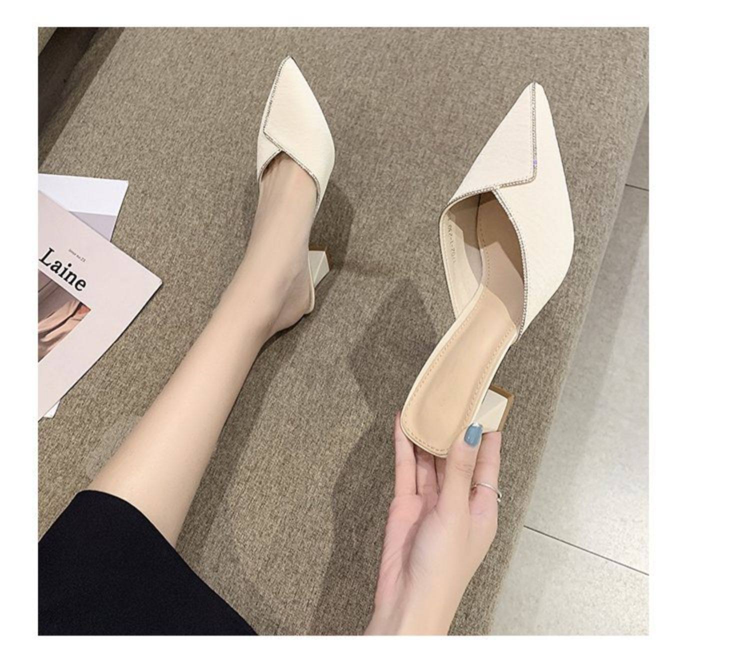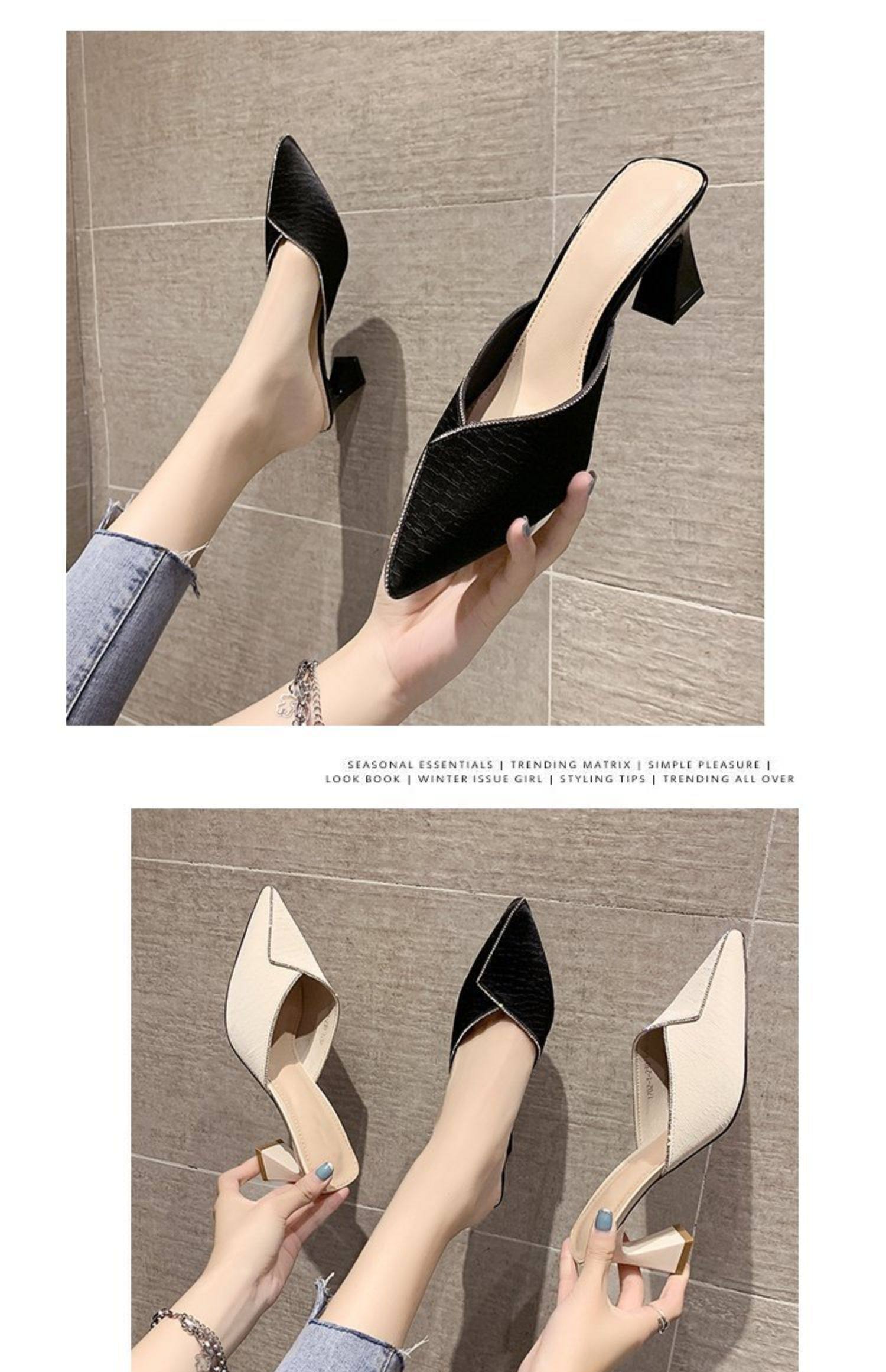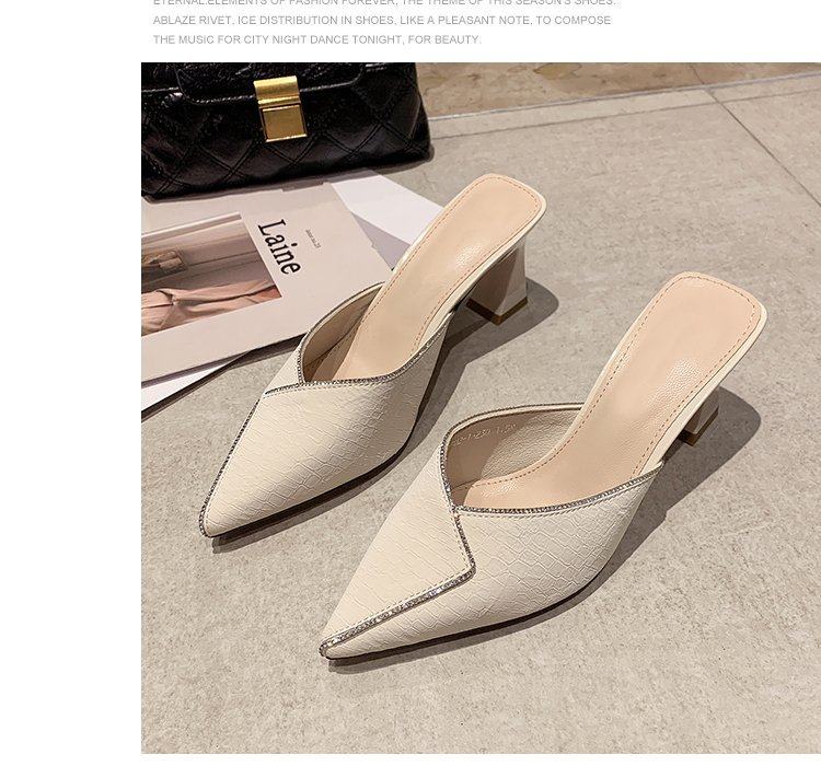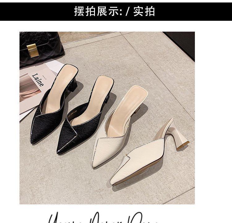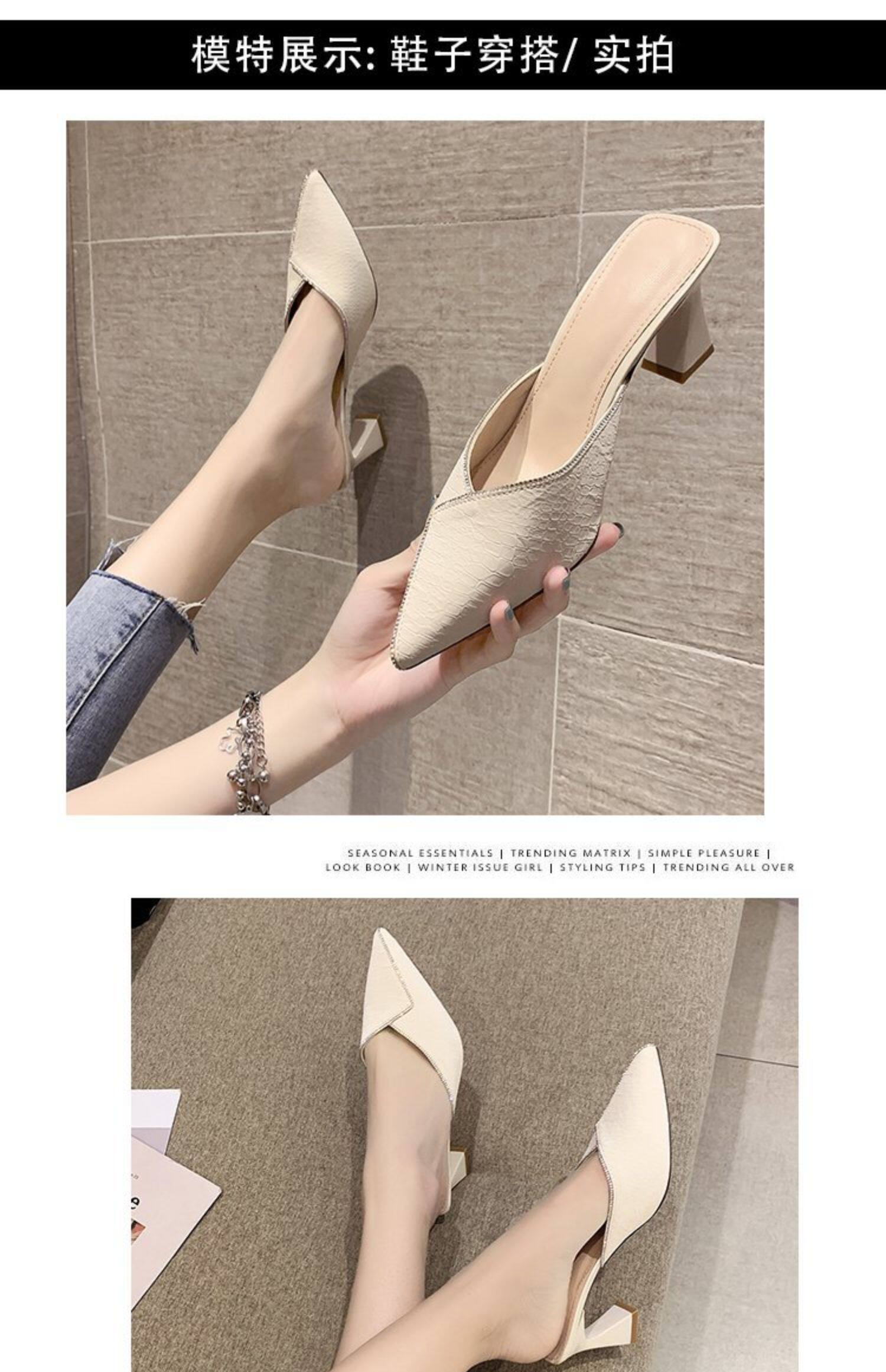 Сеть красный пакет Первая половина тапки Женская одежда лето 2021 года новая коллекция с острым носом широкий каблук на высоком каблуке популярный Лентяй тапки