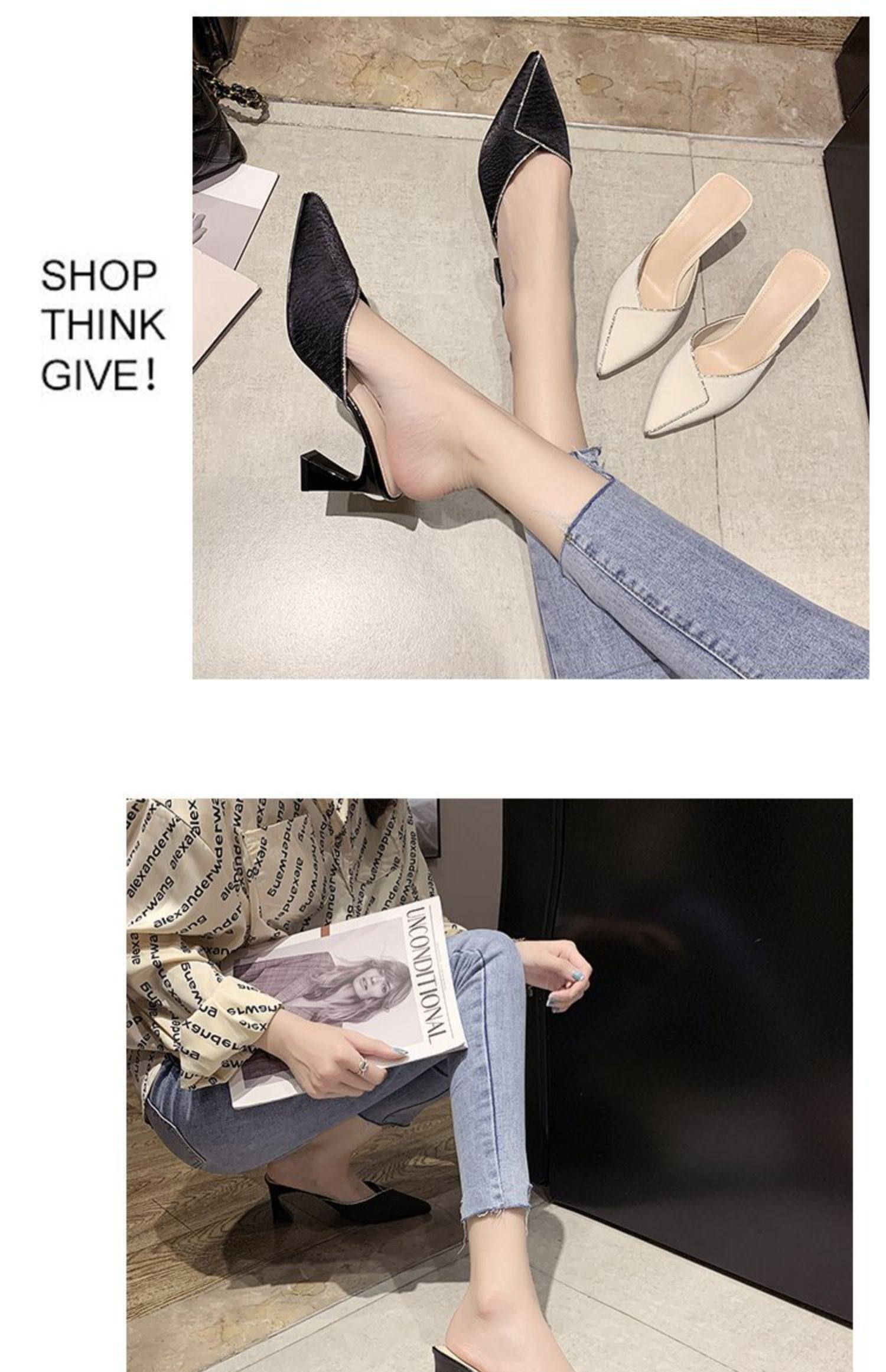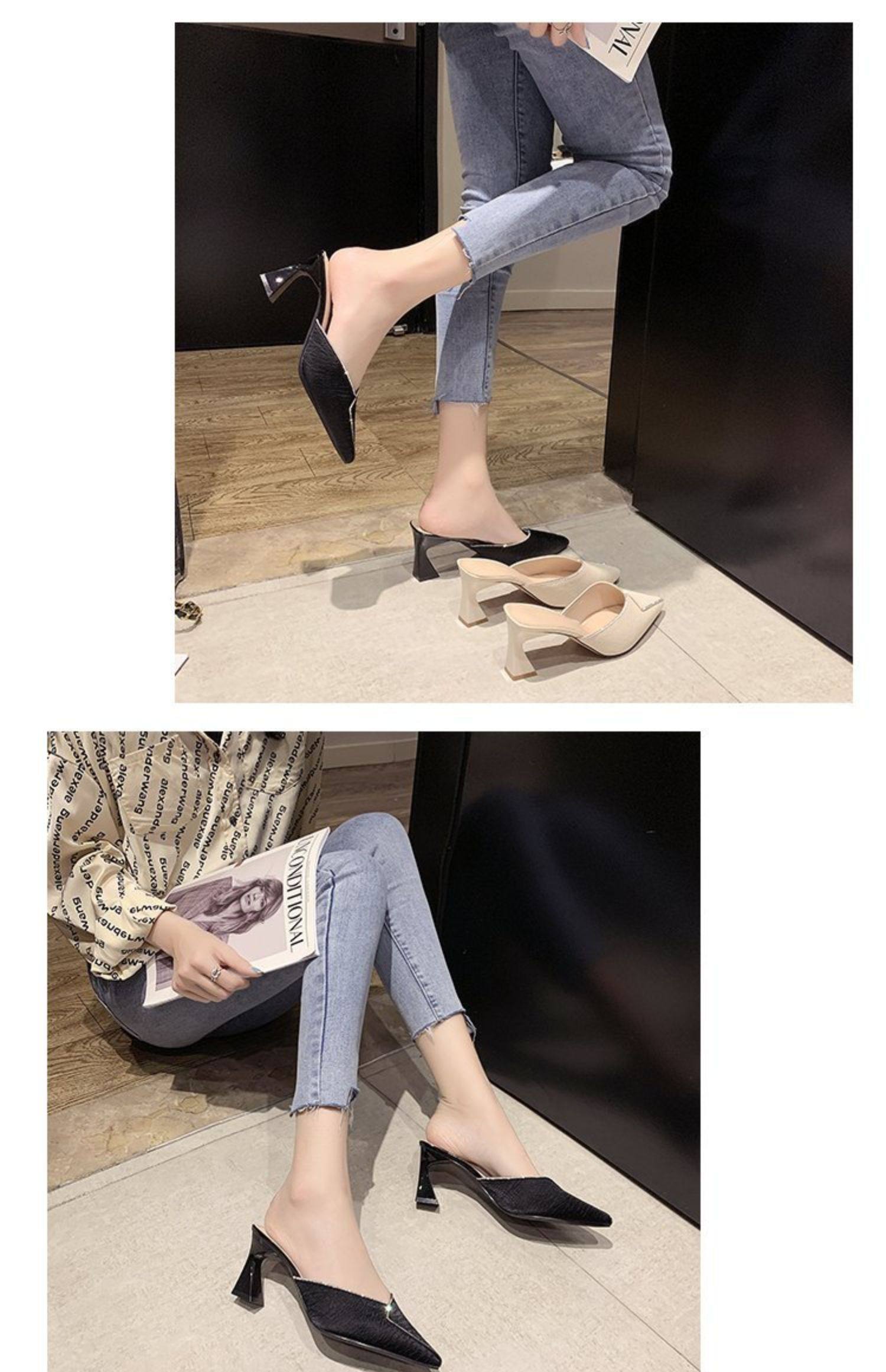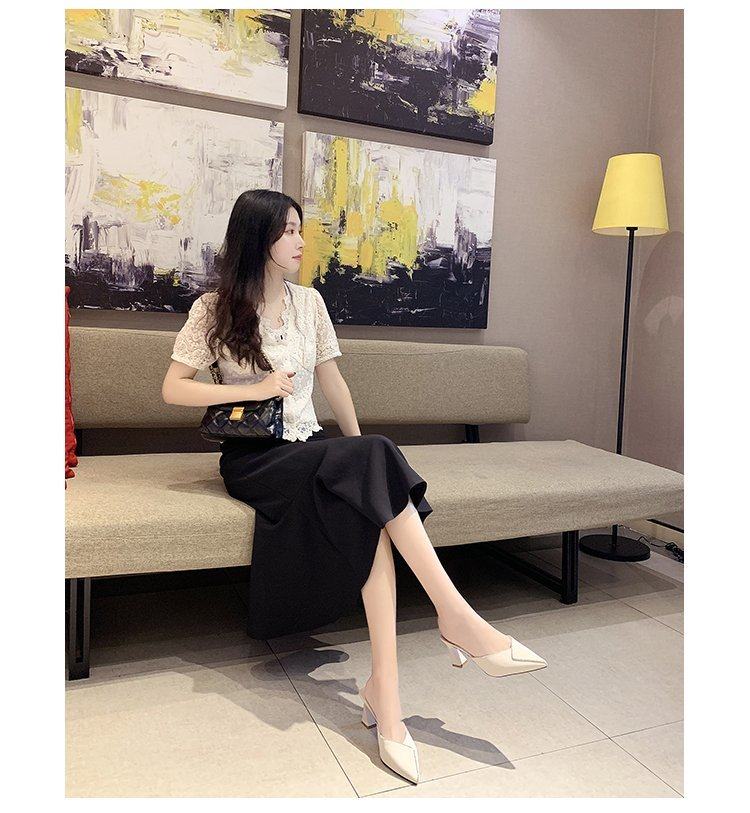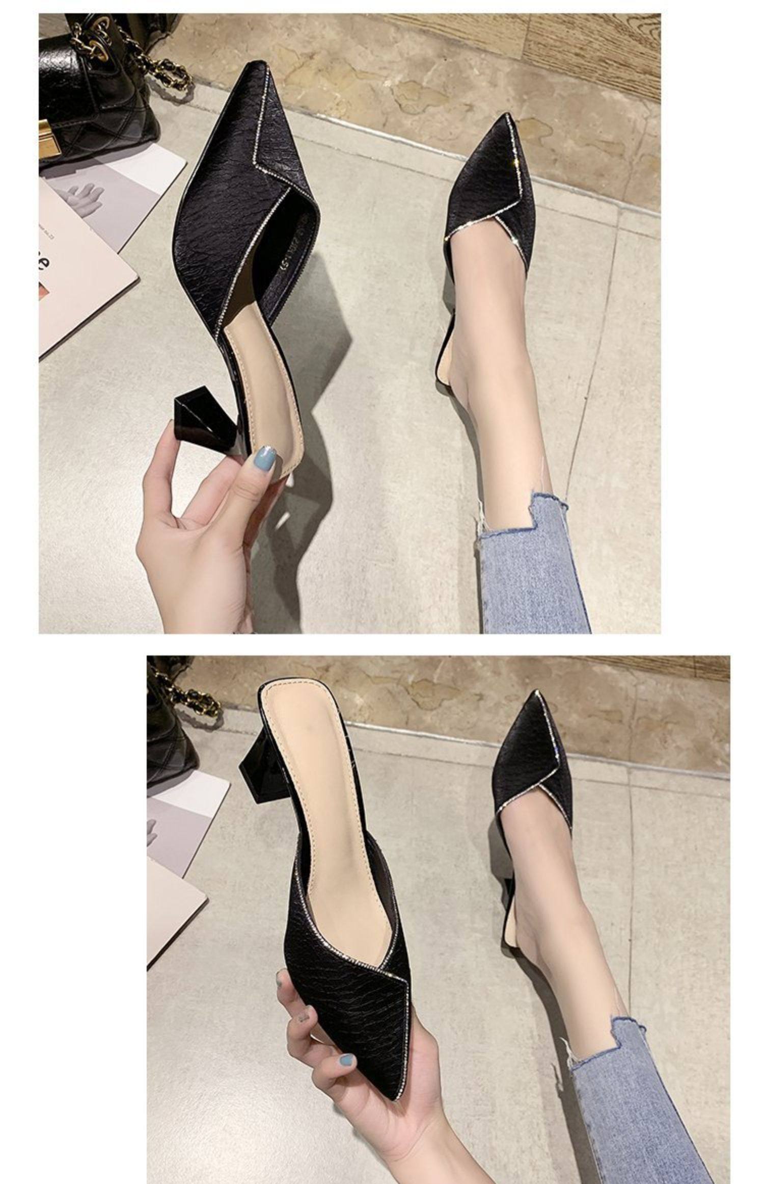 Сеть красный пакет Первая половина тапки Женская одежда лето 2021 года новая коллекция с острым носом широкий каблук на высоком каблуке популярный Лентяй тапки