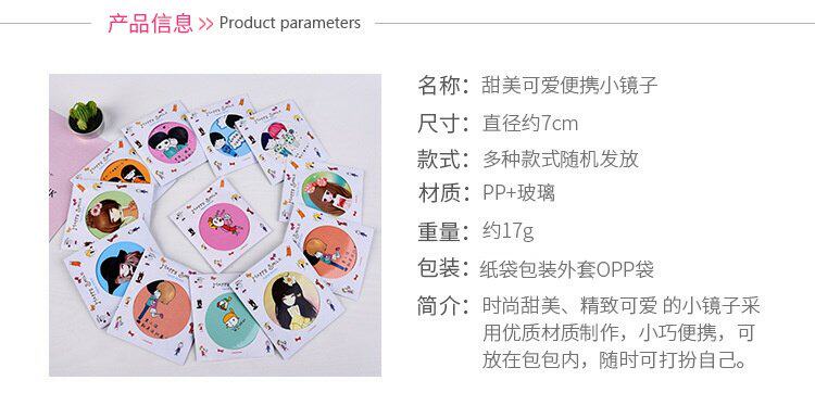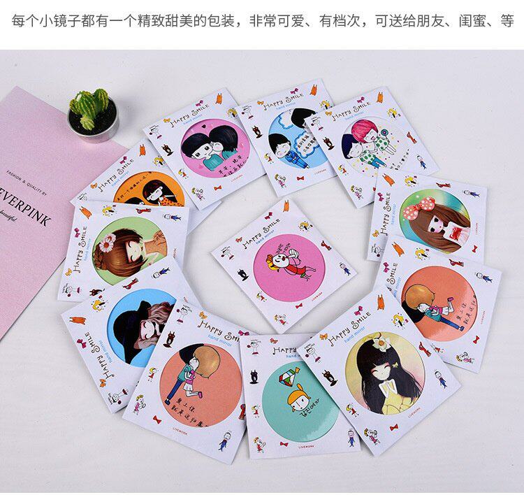 Творческий мини макияж зеркало Портативный макияж зеркало Портативный маленький раунд зеркало Милая девушка студента с карманами Одеваться зеркало