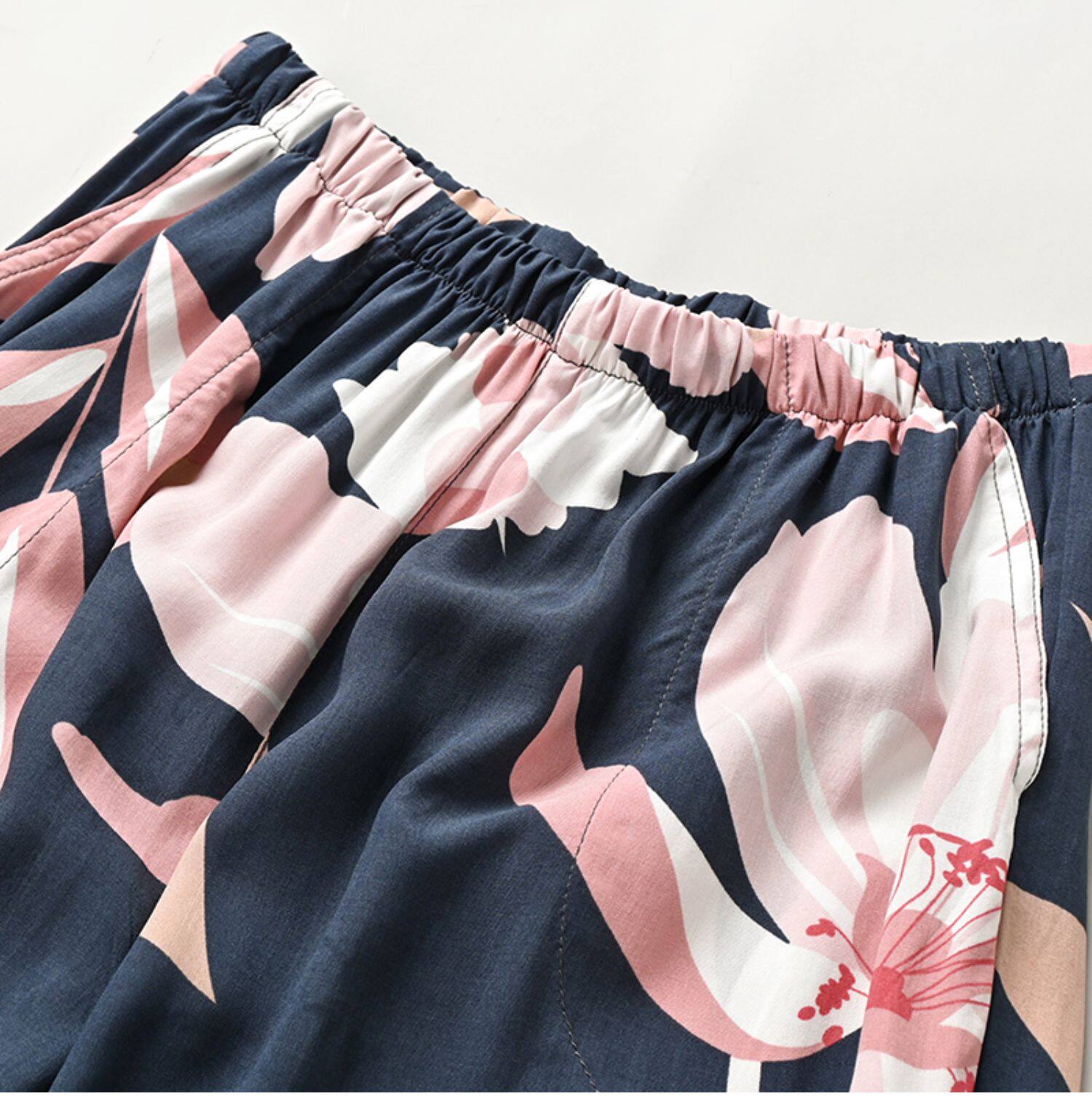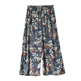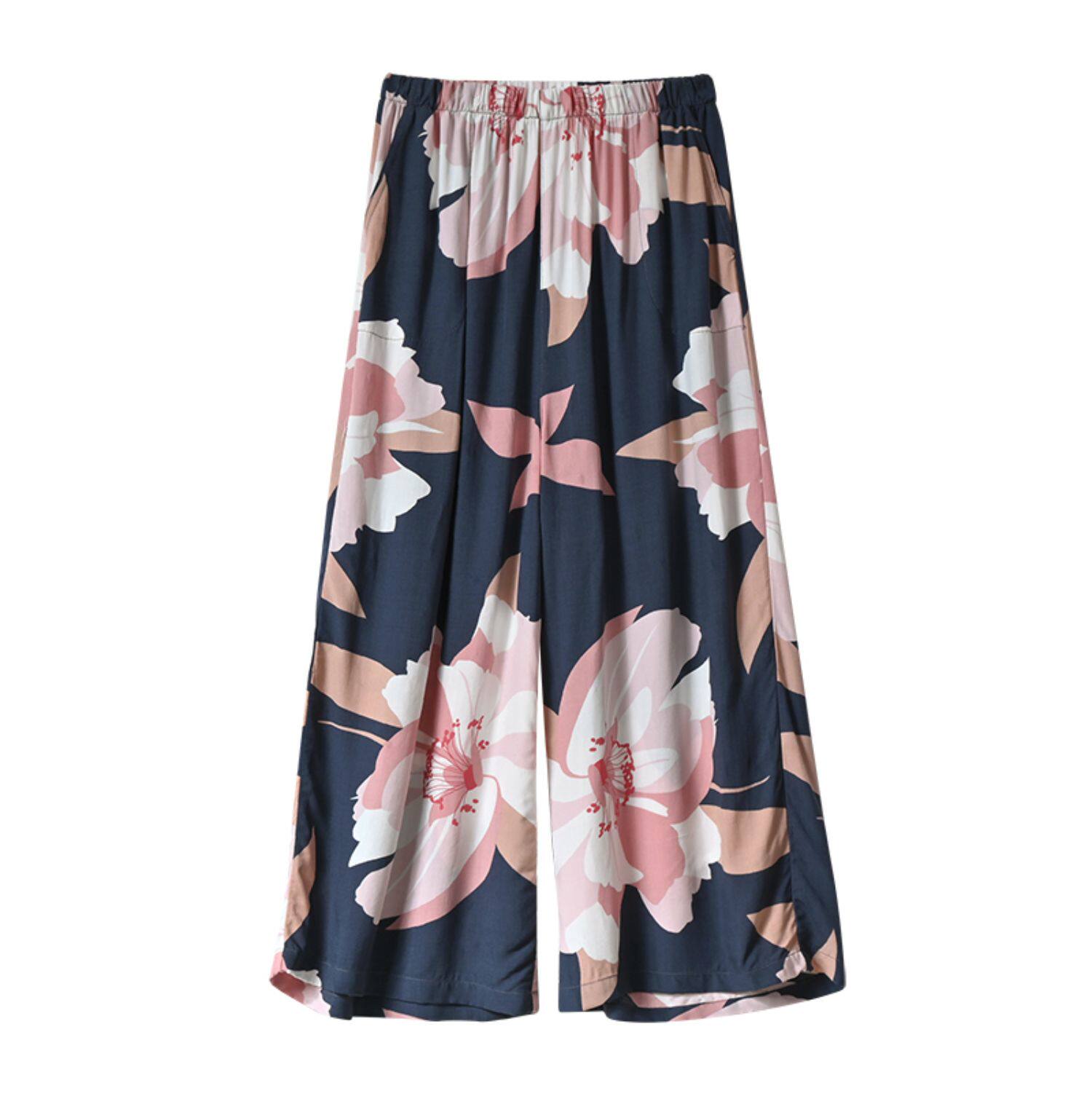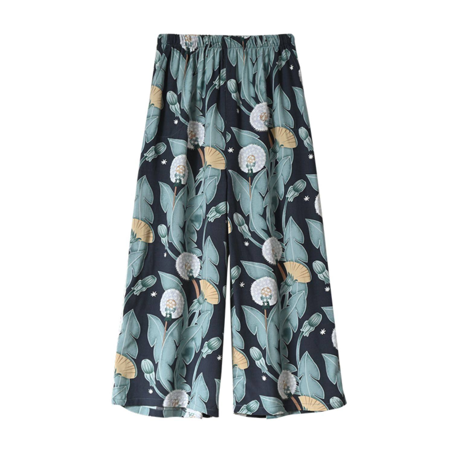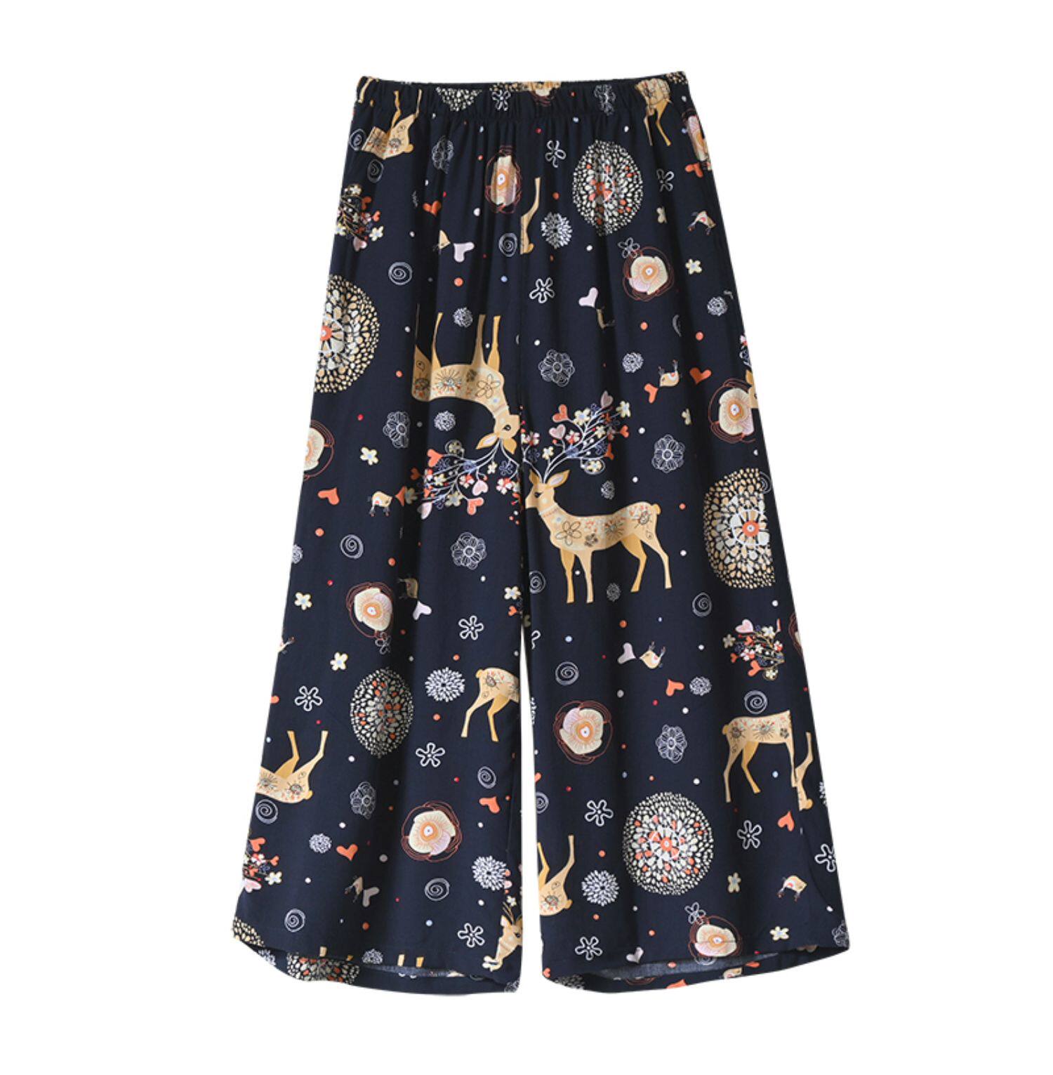Лето женский люди хлопок Широкие ноги Полный печать цветок Летние воротники штаны 7 Летние штаны стиль Женская одежда