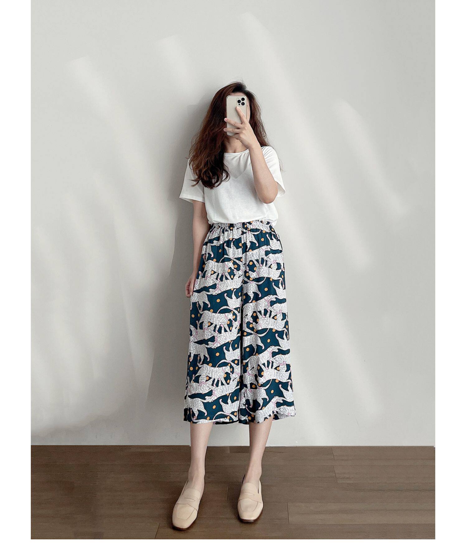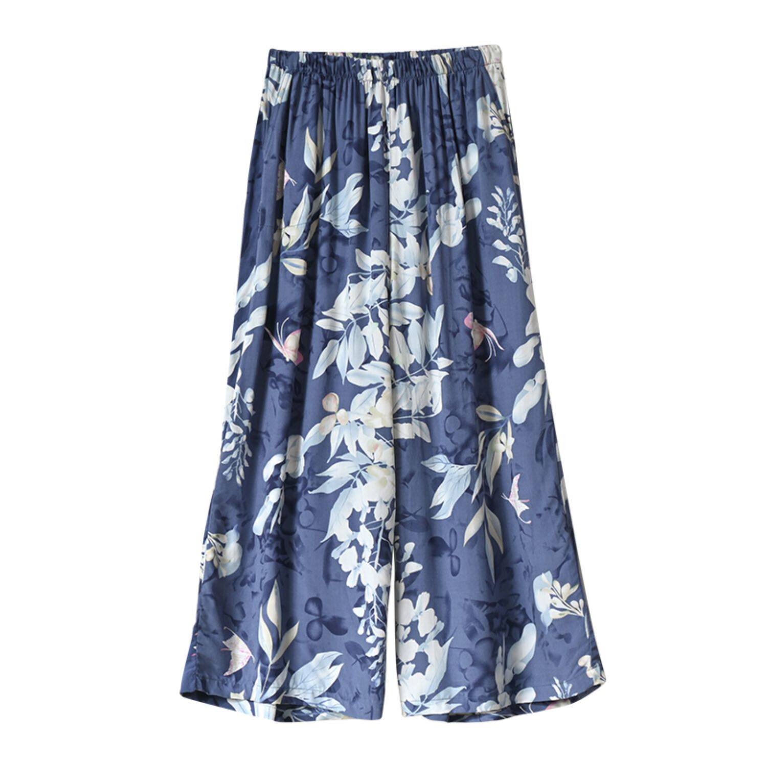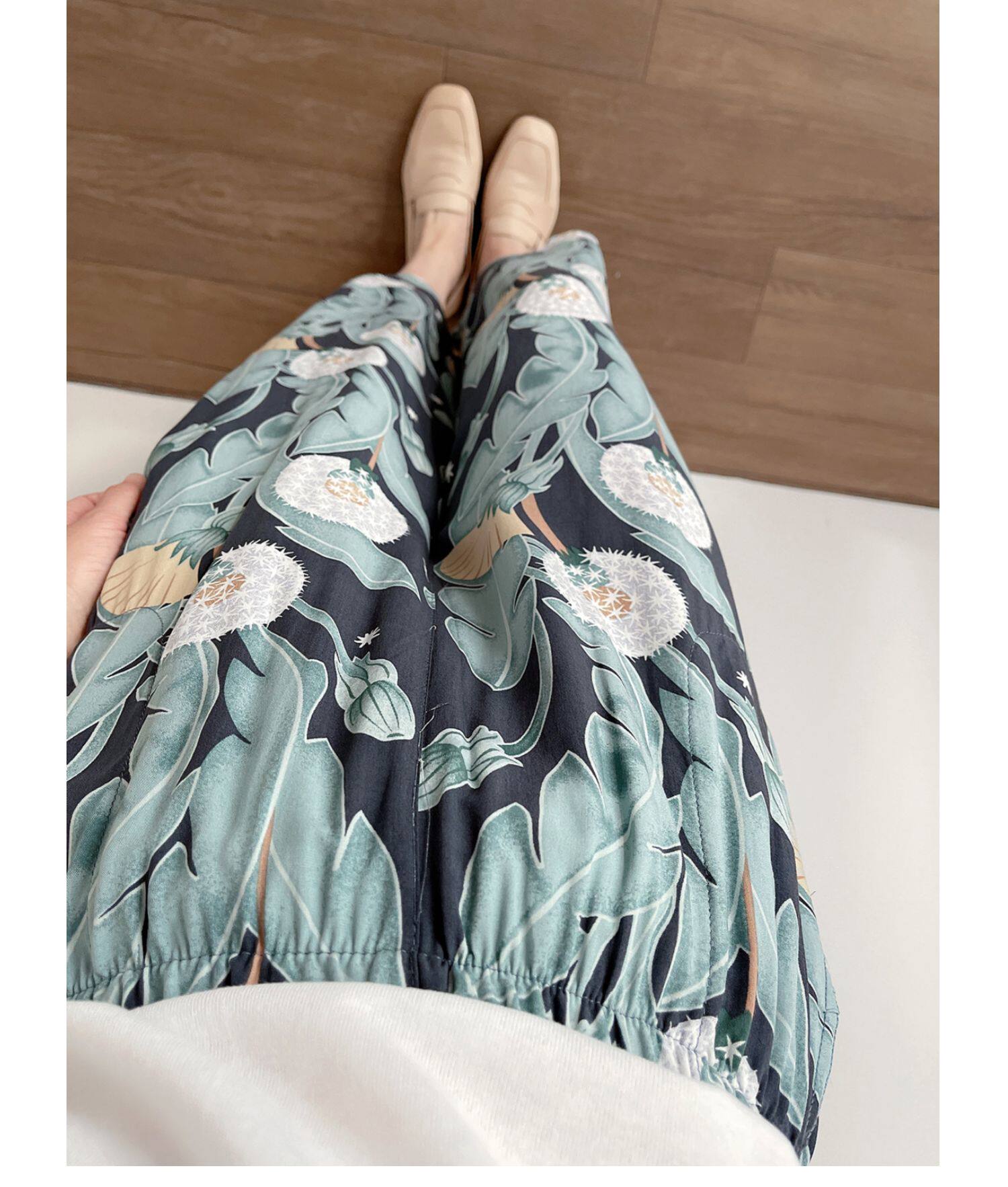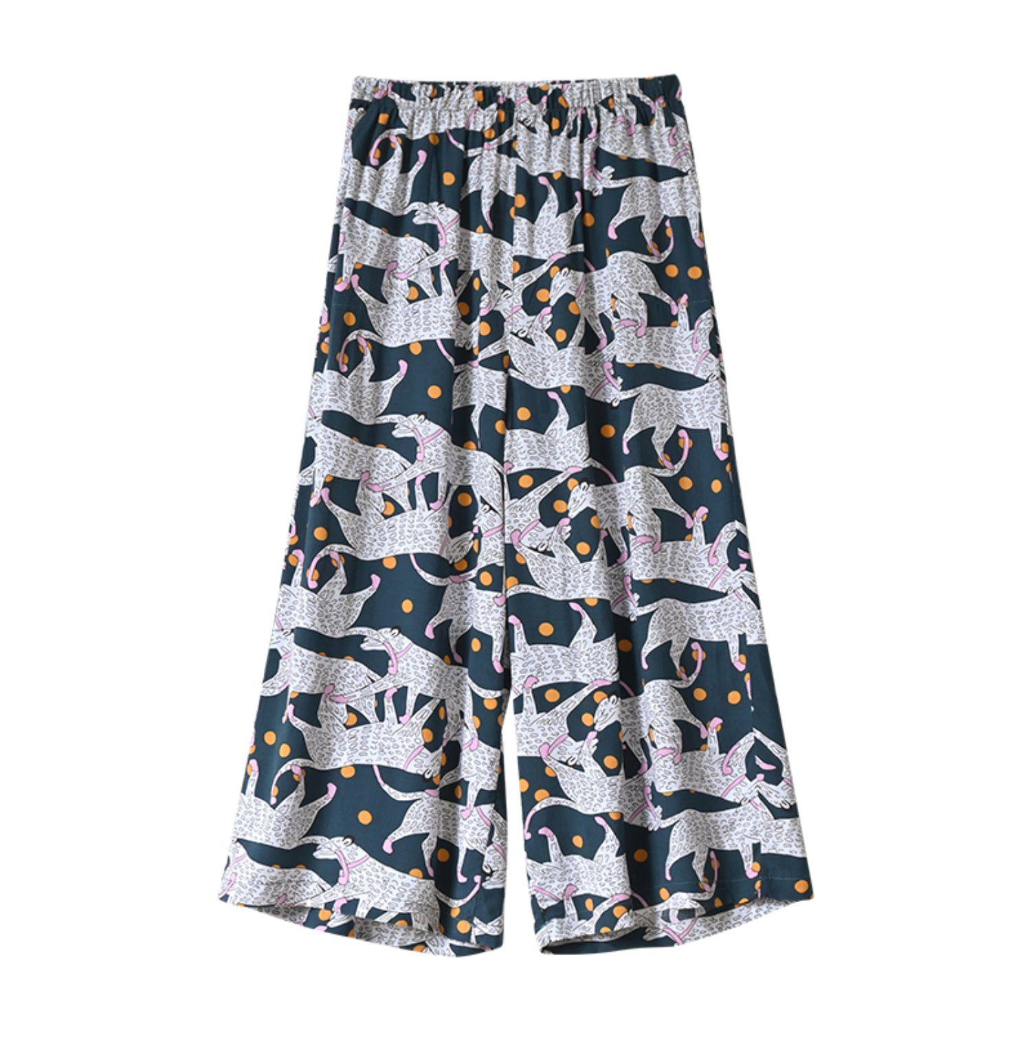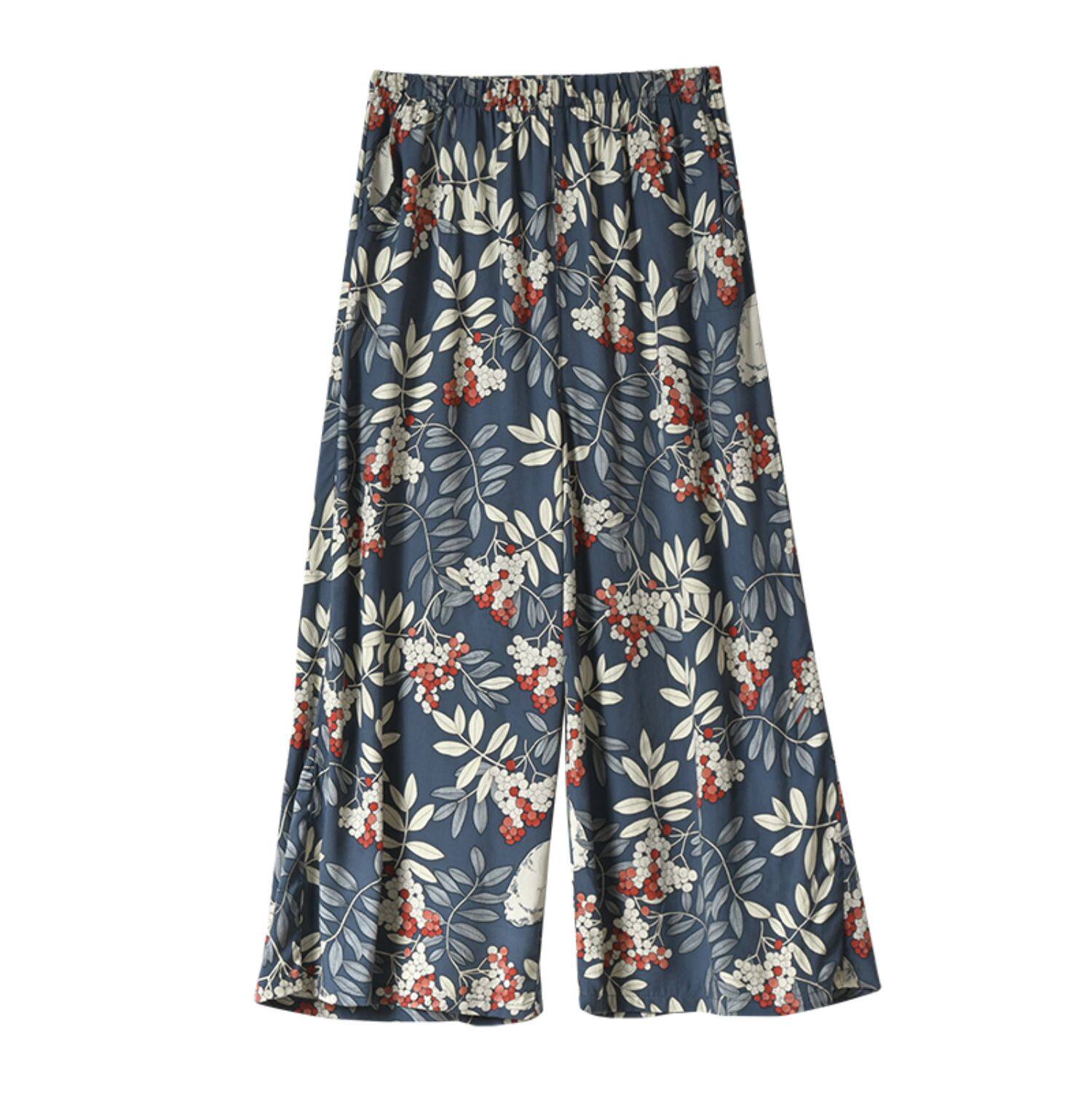 Лето женский люди хлопок Широкие ноги Полный печать цветок Летние воротники штаны 7 Летние штаны стиль Женская одежда