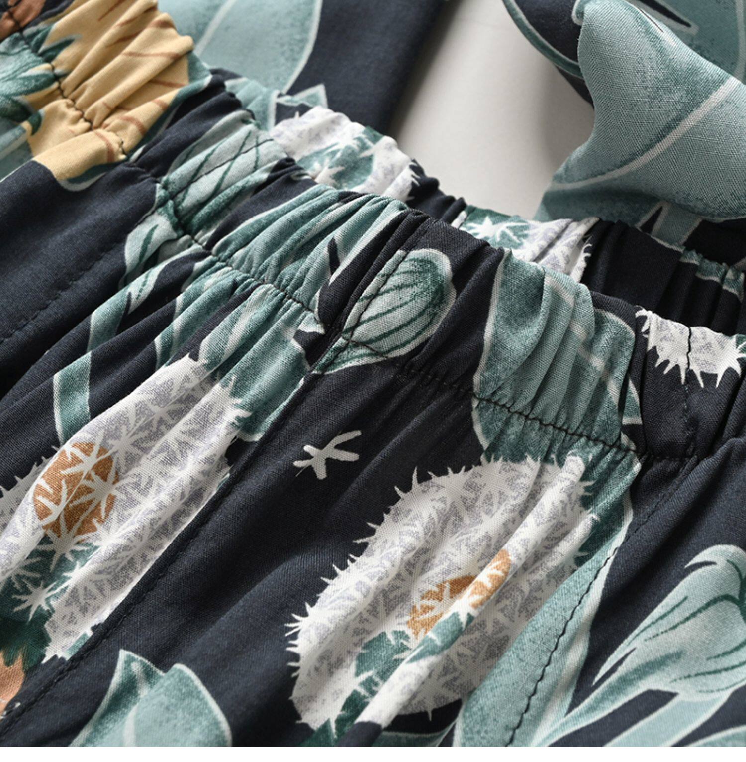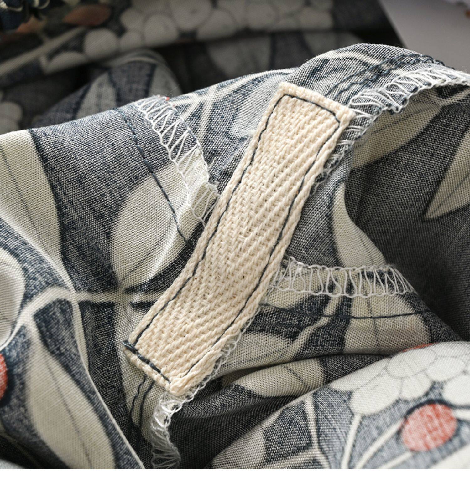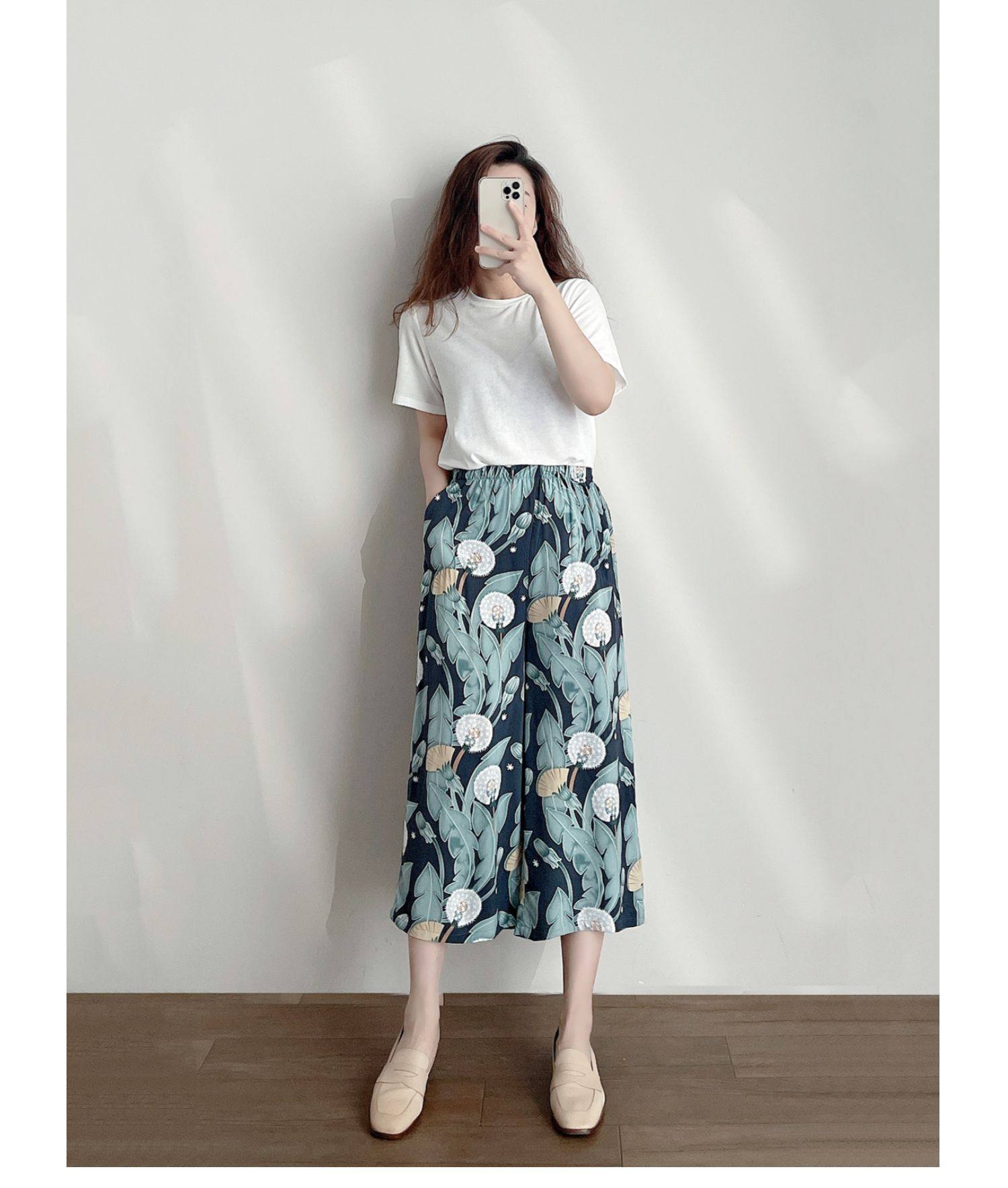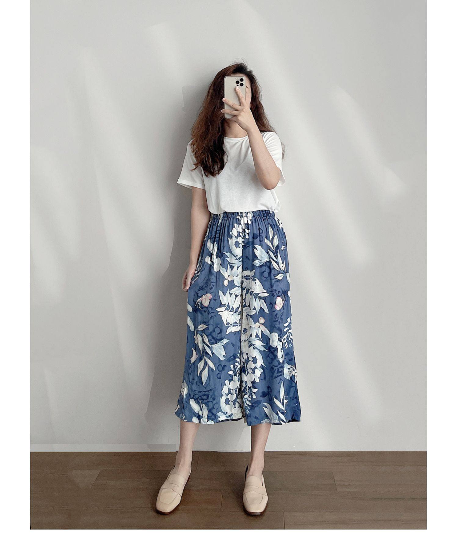 Лето женский люди хлопок Широкие ноги Полный печать цветок Летние воротники штаны 7 Летние штаны стиль Женская одежда