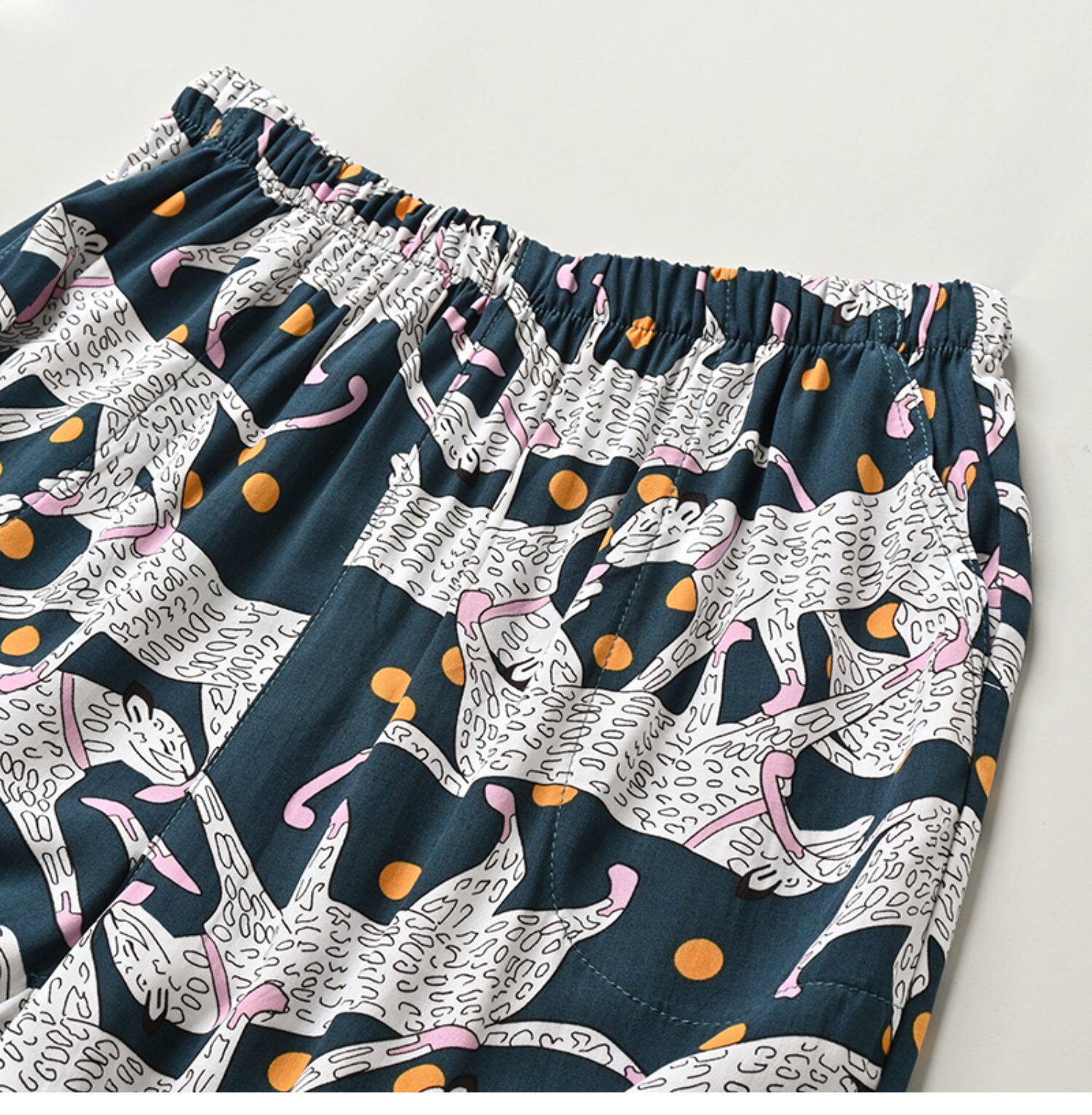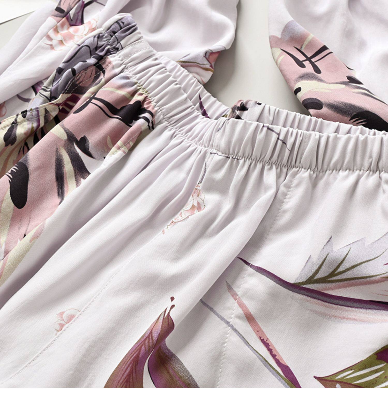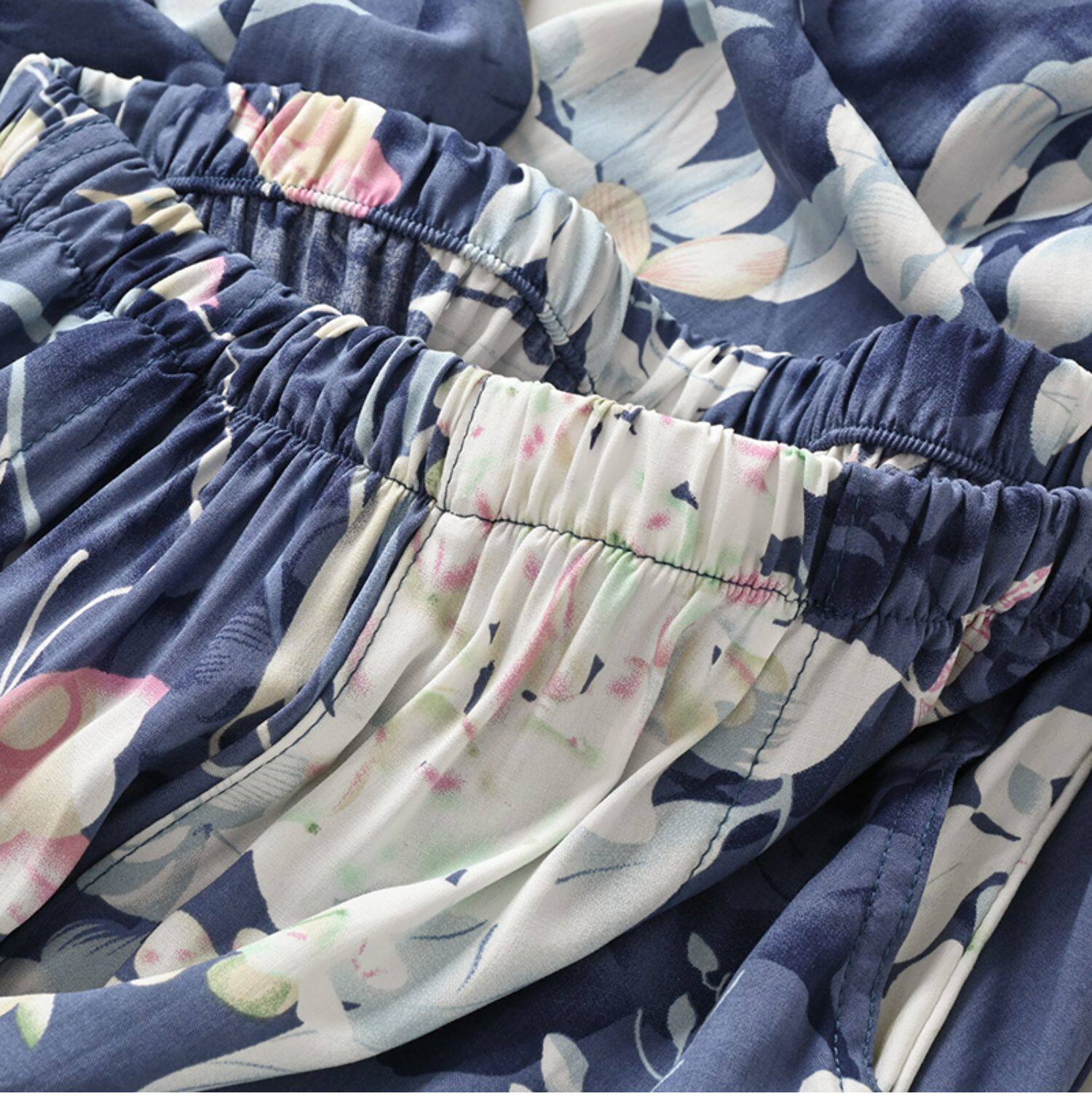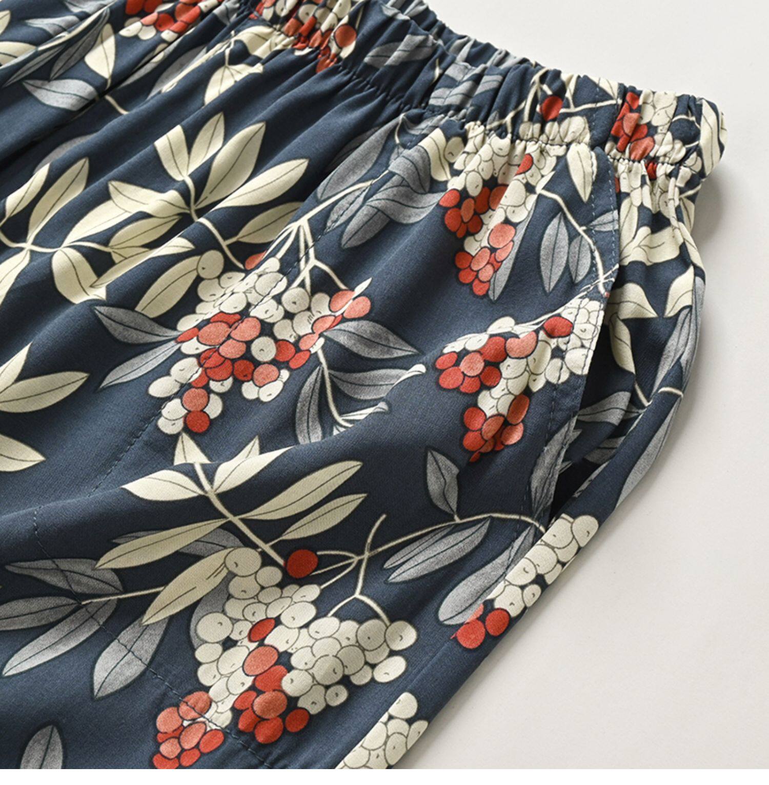Лето женский люди хлопок Широкие ноги Полный печать цветок Летние воротники штаны 7 Летние штаны стиль Женская одежда