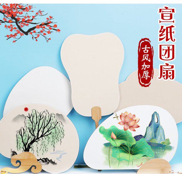 Утепленный нулевой белый Dynasty Paper Group Fan Palace Fan Вода цвет Китайская роспись DIY каллиграфические чернила картина древний ветер круговой вентилятор материал пакет