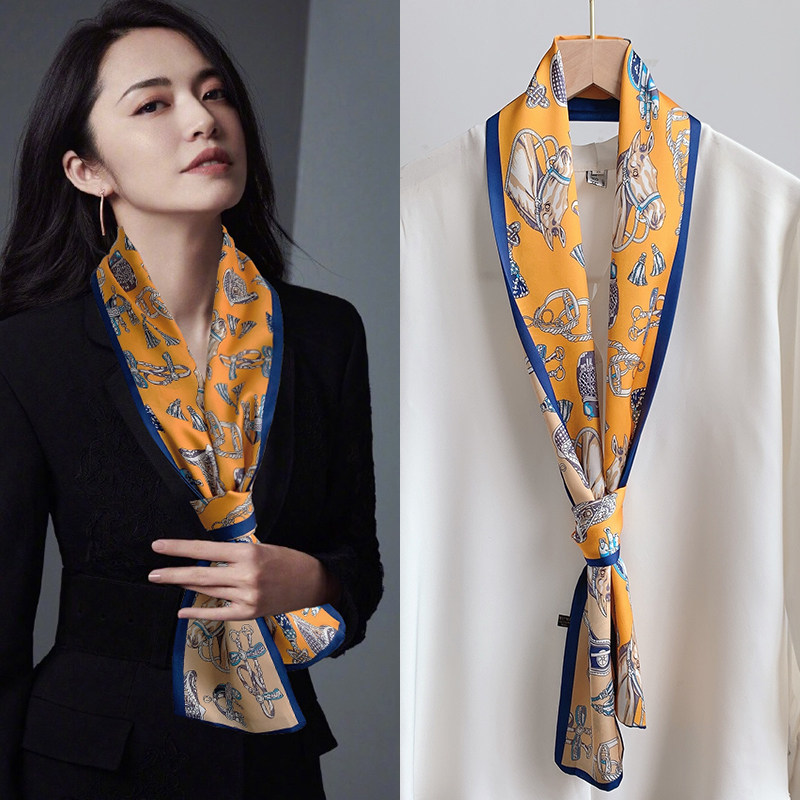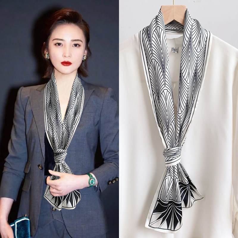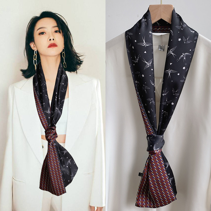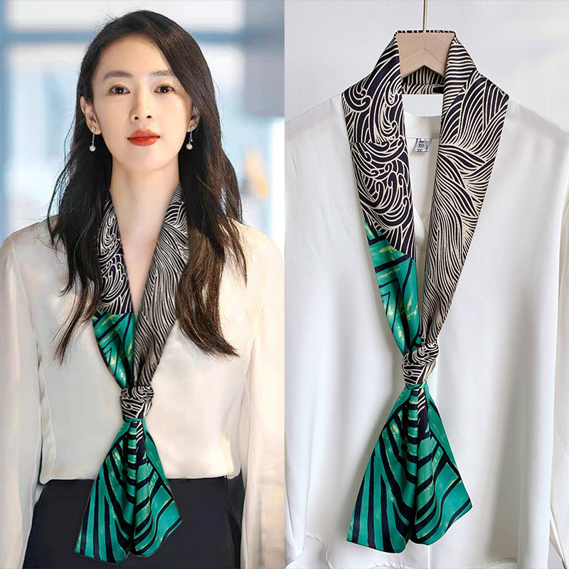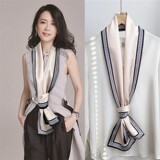 Небольшая длина полосатый Квадратное полотенце узкий Шарф женщина демисезонный Летнее украшение шарф Пряжа сорочка европейский покрой Галстук