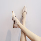 Сеть красный Ленивая мягкая кожа с острым носом Половина тапки туфли Комфортный на плоской подошве Беременные женщины в летней одежде популярный холодный тапки