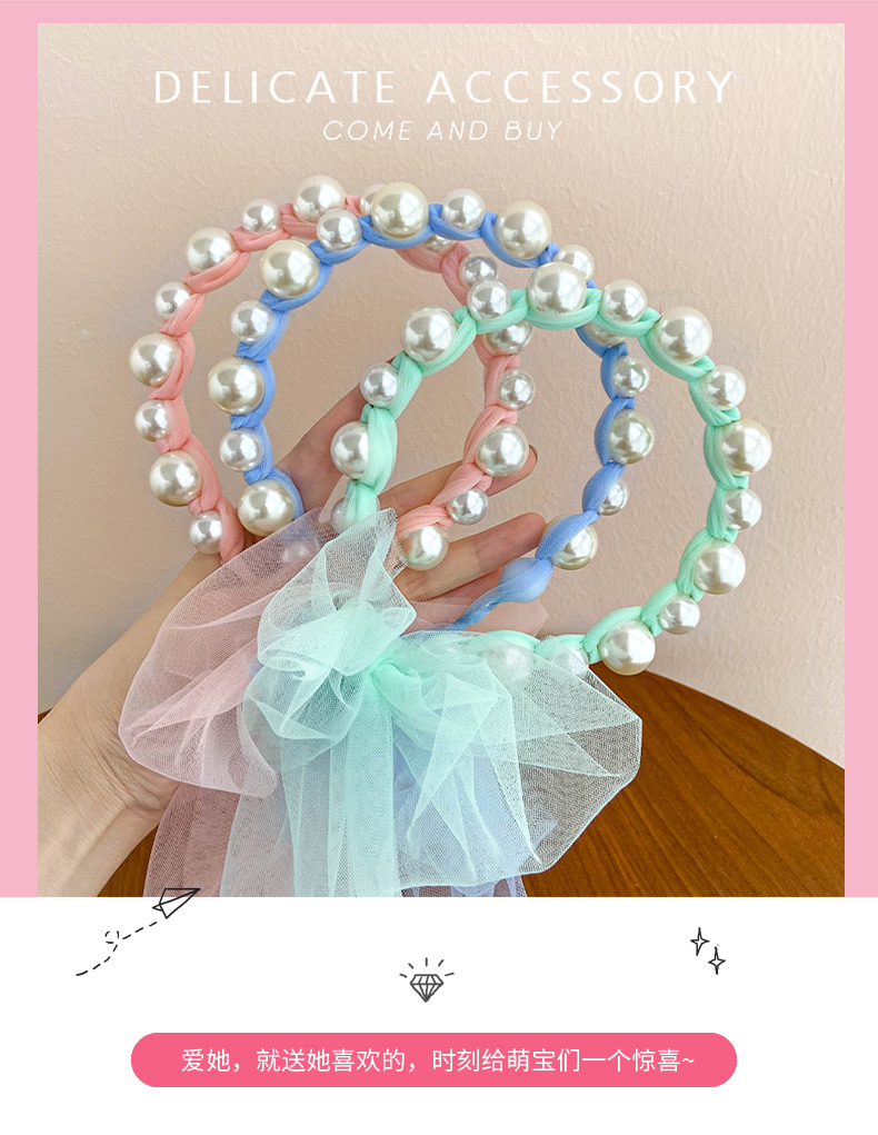 Детские с жемчужинами Цветочный оголовье корейский Не больно для маленькой принцессы Сетки лошадей хвост Повязка на голову на девочку бантики Прилив