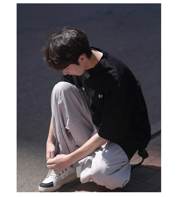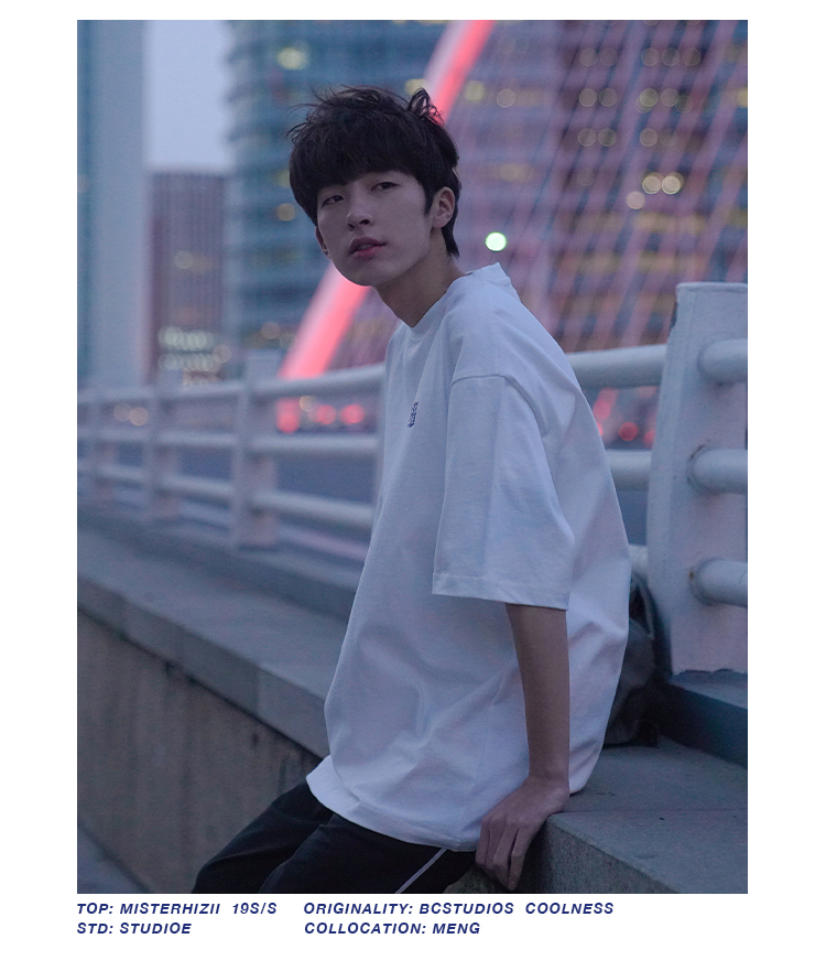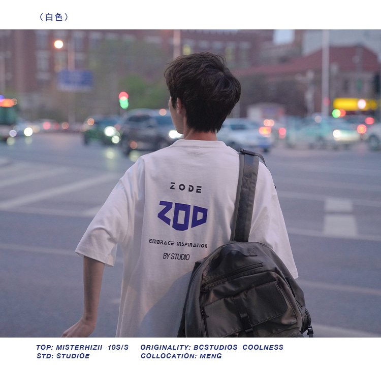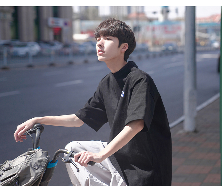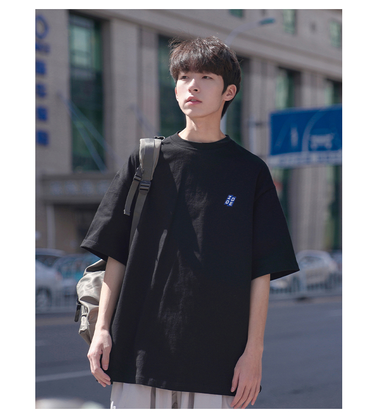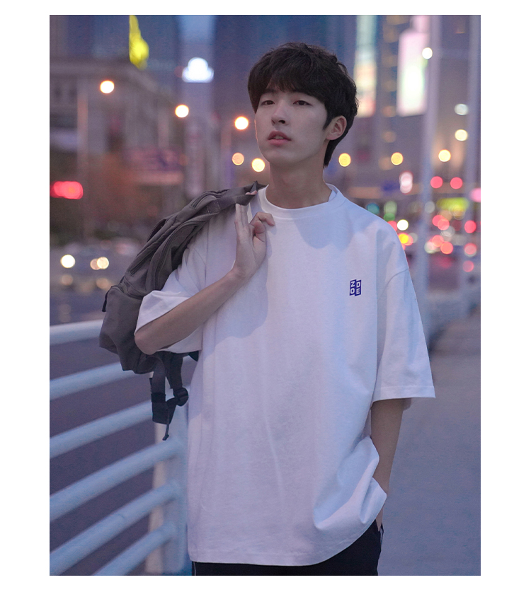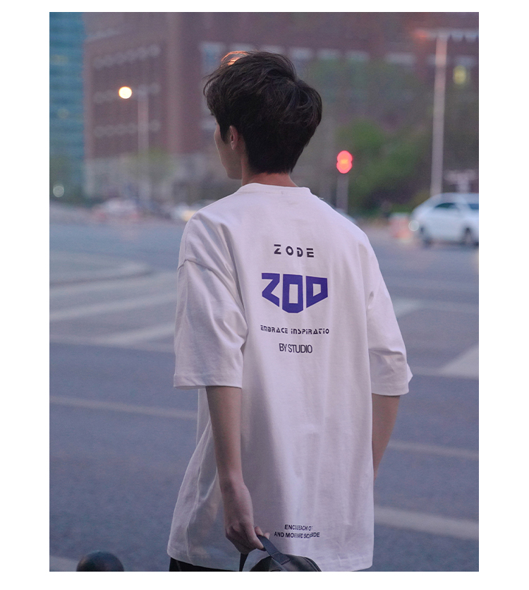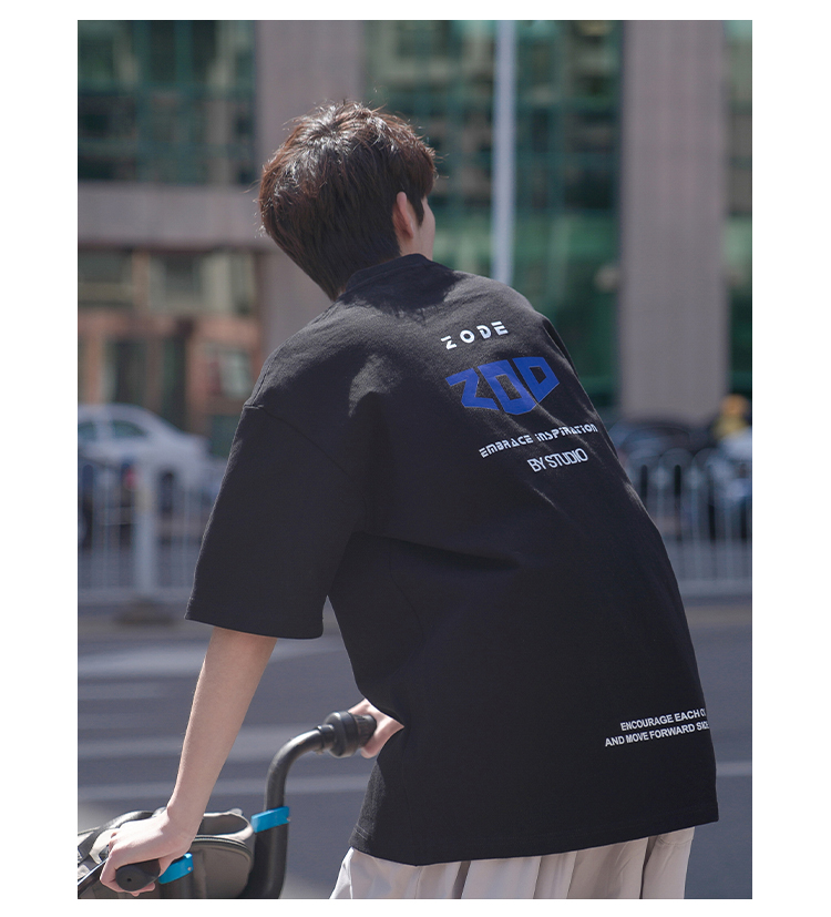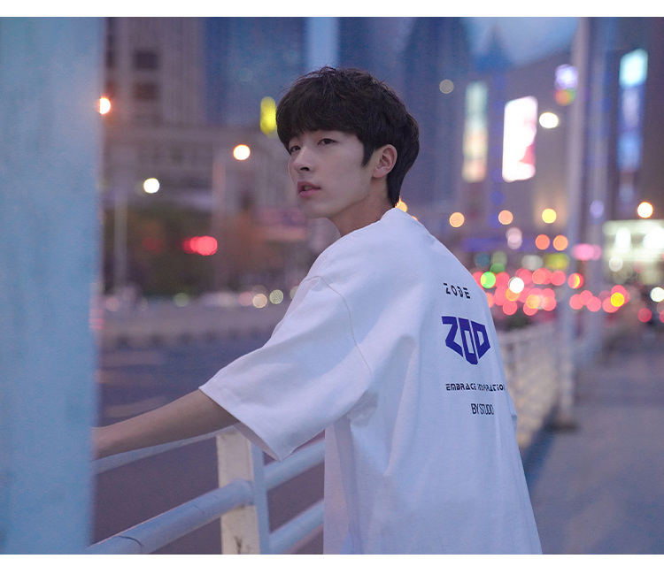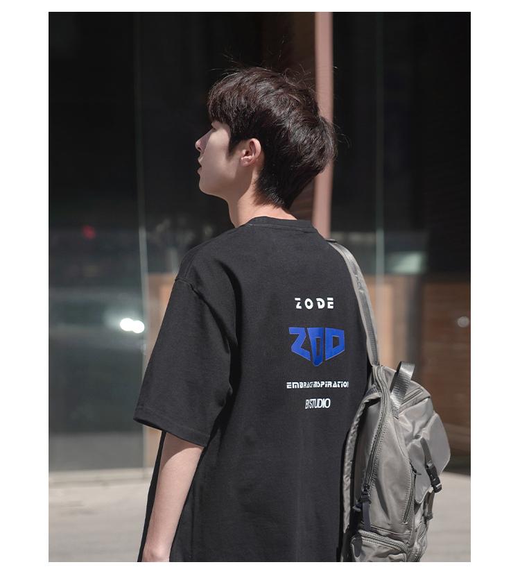 H2022 новый товар новинка мужской короткий рукав Футболка корейская версия Свободные напечатанные и плечо полу рукава Гонконг вкус в аромате Chic Tidal Student верх Одежда