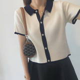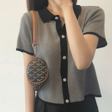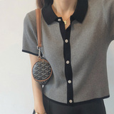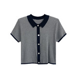Маленький ветер короткий рукав верх Одежда трикотажный Подметающие рубашки Поло рубашка Летний сезон с застежкой короткий Ледяной шелковый отворот серый Футболка свободная