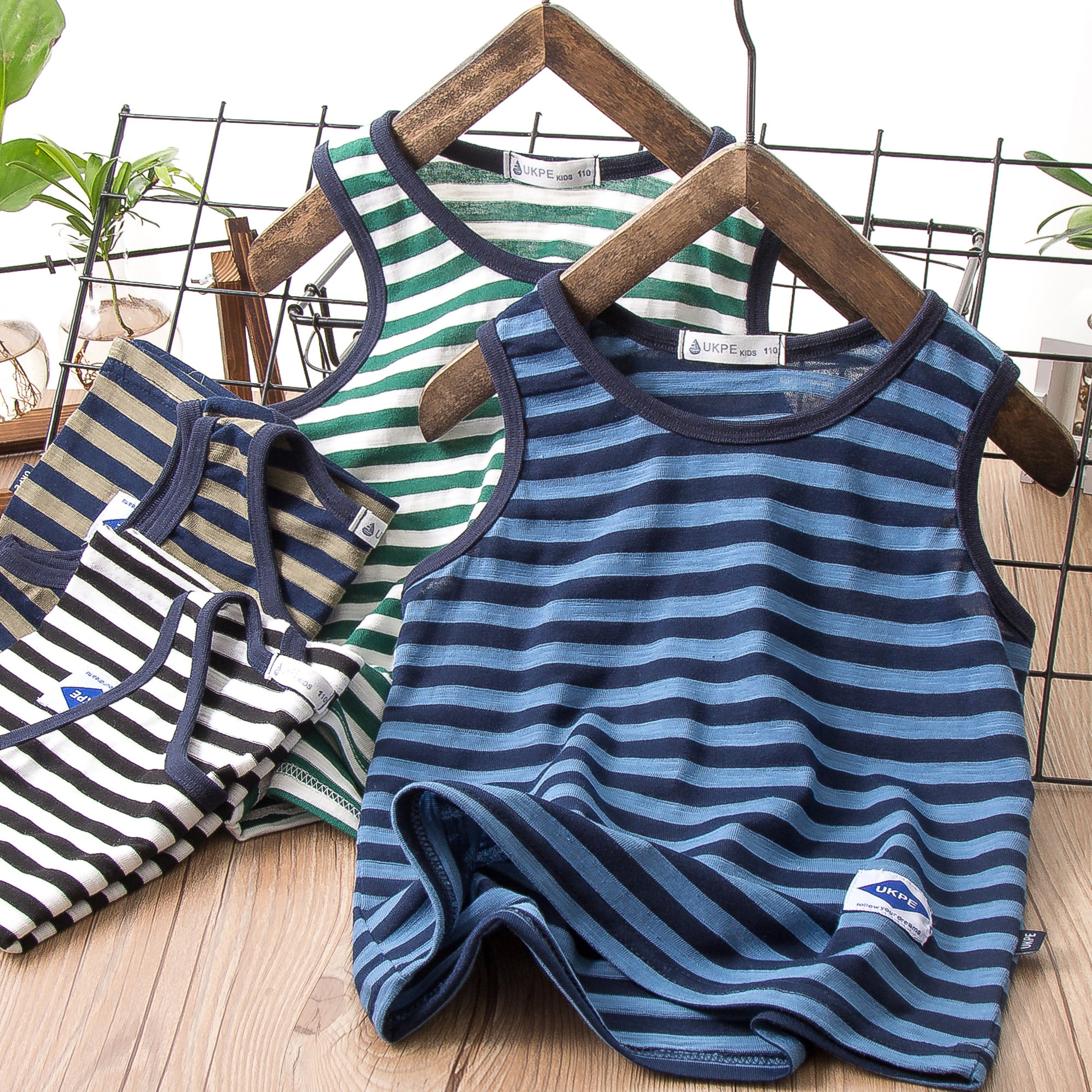 На мальчика Бамбуковый фестиваль хлопок Жилет детские полосатый принт Нижняя лента чистый хлопок верх Одежда воздухопроницаемый без Футболка рукава стиль