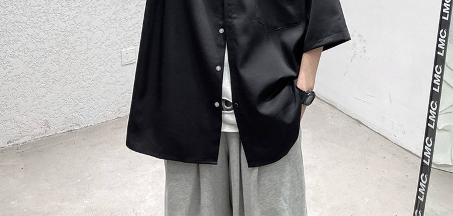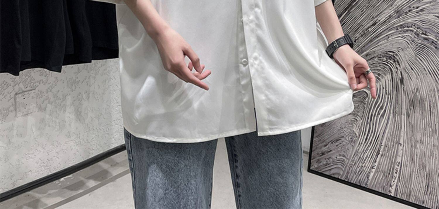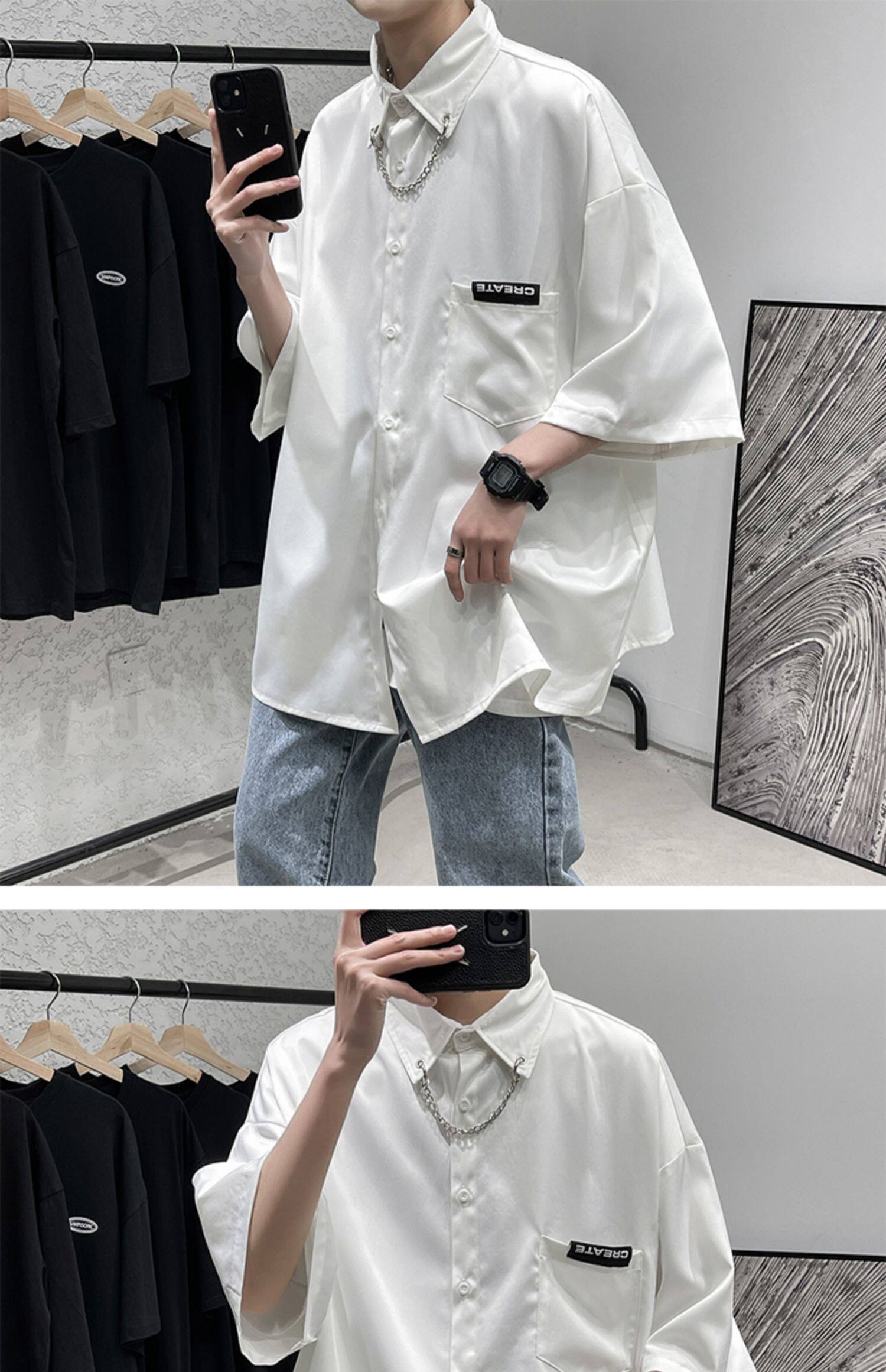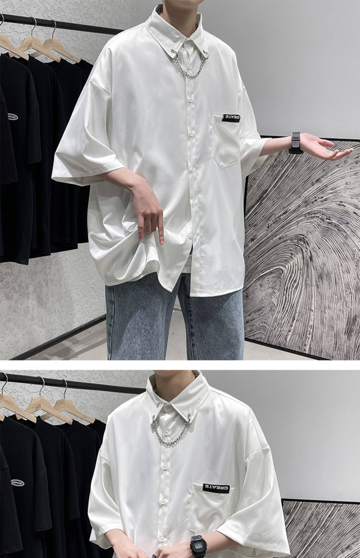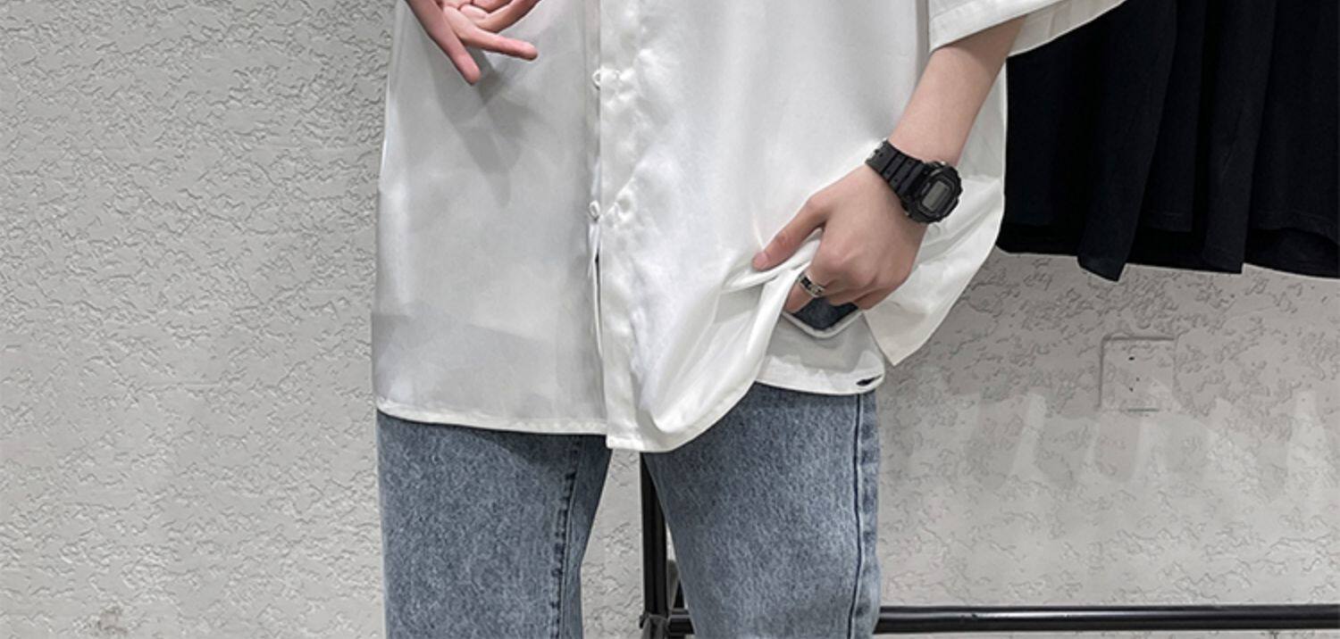 Ледяной шелк сорочка мужской Гонконг ветер свободно высокая Ощущение уровня короткий рукав рубашка корейская версия модные Шуай красивый рукав три четверти верх Одежда