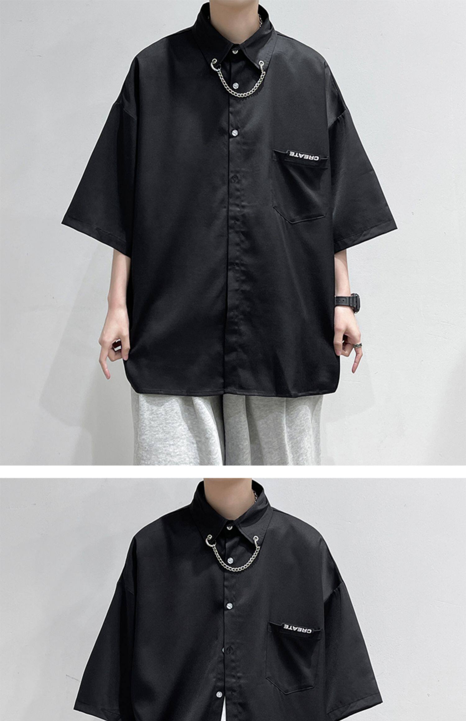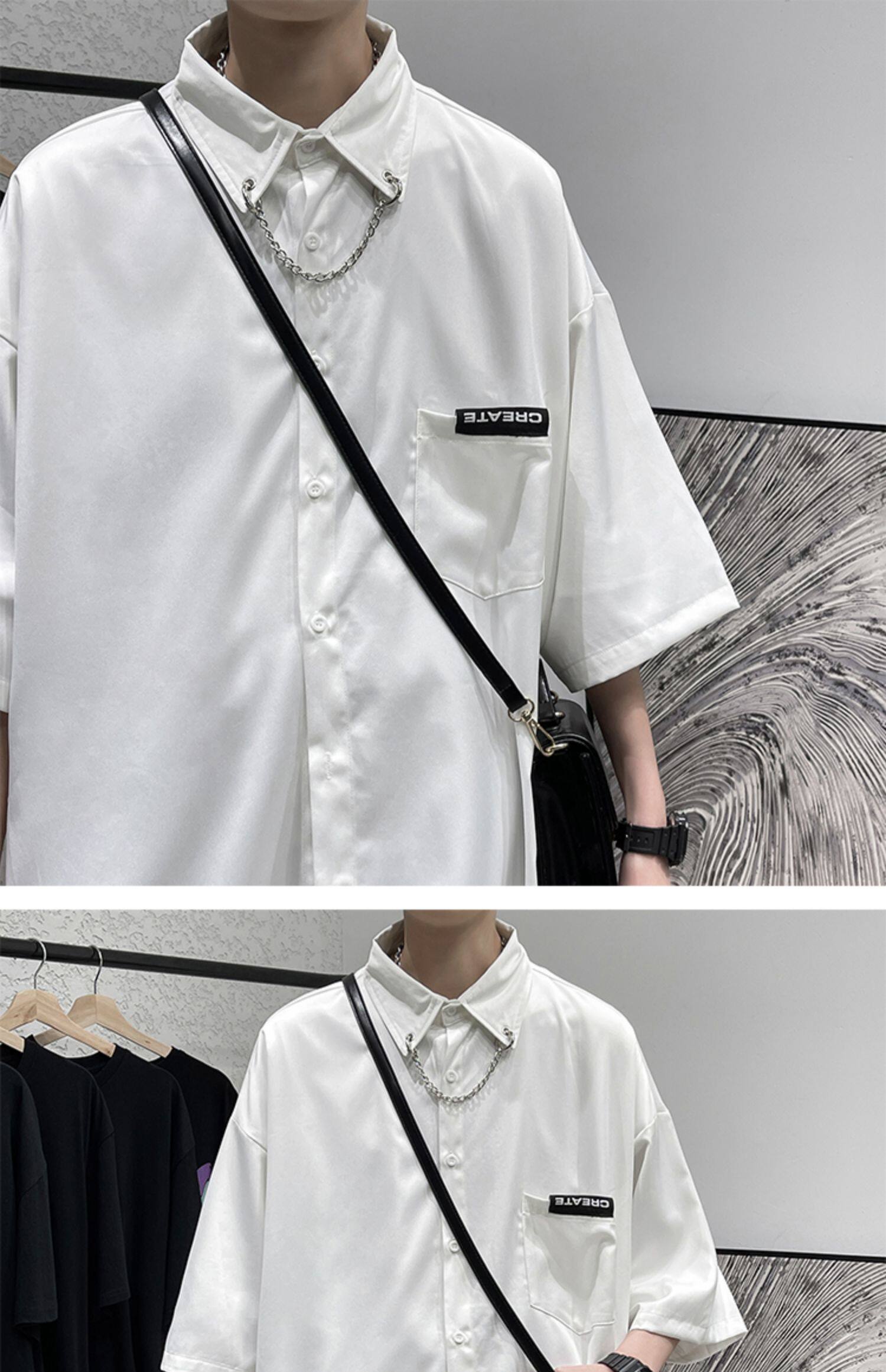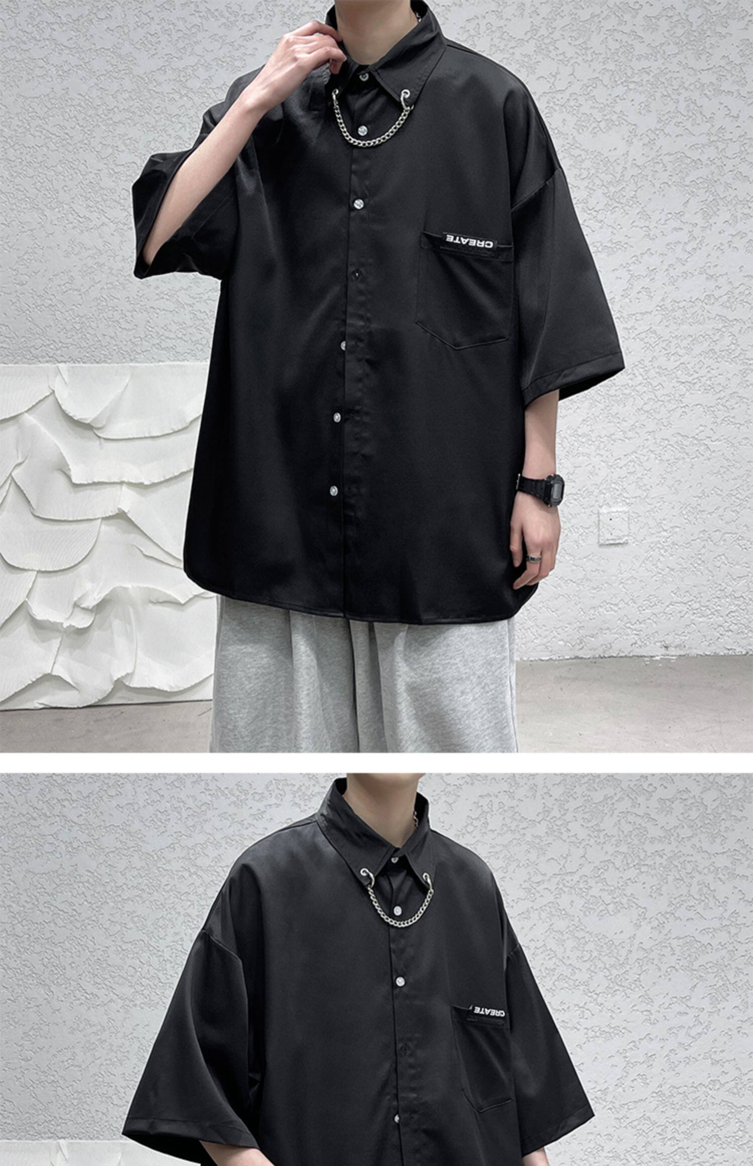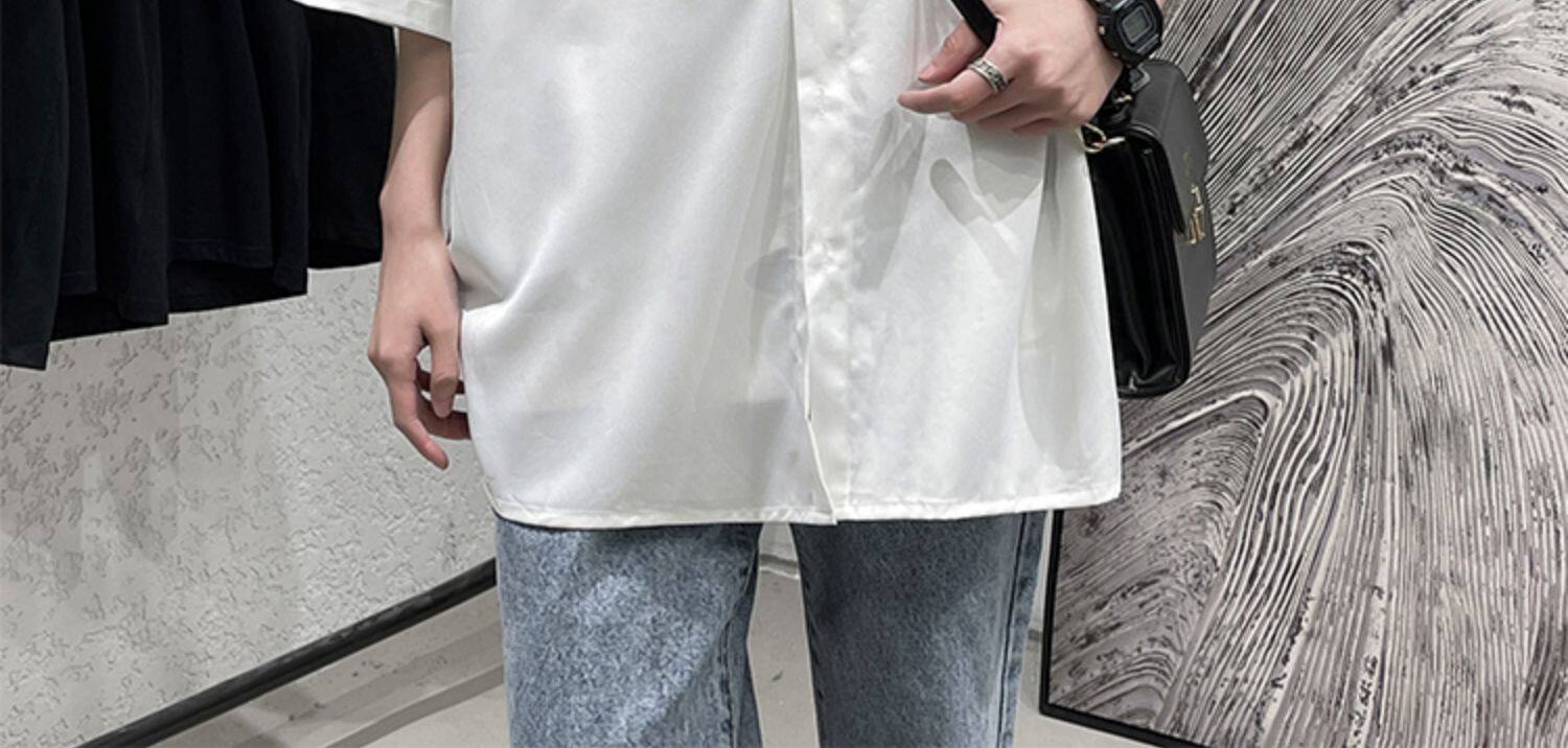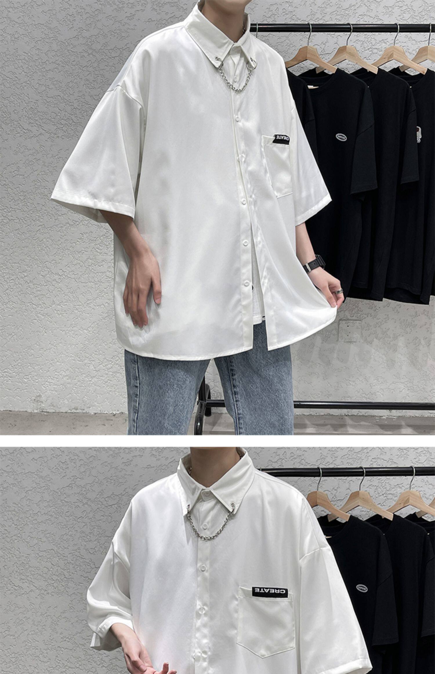 Ледяной шелк сорочка мужской Гонконг ветер свободно высокая Ощущение уровня короткий рукав рубашка корейская версия модные Шуай красивый рукав три четверти верх Одежда