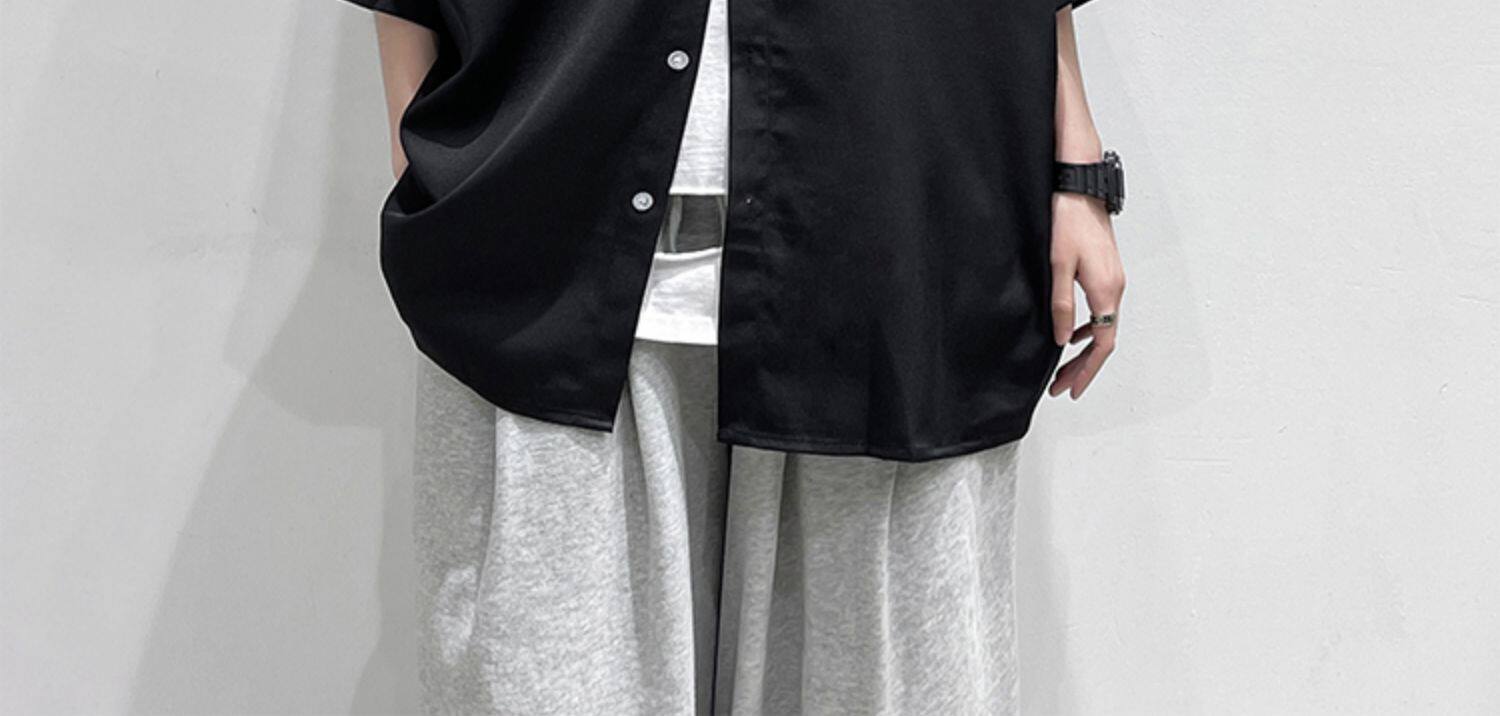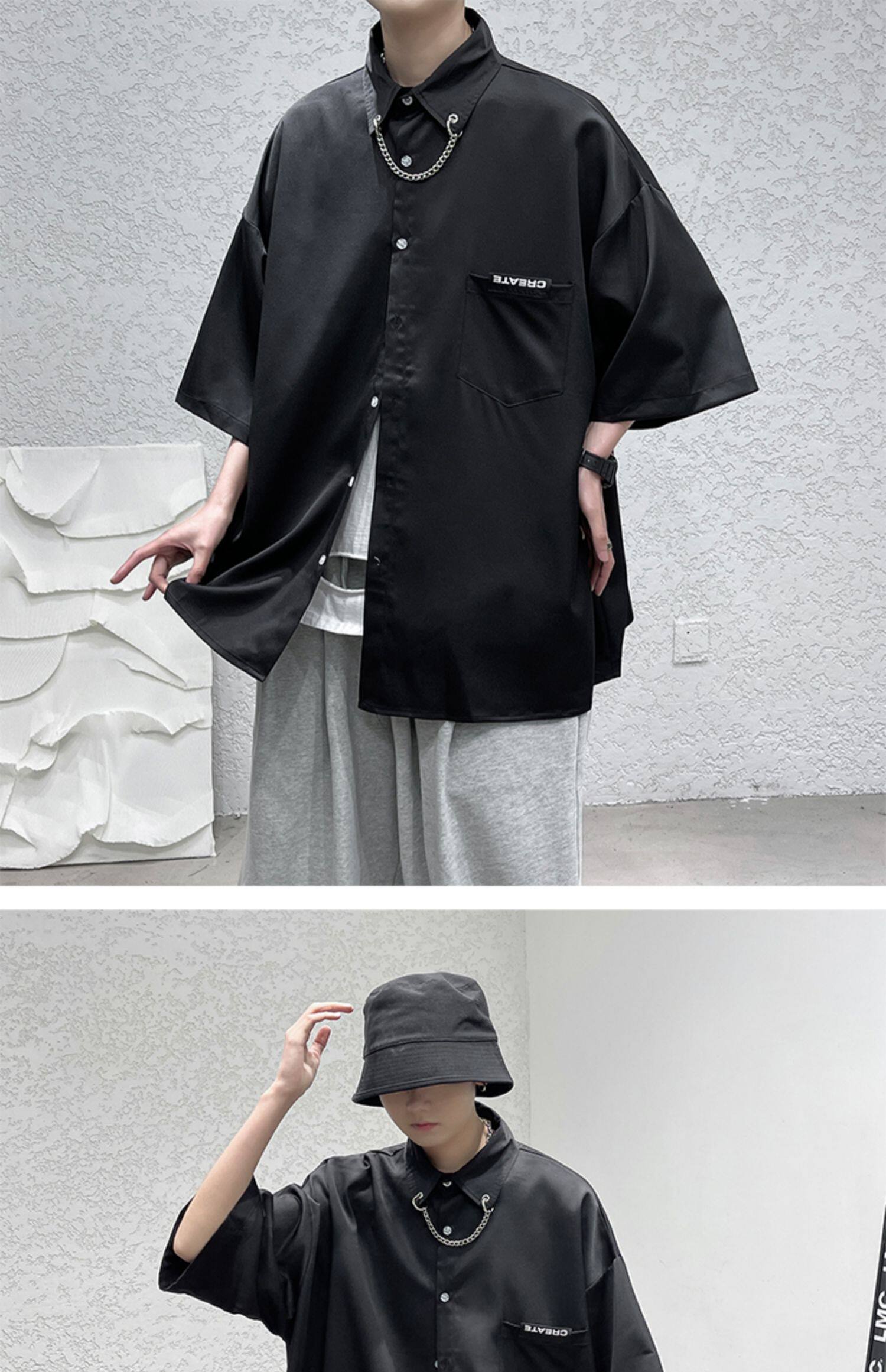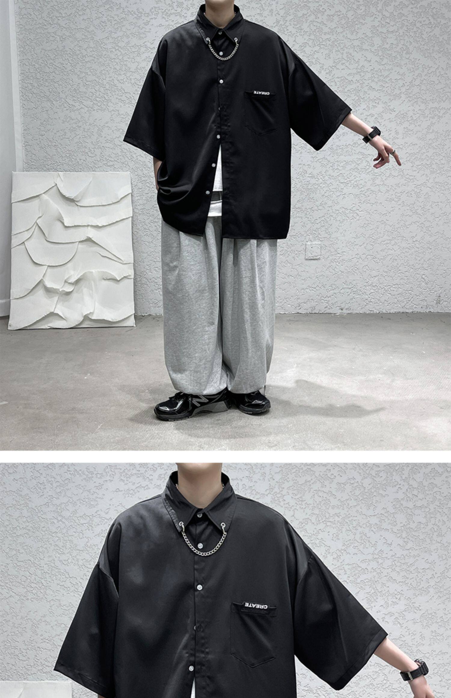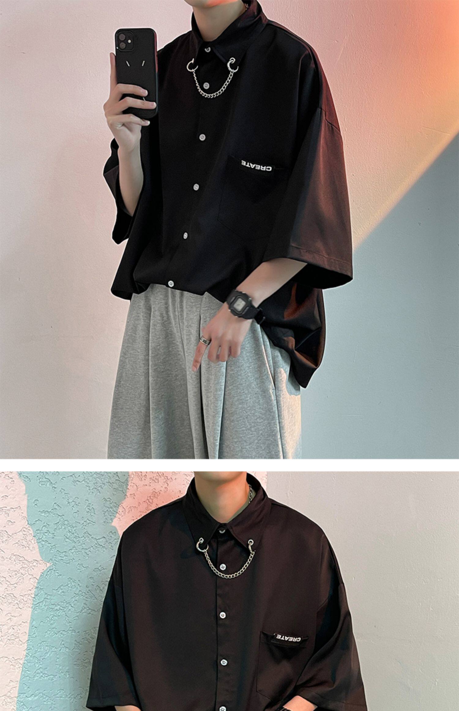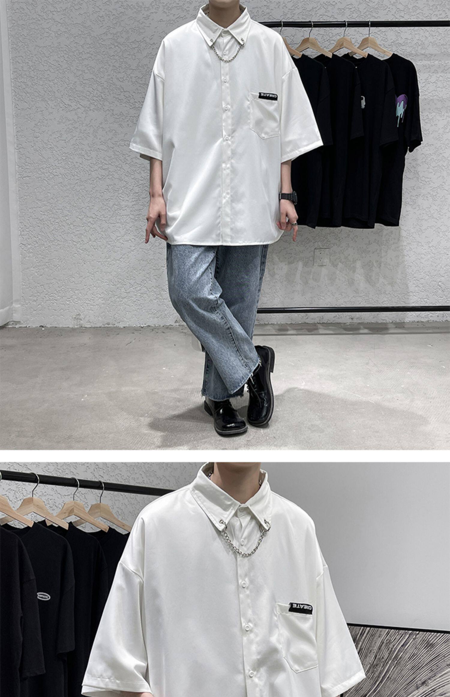 Ледяной шелк сорочка мужской Гонконг ветер свободно высокая Ощущение уровня короткий рукав рубашка корейская версия модные Шуай красивый рукав три четверти верх Одежда