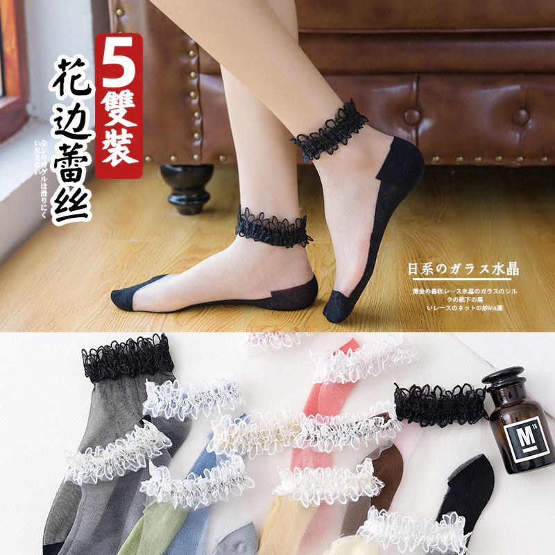 Носки, Женщины, Лето стиль Хрустальные чулки в Tide кружево Прозрачная фея светло Носки