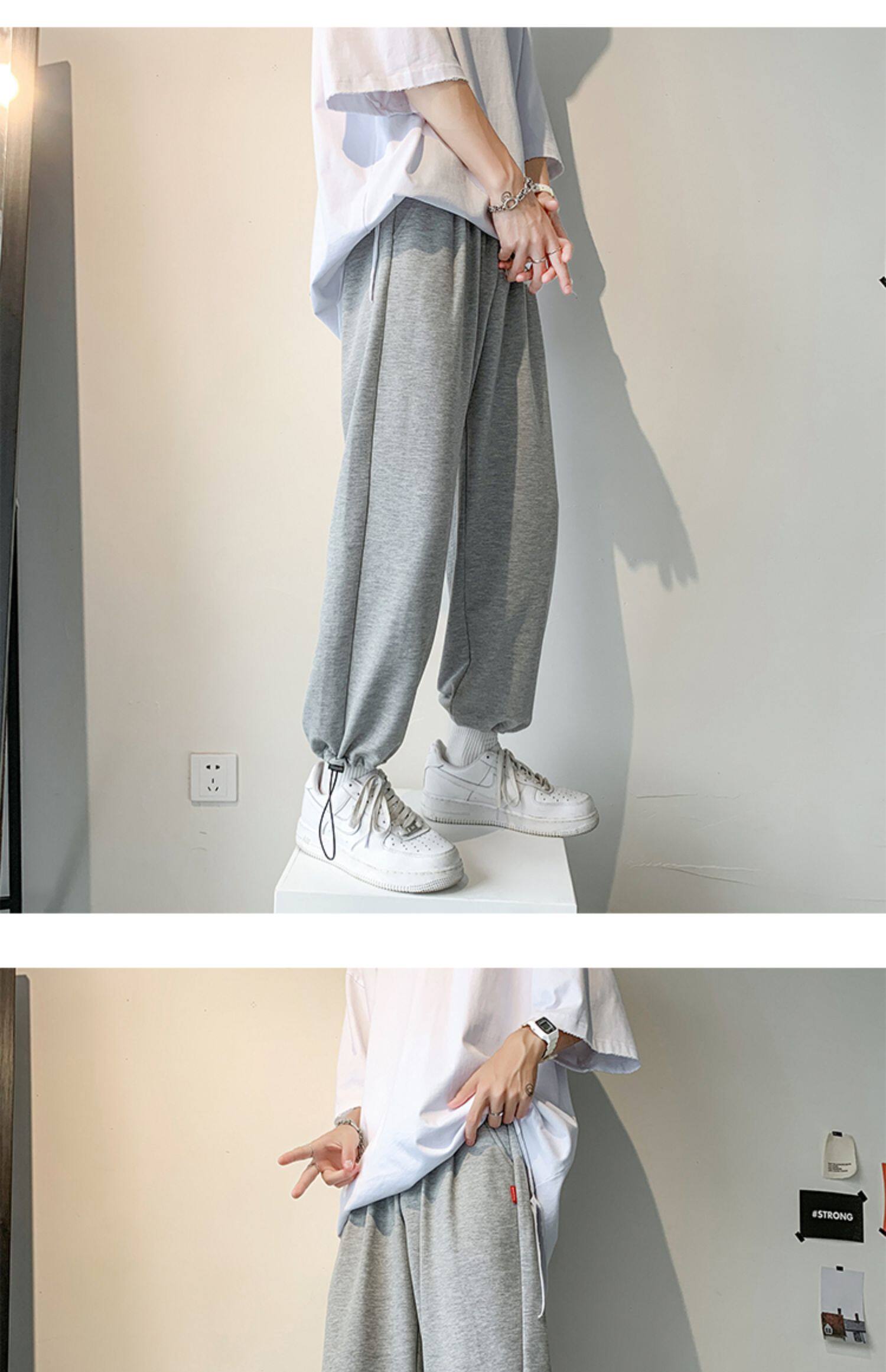 Брюки мужской Брюки демисезонный модные Неряхиясь для отдыха брюки прямые Широкое оружие ног серый Медленные штаны