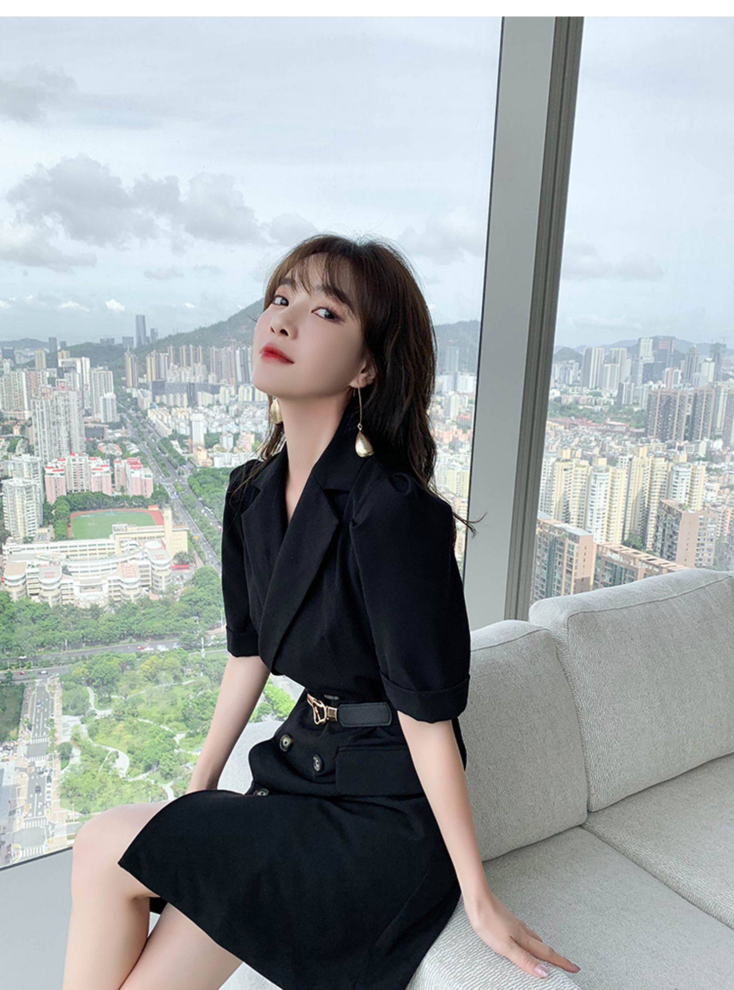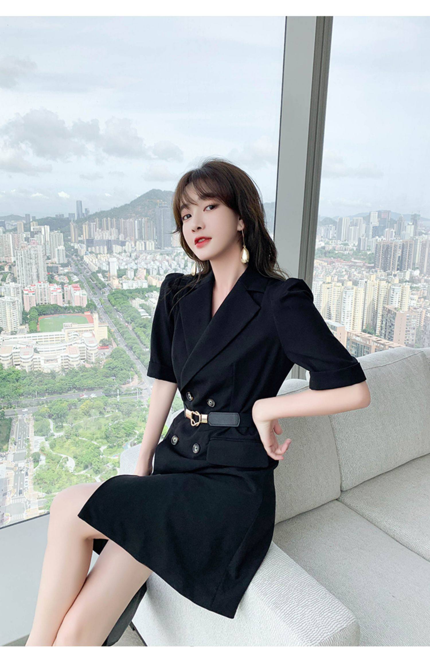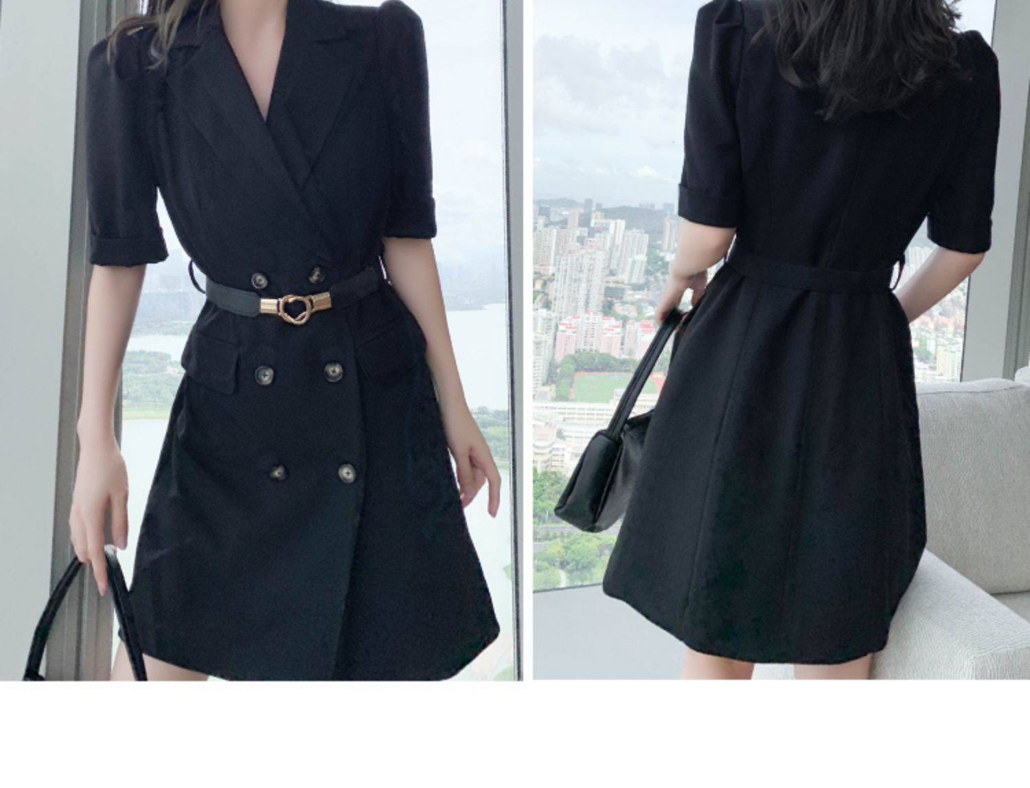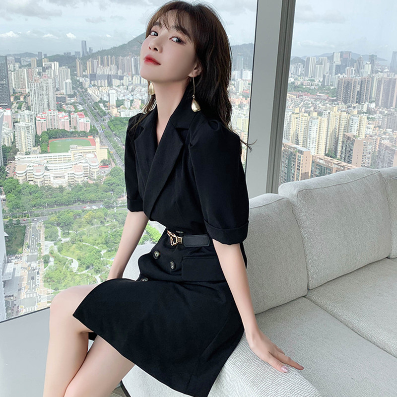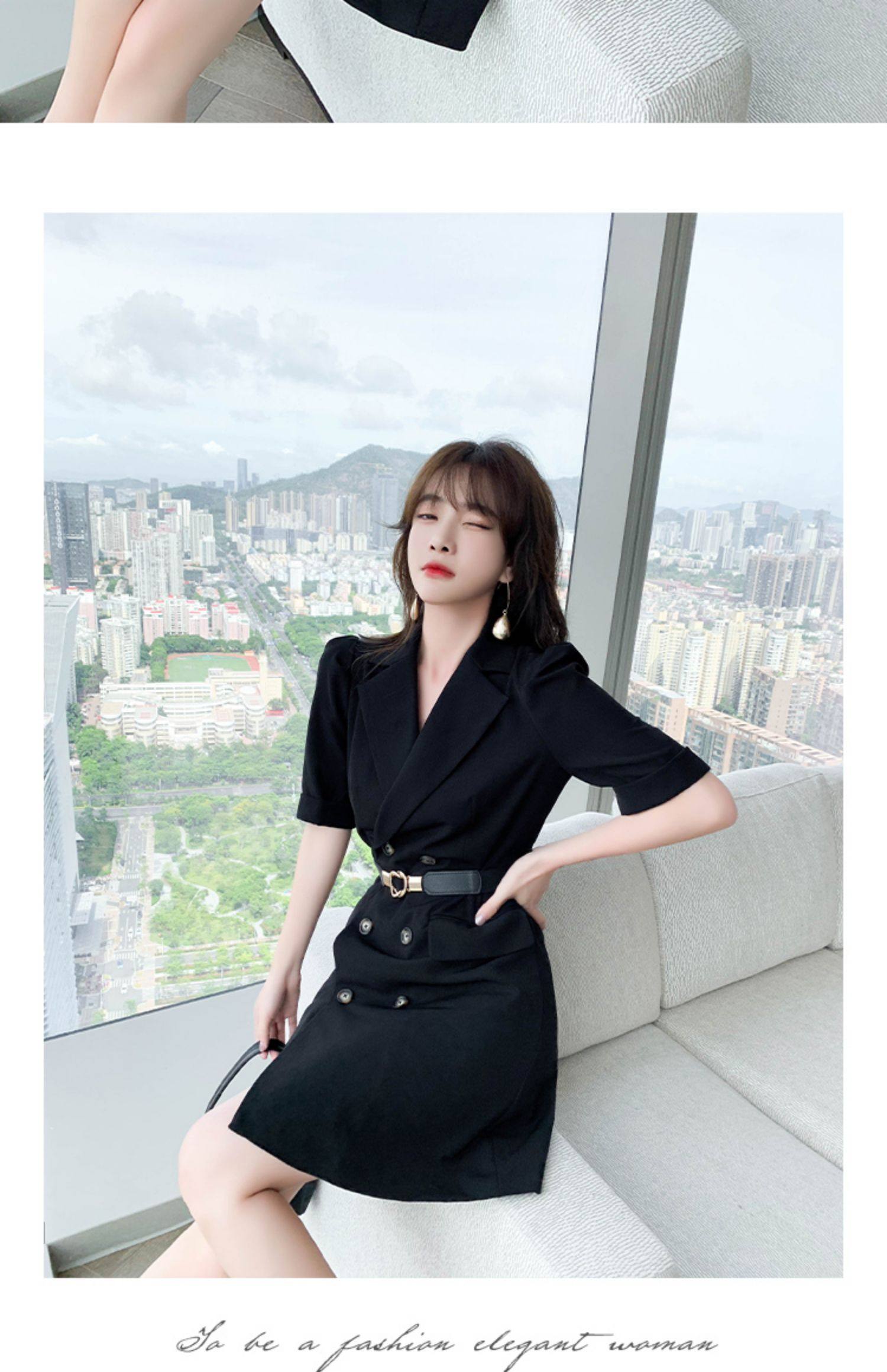 2021 лето новая коллекция Женская французская холодная легкая талия Slim высокая Дедумер маленький ребенок черный европейский покрой платье