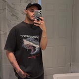Погорайте жизнь акула короткий рукав мужской Вымойте и сделайте старое разрушение T -Fish Fore Fog Fog высокая Свободный уличный лето