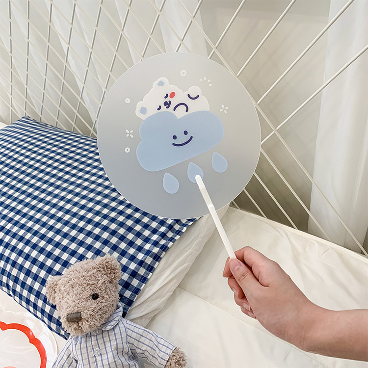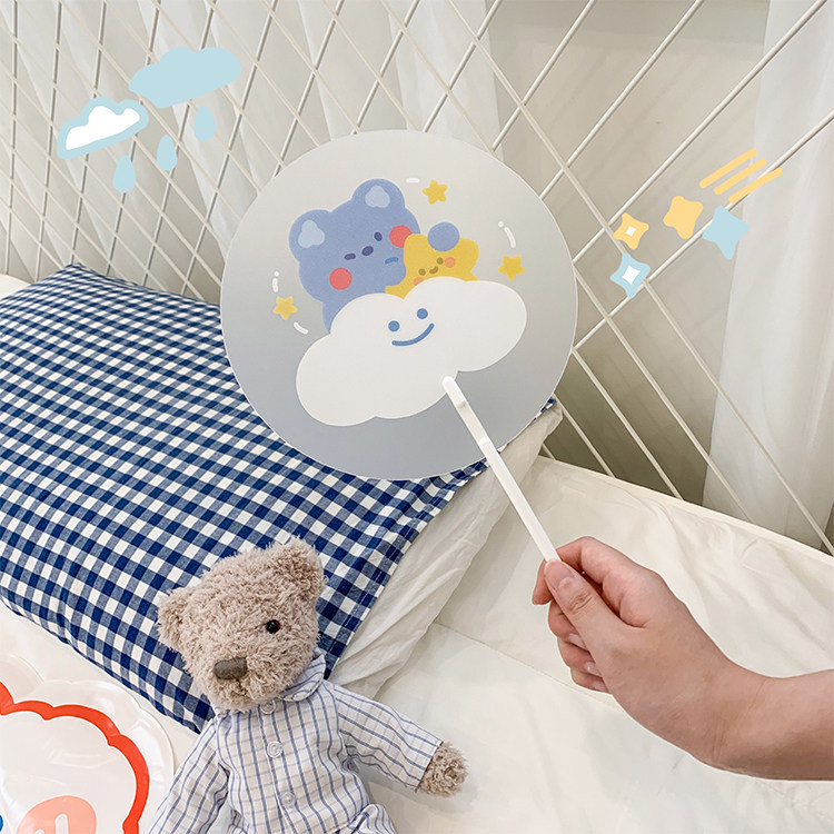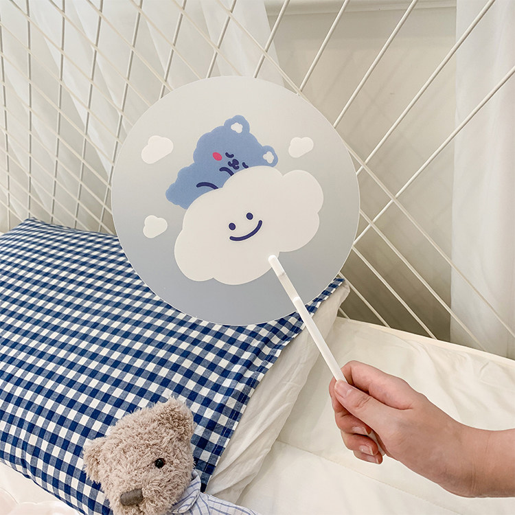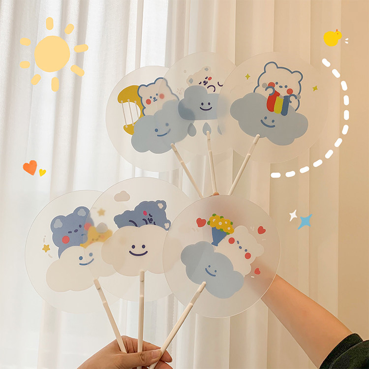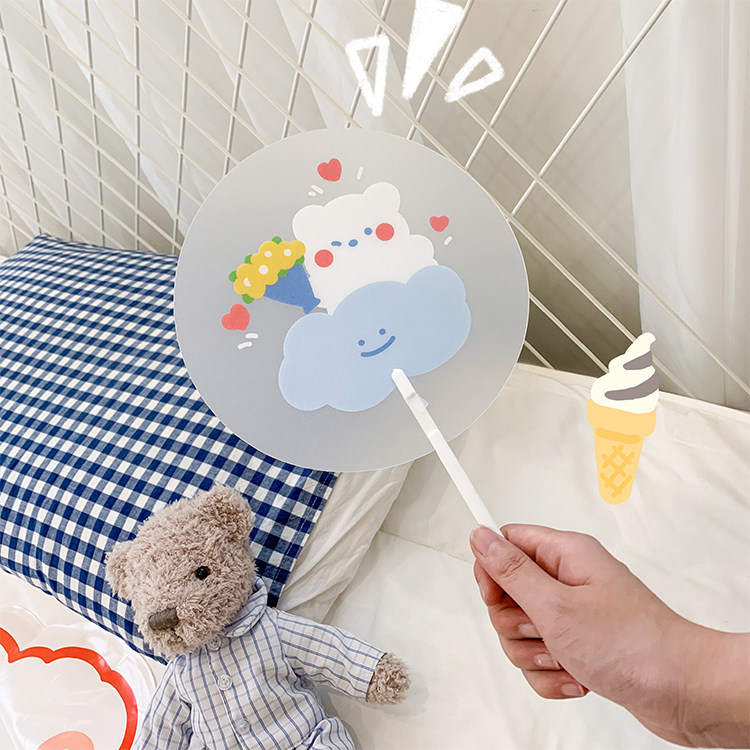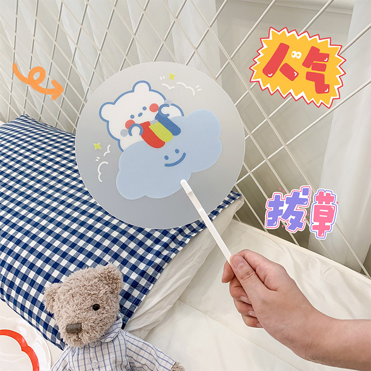 Мультфильм медведь ручной вентилятор ins творческий милый студент портативный прозрачный PVC рука держа круглый вентилятор лето длинный хвостовик вентилятор
