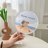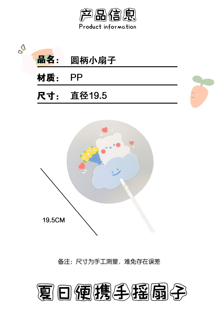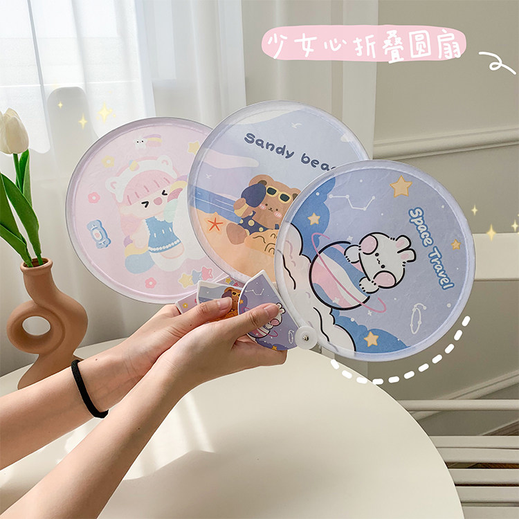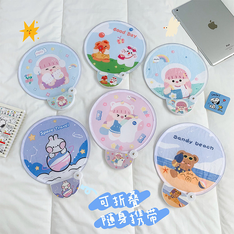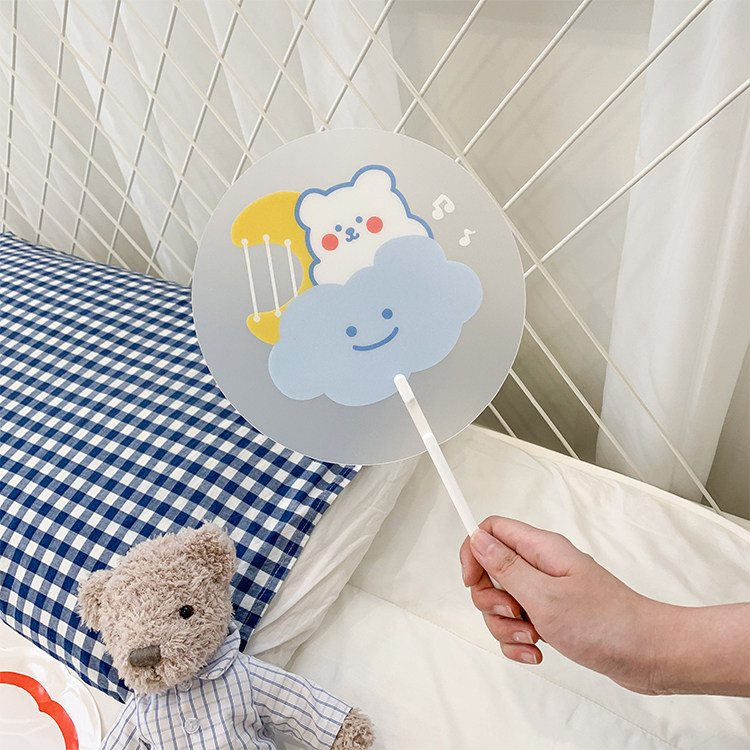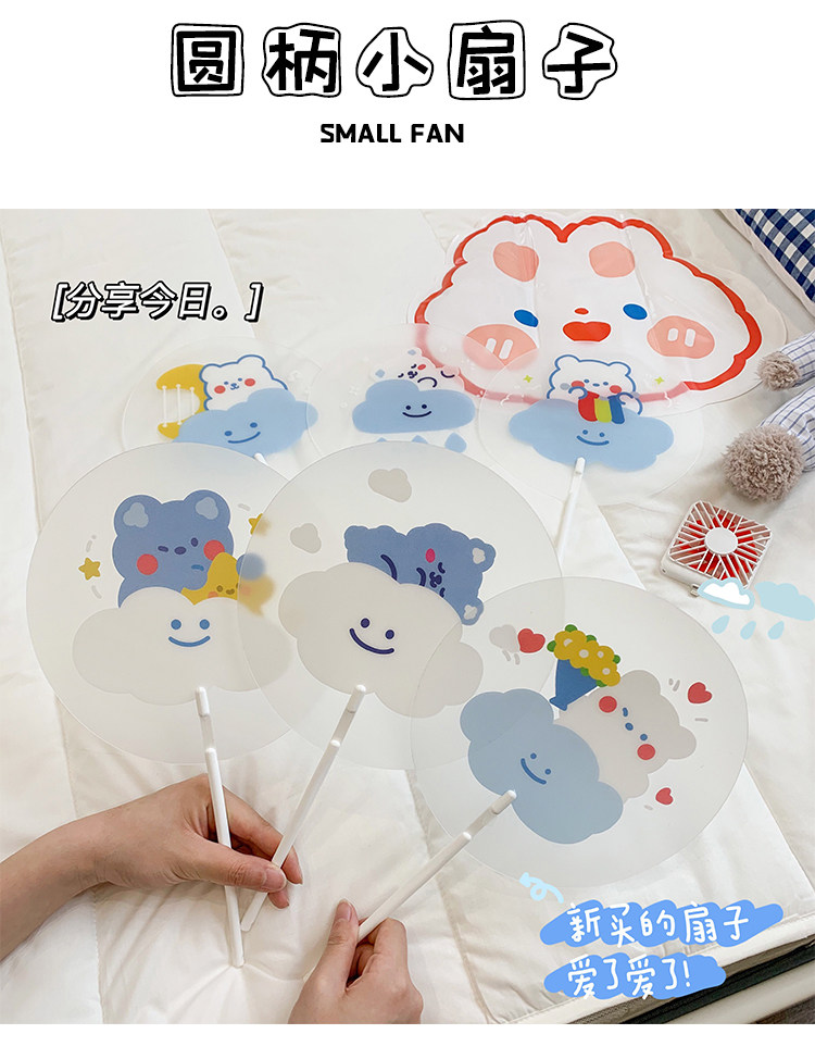 Мультфильм медведь ручной вентилятор ins творческий милый студент портативный прозрачный PVC рука держа круглый вентилятор лето длинный хвостовик вентилятор