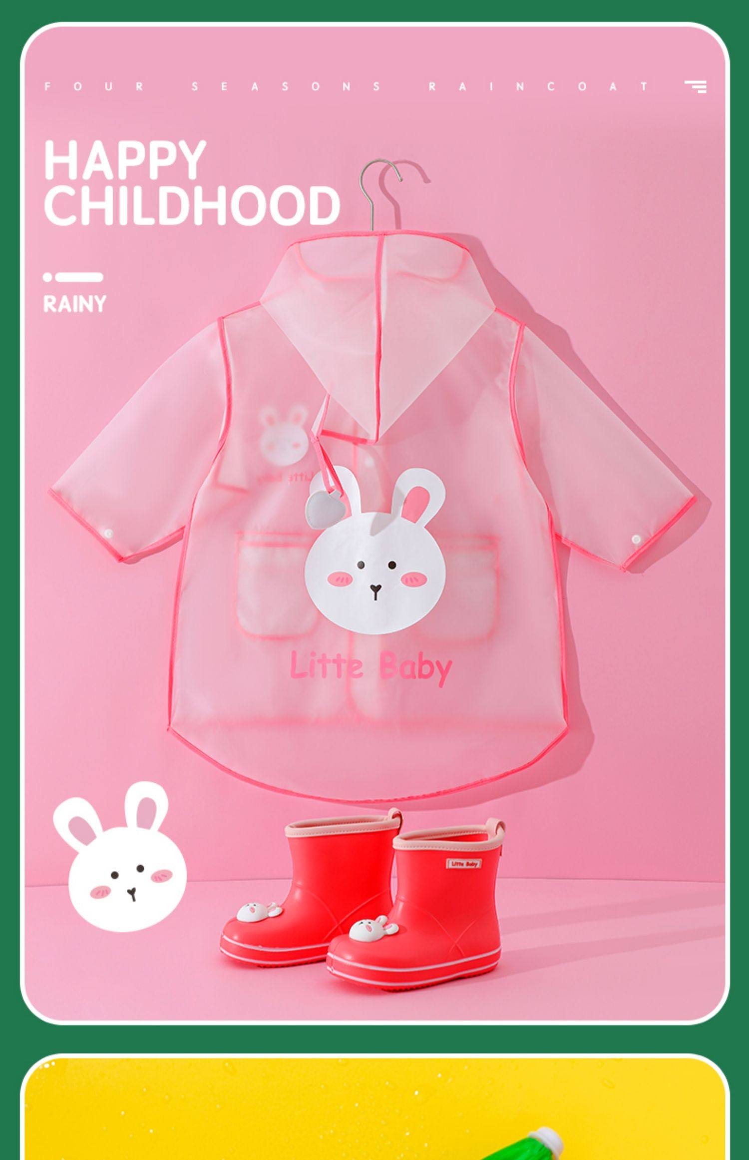 - Розовый 【Небольшой кролик плащ дождевик】