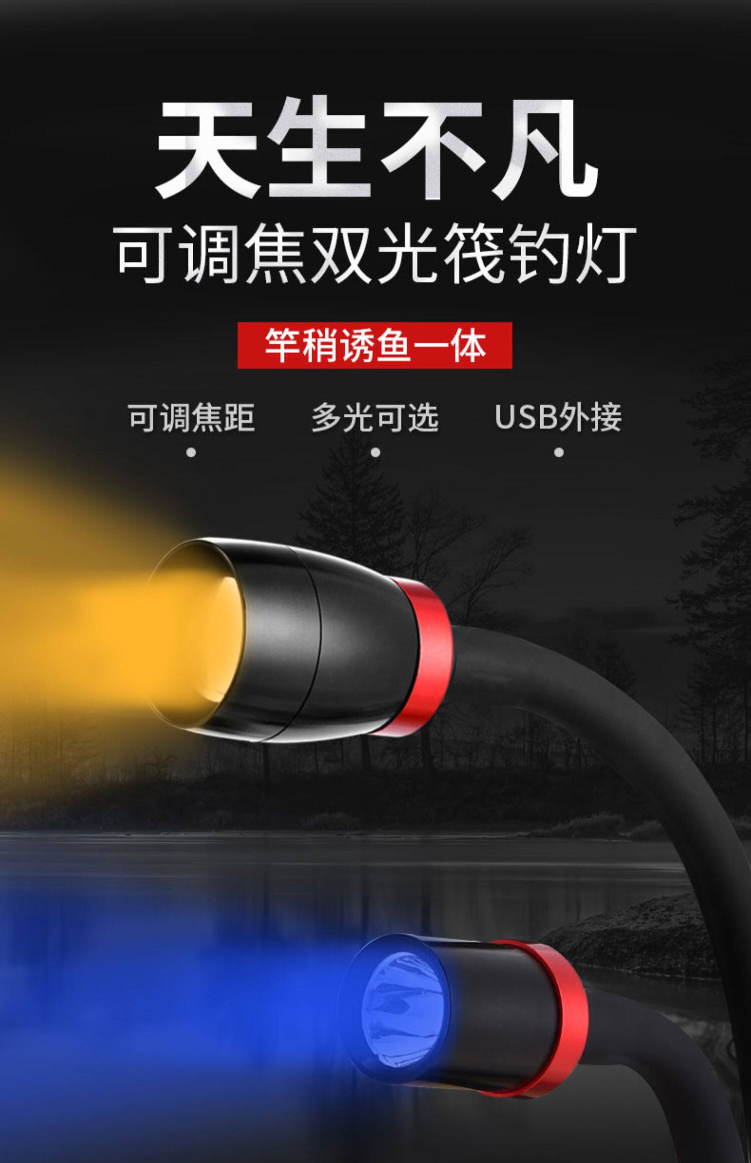 Двойная голова рыбалка свет для LED свет ловит рыбу свет Ночная рыбалка свет синий Светлый свет Хуан Гуанфэн свет Полифизм свет Немного свет