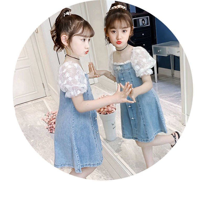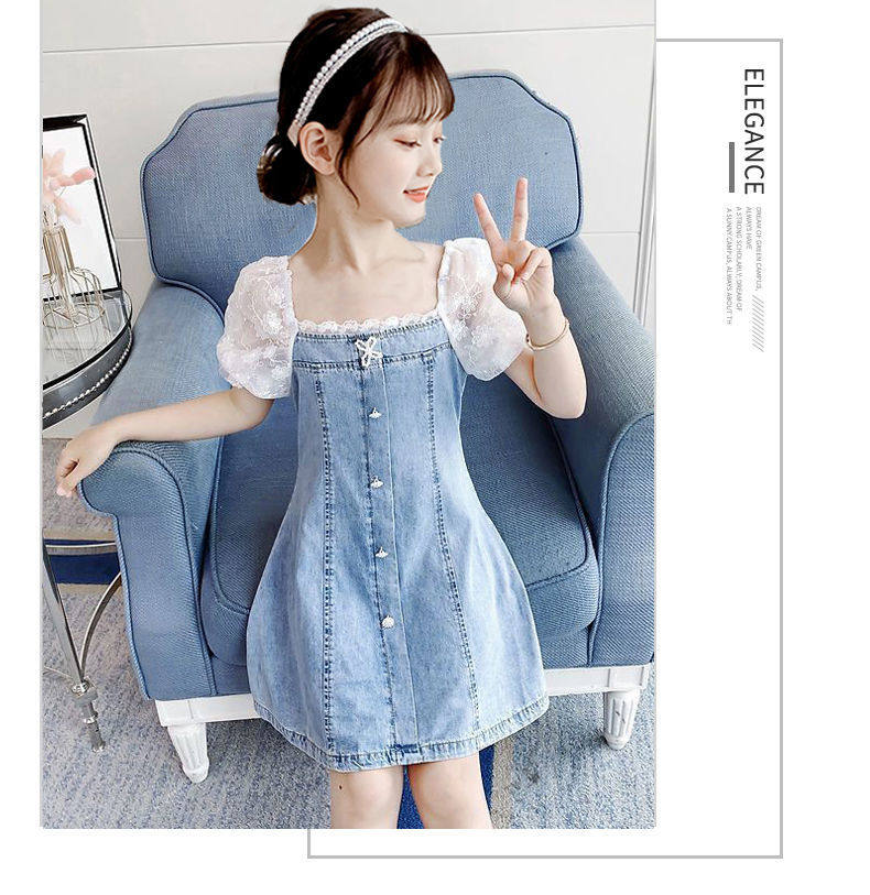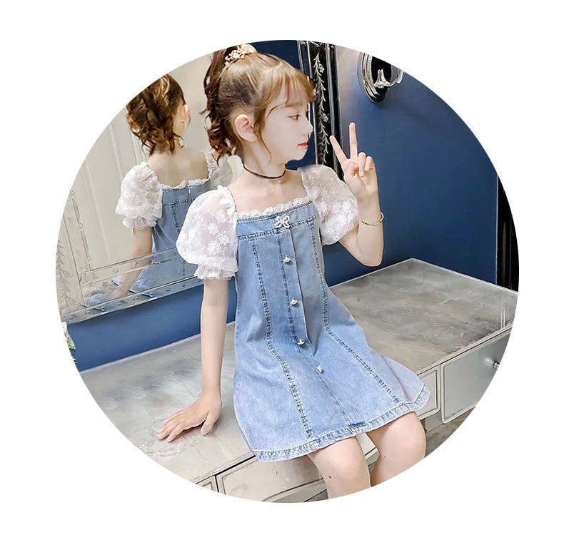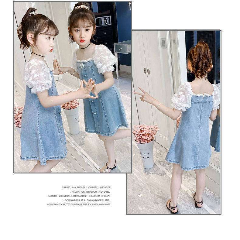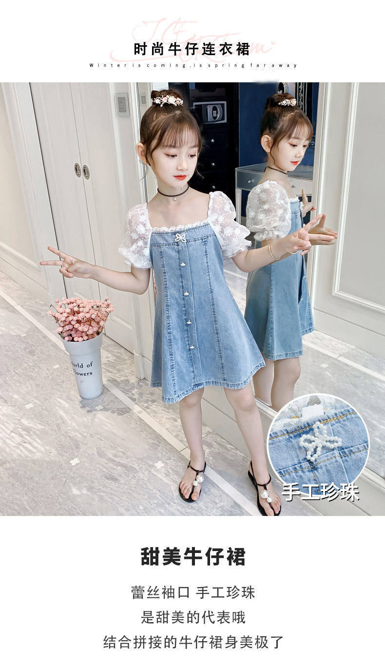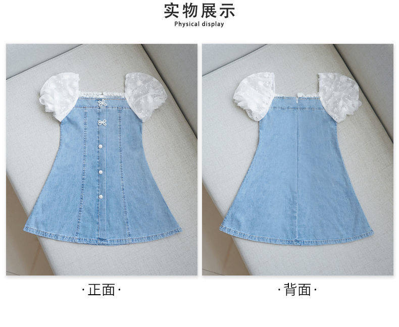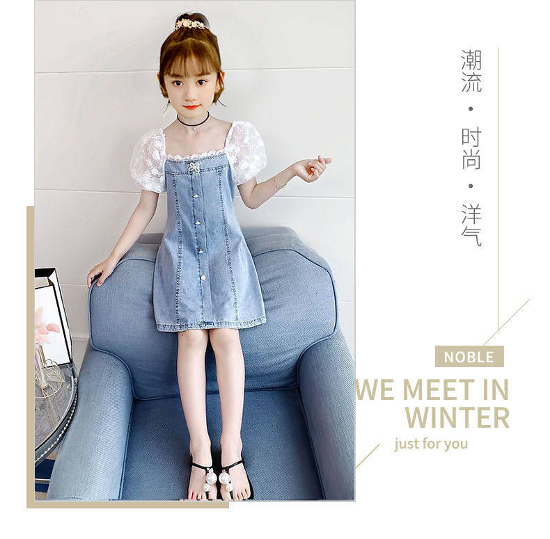 На девочку Платье лето 2022. новая коллекция западный стиль популярный детские Пакет корейская версия Иностранная сеть красный девочка джинсовый юбка