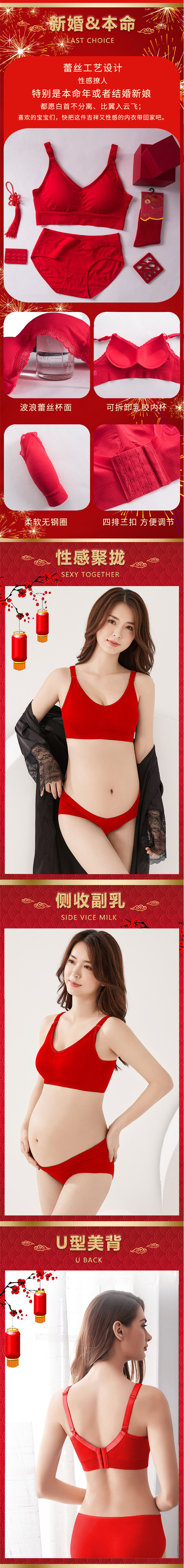 Насыщенно-красный Беременные женские белье нижнее белье комплект В этом году свадебное Беременность послеродовая грудь низ Вешать