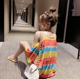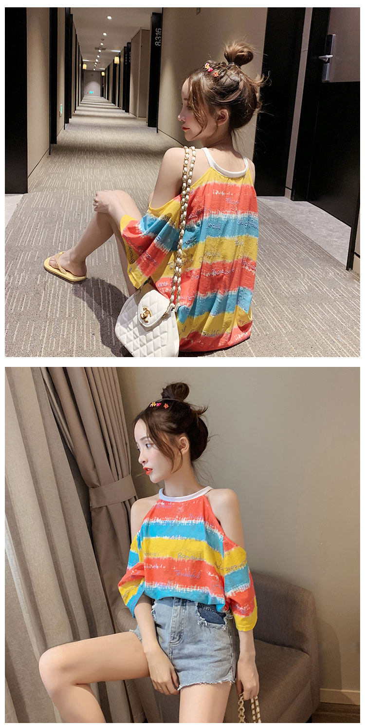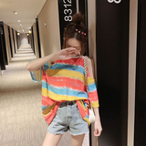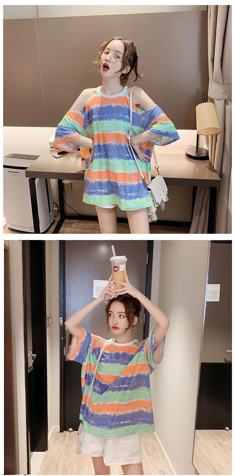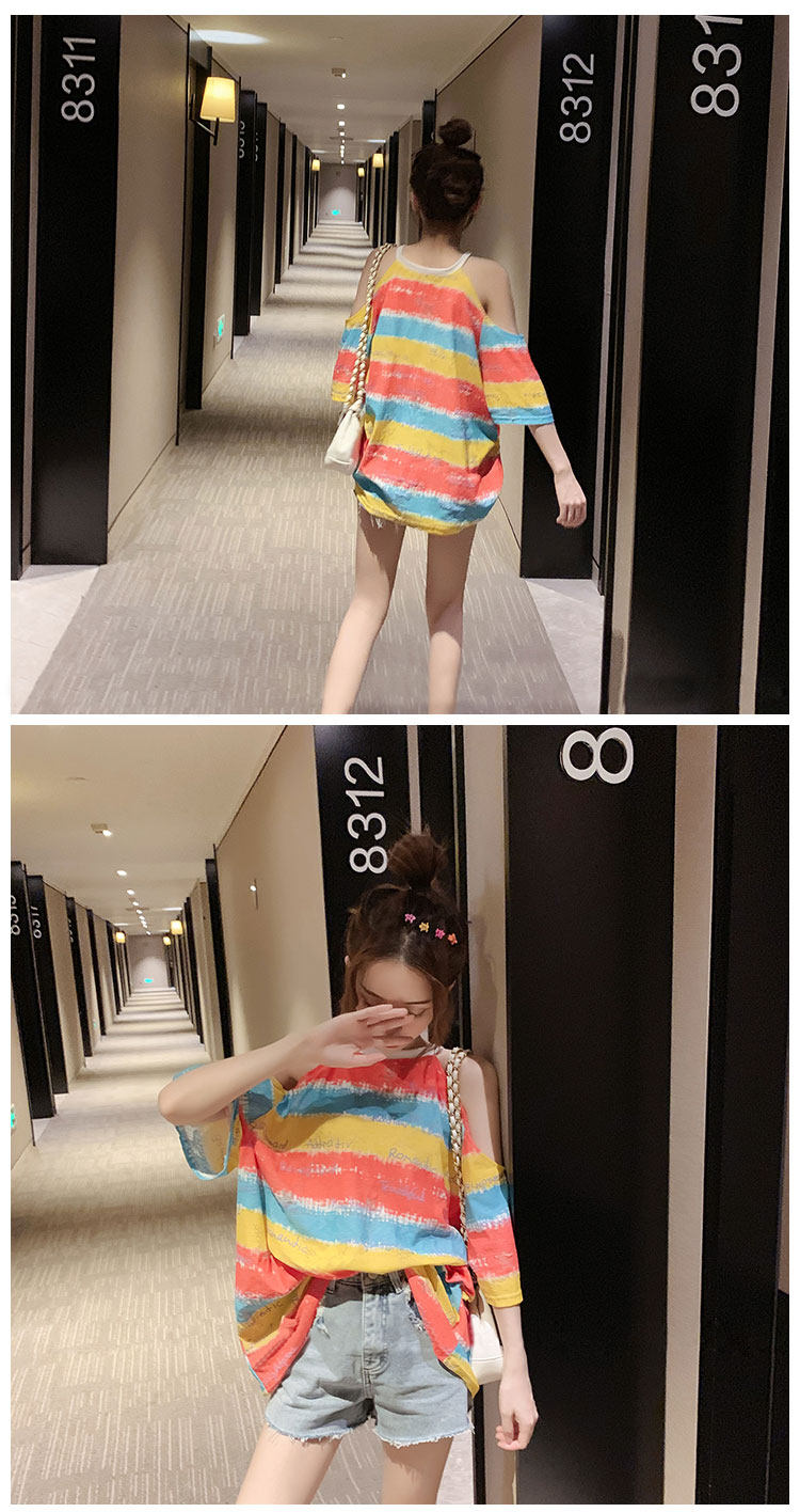 Полосатый принт Сексуальный короткий рукав Футболка женское лето фасон средней длины стиль Дизайн температуры расслаблен большой размер Половина рукава верх Ins tide.