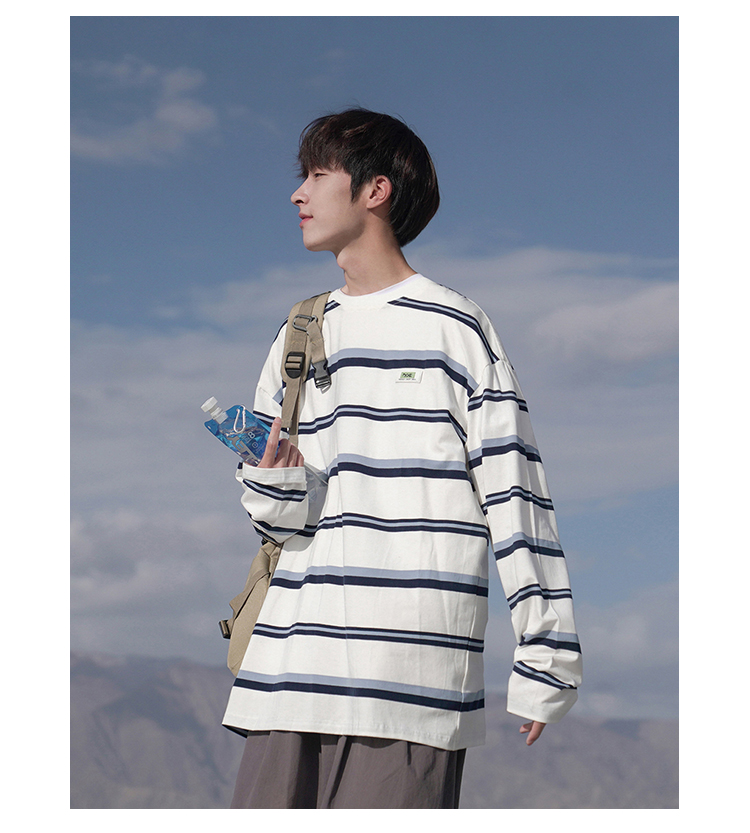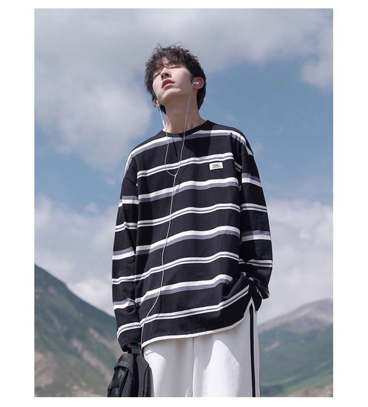 Ранняя осень новый товар новинка мужские и женские фасон унисекс длинный рукав Футболка полосатый принт Столкновение круглый воротник Совет ширина плеча Сосновая тройник верх Одежда