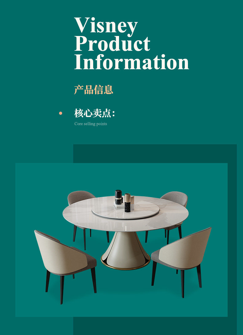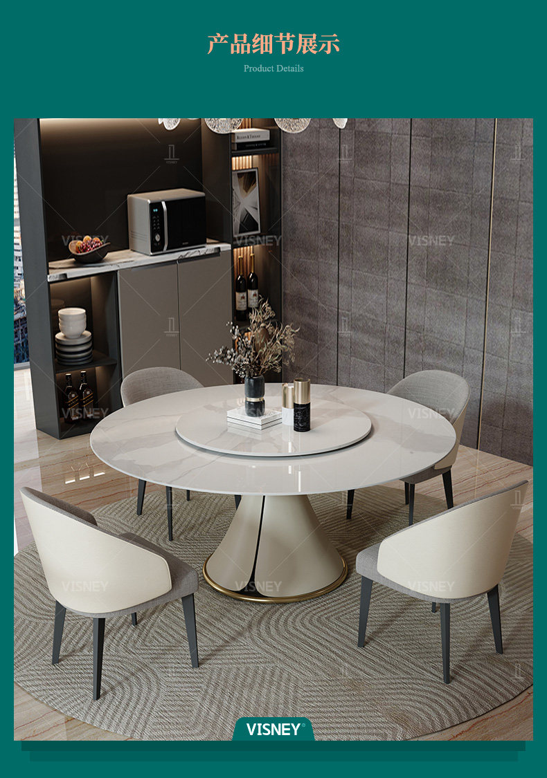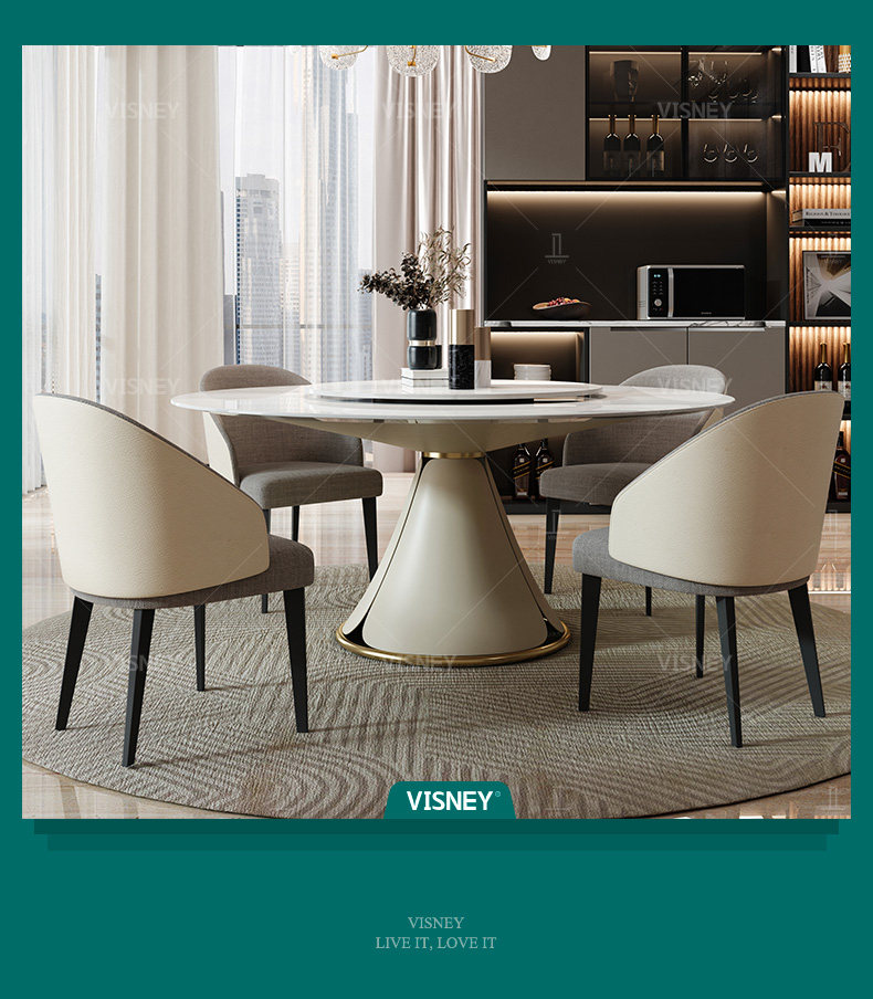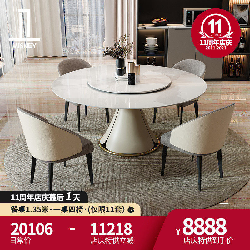 Wei Poetry Light Luxury Beauty Rock панель Круговой обеденный стол с обеденным столом с маленьким квартиром -поворотным рестораном поколение Мебель Y7 новый товар новинка