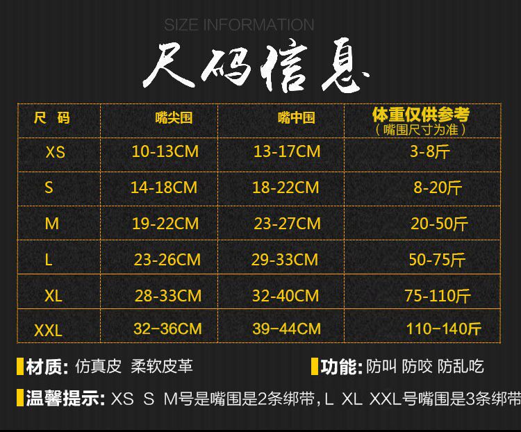 Цвет: Коричневый Набор собак рта ( в подарок Перфоратор, Черный Набор собак рта ( в подарок Перфоратор, Коричневый Установите собака рта + воротник ( в подарок Перфоратор, Черный Установите собака рта + воротник ( в подарок ПерфораторБыть применимым размер: XS.(Рекомендация 3-8 кит.фунт ), С(Рекомендация 8-20 кит.фунт ), М.(Рекомендация 20-50. кит.фунт ), Летание(Рекомендация 50-75 кит.фунт ), Хл.(Рекомендация 75-110. кит.фунт ), 2xl(Рекомендация 110-140. кит.фунт )