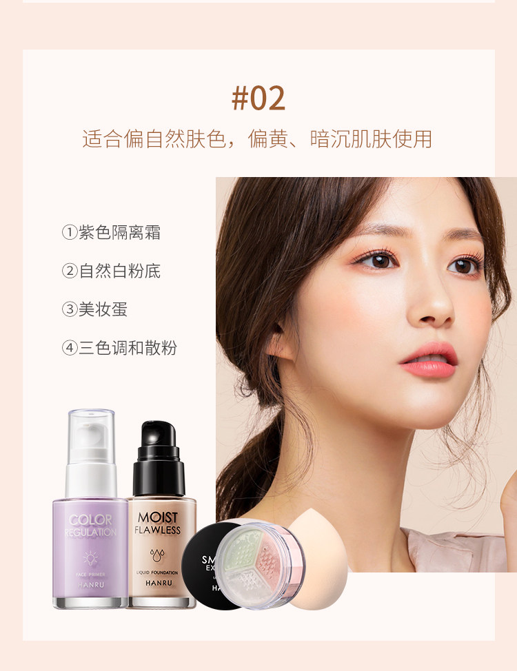 - 02# сиреневый Изолированный крем + натуральный цвет порошок + трехцветный свободный порошок + красивое макияжное яйцо