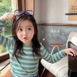 Чэнь Дафу л мама на девочку Футболка новая коллекция 2021 осень новая коллекция полосатый принт длинный рукав Фундамент детские верх Одежда