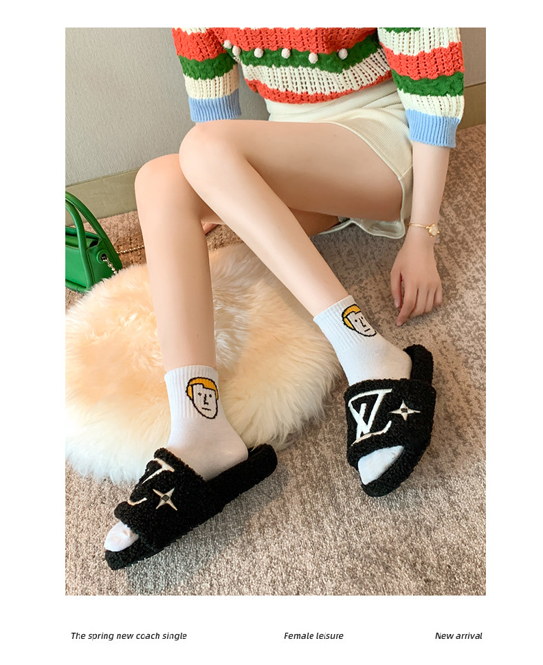 Ins тапки ЖЕНЩИНА 2021. осень-зима новая коллекция на плоской подошве Mao Wei.com. красный слово Мастер носить дикий популярный Уличная стрельба тапки сын