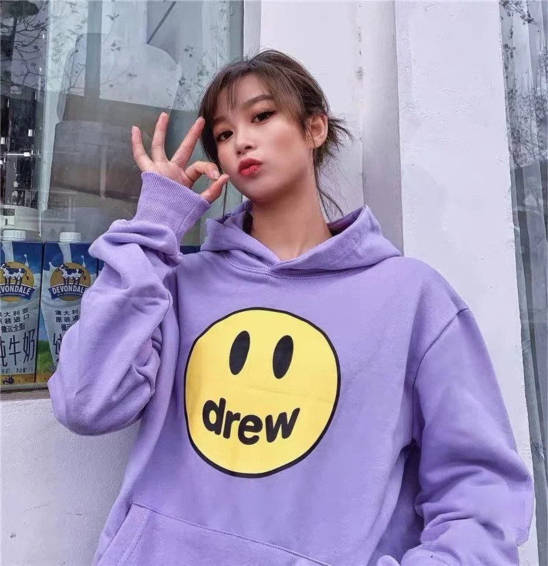 Drew смайлик капюшон толстовка Джастин Бобо фасон унисекс мужские и женские Свободный высокая Уличный туман Tide для влюбленной пары Толстовка с капюшоном