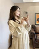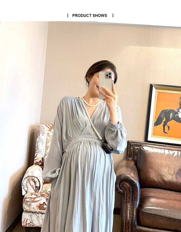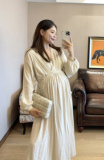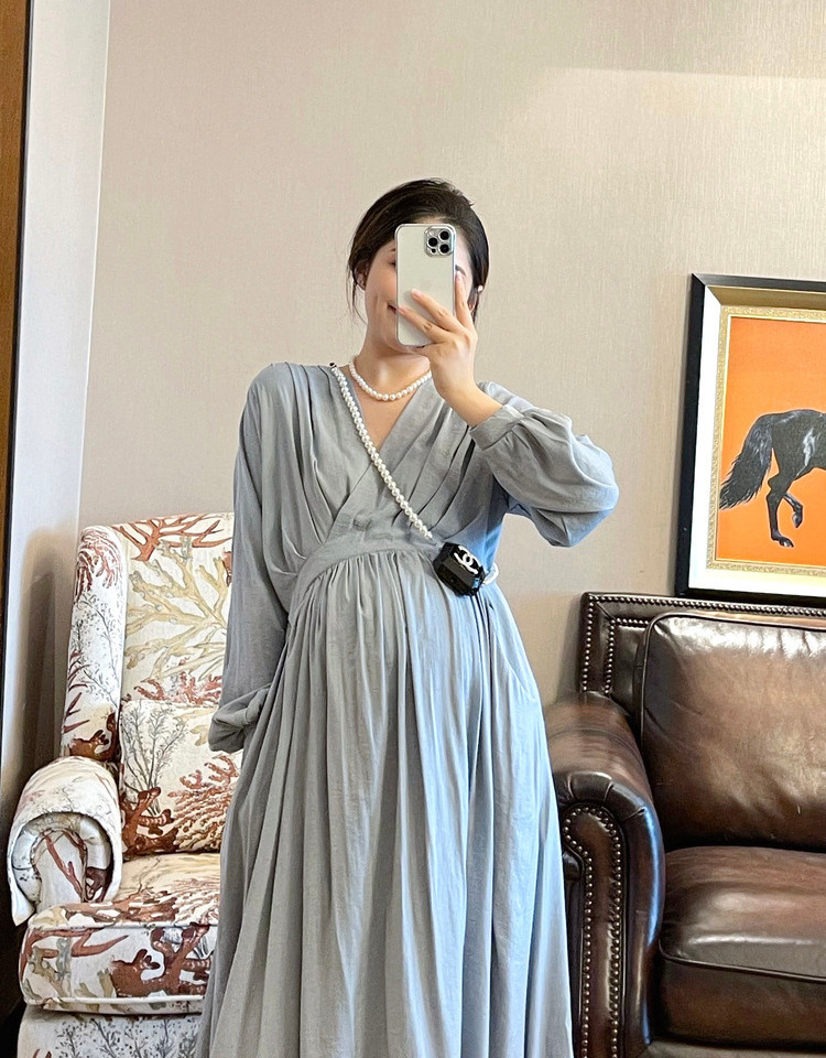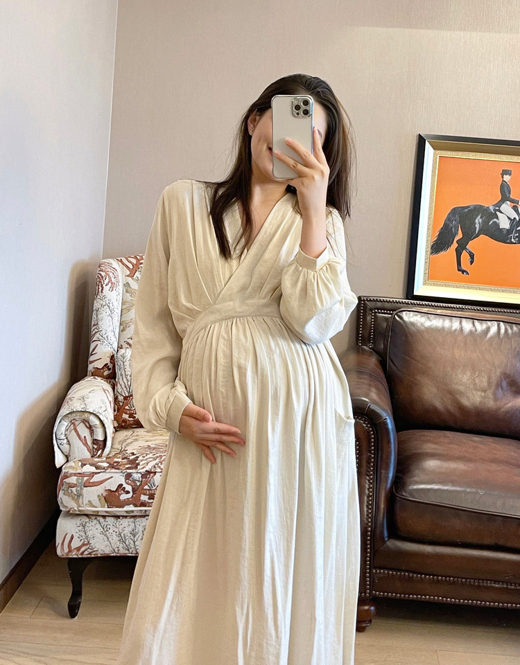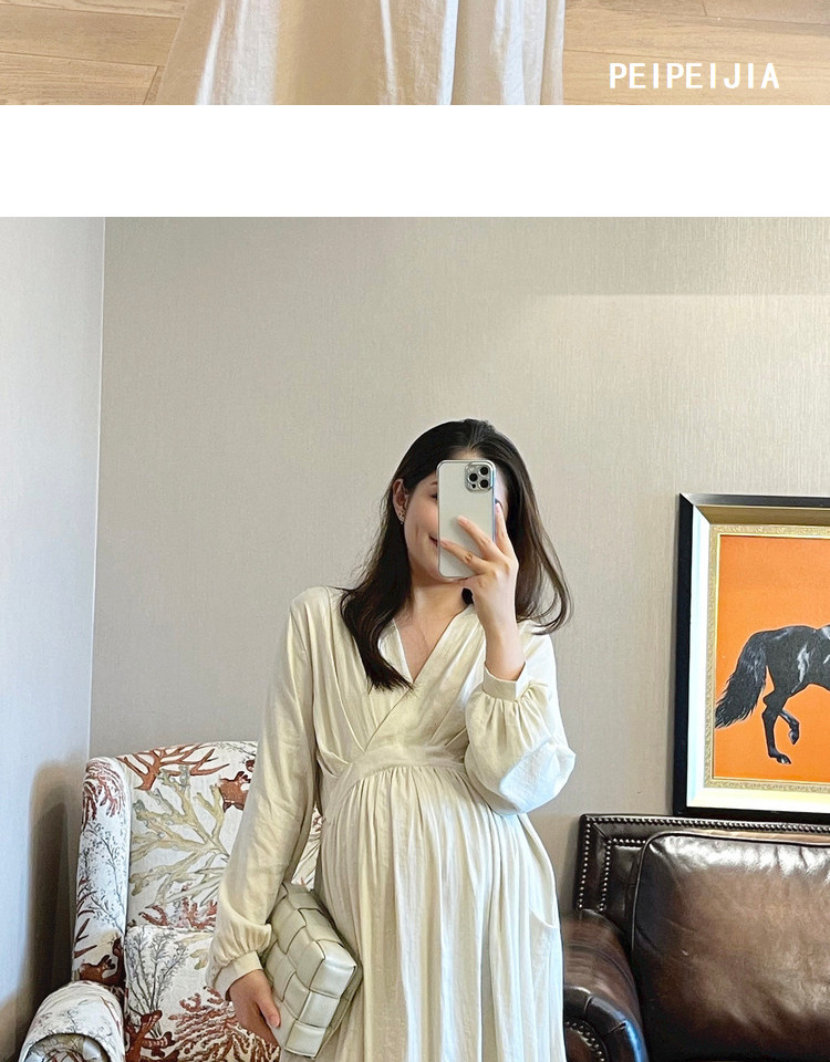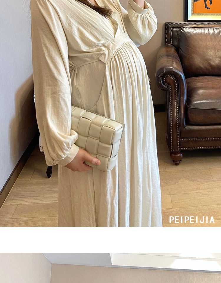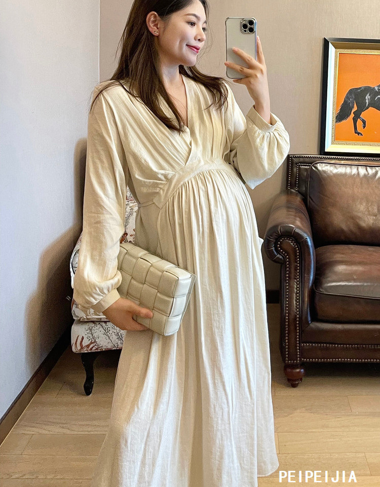 Peipei Pepei беременные женщины притворяются элегантным стилем хлопок Сосновая талия осень Платье осенью, этническое стиль свободный период грудного вскармливания