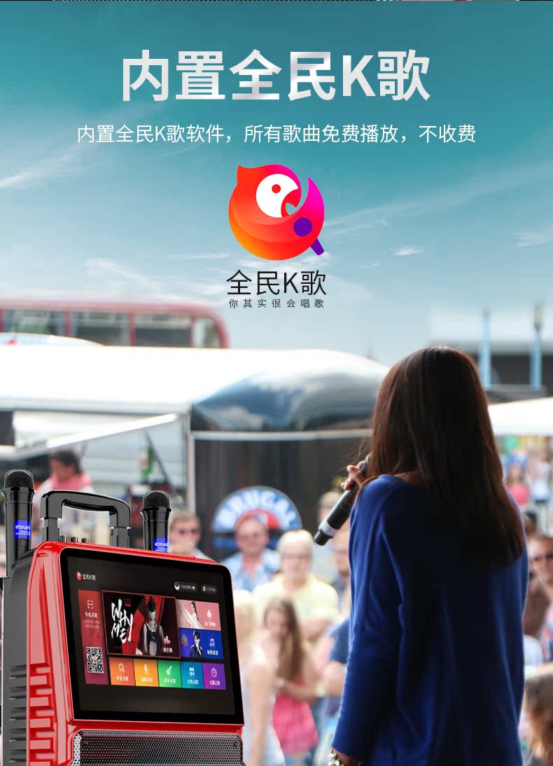 Ким Чжэн квадратный танец звукового пояса дисплей экран большой экран вытягивает стержень Открытый профессиональный производительность без Линия высокой мощности синий Зубы старый K песня танцевальная петь машина мобильный плеер портативный динамик