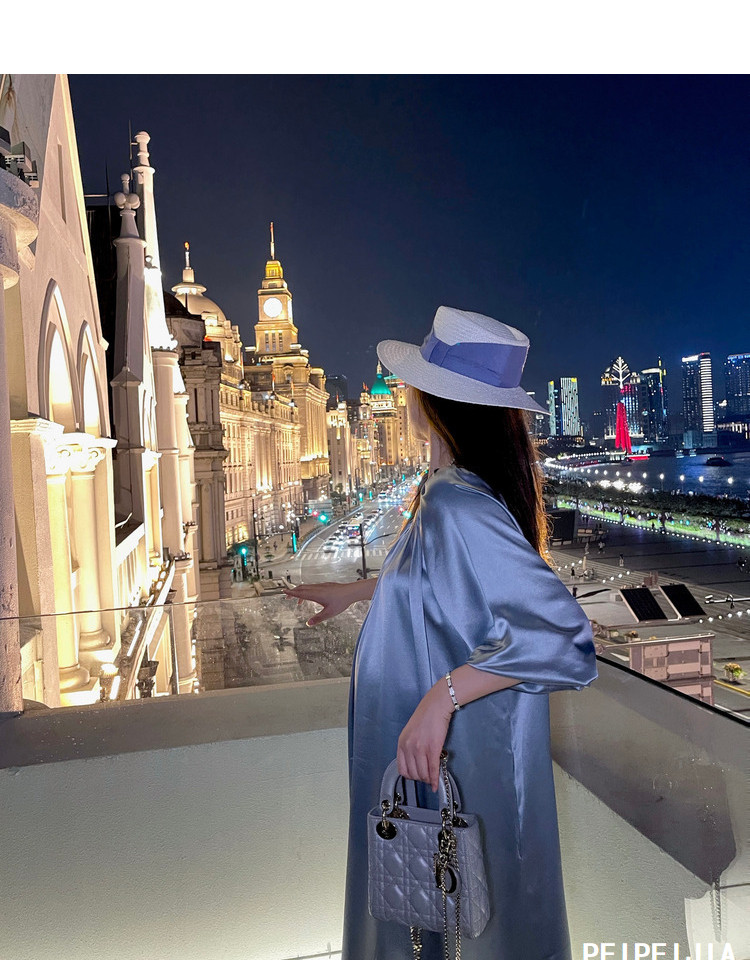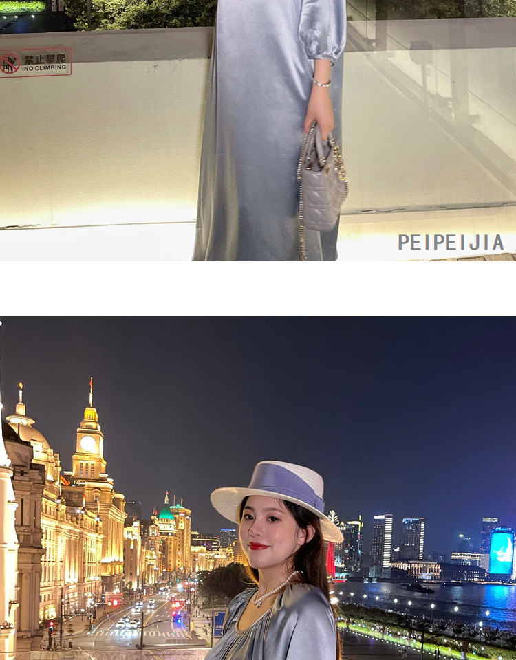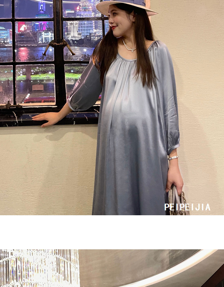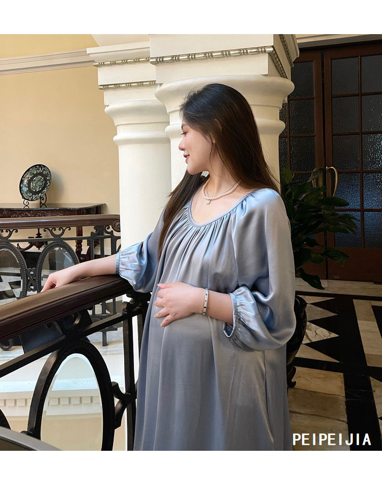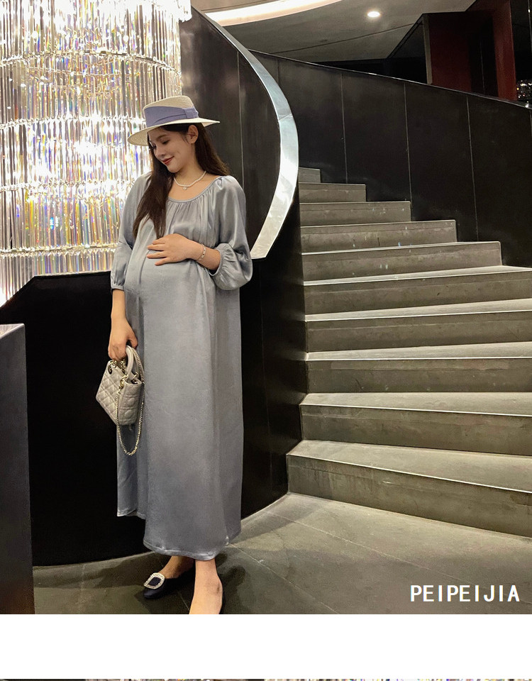 Peipei Peepei Maternity Women Mothern синий Легкая роскошь уксусной кислоты высокая Элегантное платье высокая класс большой размер Осенняя одежда