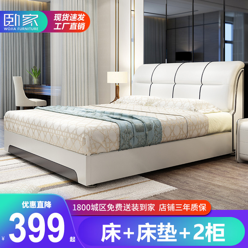 - Из натуральной кожи Кровать три насоса стиль +2 шкаф.