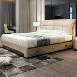 Из натуральной кожи Кровать поколение Простая 1.8M Главная Спальня Свадебная кровать 1.5M Двуспальная кровать Гнездо Кровать Tatami Европейская Кожаная Кровать