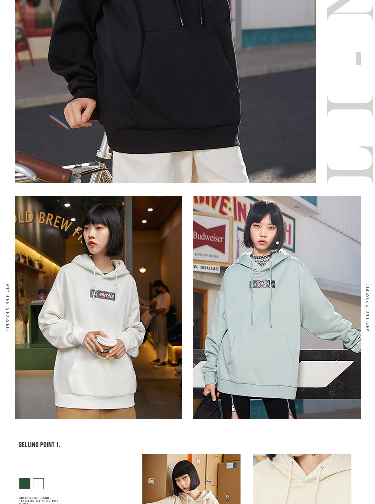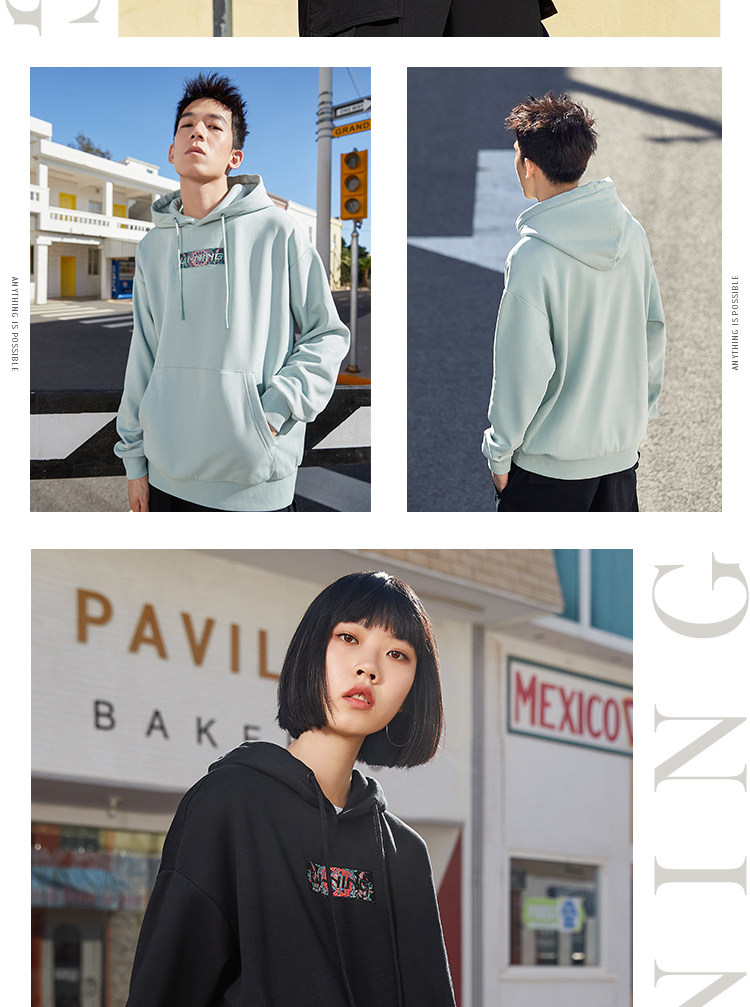 Оболочка толстовка женский демисезонный новая коллекция официальный для влюбленной пары Пакет капюшон длинный рукав круглый воротник вышивка верх Одежда мужской Свободная спортивная одежда