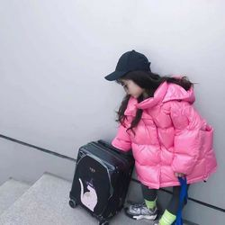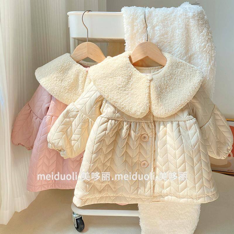 На девочку Зимнее платье новая коллекция детские на младенца Детский океан меховой воротник фасон средней длины стиль кожаная одежда хлопок Куртка куртка