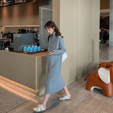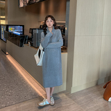 Платье беременной женщины осень-зима 2021 новая коллекция длинный рукав Свободный большой размер шерстяная пряжа трикотажный платье длинный фасон Океан