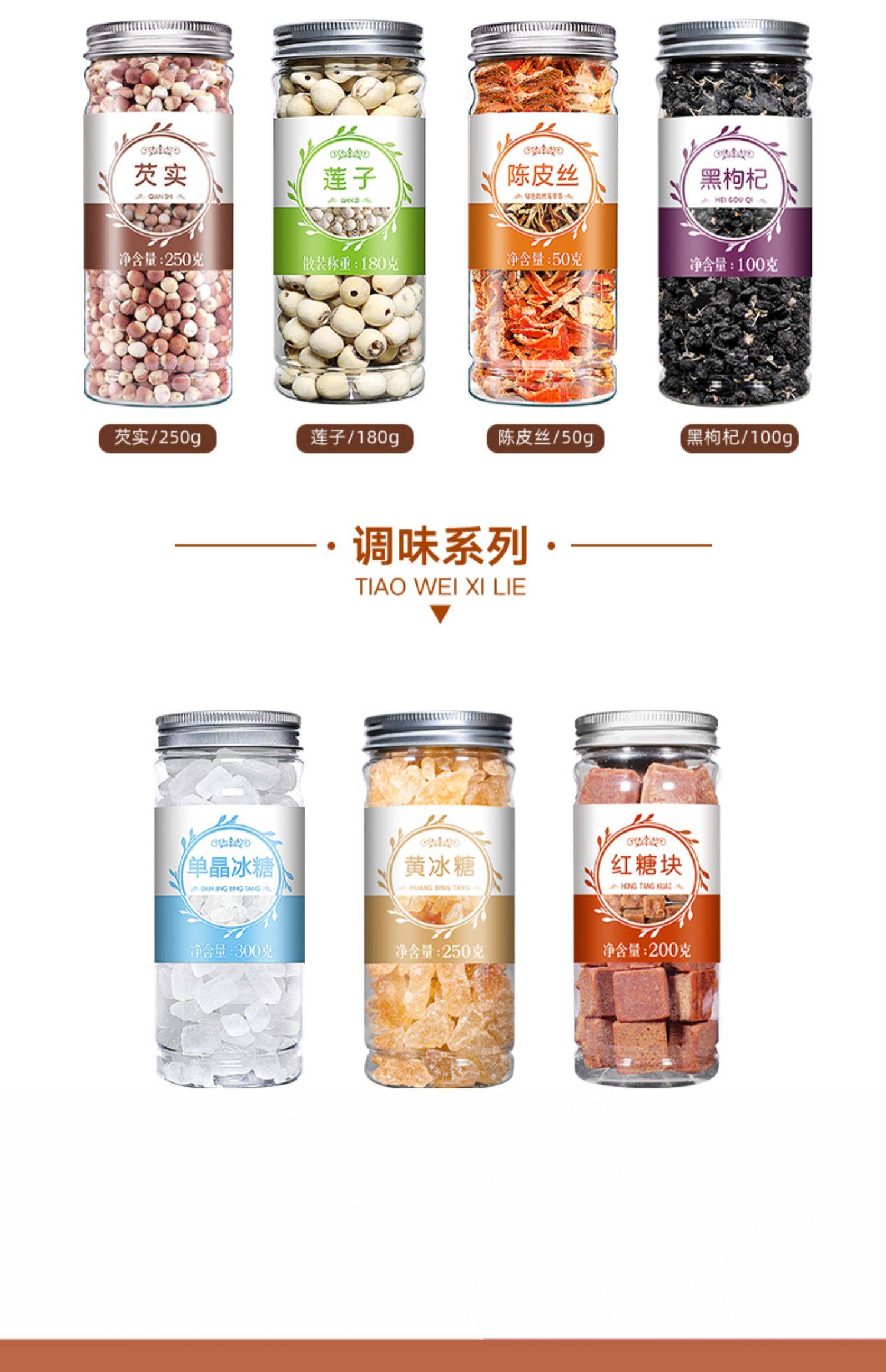 Вкус: Замороженные духи лимонные таблетки 20 г, Замороженный сушеный зеленый апельсин 35 г, Замороженный сушеный kumquat 45g, Замороженные сушеной лимонные ломтики 60 г, Замороженный сушеный маракуйя 65 г, Красочный фруктовый чай 180 г, Huaihuai Flower Honey 210g, Роза 50 г., Шина Chrysanthemum 35G, Osmanthus 30g, Золотой и серебряный цветок 25g, Жасмин 15G, Hangju 35G, Снежный хризантема 30 г, LUO SHENHUA 40G, Синий бантики 40g, Baihe 100G, Золотой император Chrysanthemum 20G, Chenpi 80G, Корень лопуха 100 г, Водяные листья 120г, Сирень чай 45 г, Мятный чай 50 г, Тотарный чай 108G, Astragalus 125G, CODONOPSIS 180G, Анжелика Фильм 80G, Liccori 120g, Имбирь 90G, Дэн Джин 180G, Одуванчик оставляет 50 г, Одуванчик 205G, Taizi 150G, Ophiopogon 180g, Сенна оставляет 60г, Cistanche 110g, 110 г, Западный женьшень 100г, Ючжу 65G, Кошачья трава 200 г, TU Fuling 70G, Yejiao Teng 100g, Белый 110 г, Белый 190G, Chuanxiong 120g, Белый 100 г хирургии, 150г, Лонганское мясо 120г, Красный Jujube таблетки 80г, Тотачка 150 г, Черный 枸杞 100G., Maca Film 125g, 120 г малины, Семя лука 180 г, Шелк 250г, Schisandra 140g, Боярышник Фильм 80G, Кассия 270г, Ячмень чай 200г, Черный Гречка 270 г, Желтая гречка 150 г, Lotus 180g, Poria 180g, Lang Shi 250g, Gardenia 110G, Жирный море 150 г, Luo Han guoren 60g, Сладкий миндаль 200G, Фрукты Seabuckthorn 100 г, Сахар с желтой скалой 250 г, Красный Сахар 200G, Белый Рок сахар 300г