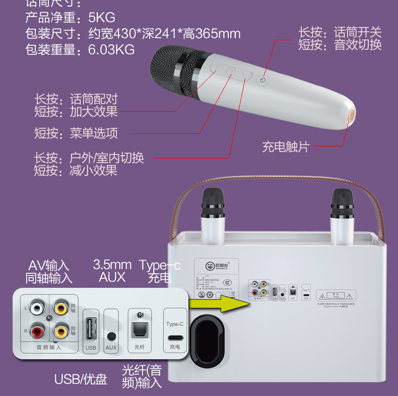 Футормическая семья КТВ без Line Hrounding Audio Machine TV K S Песня Artifact Пользователь за пределами Пения Микрофон Мобильный телефон синий зуб полностью Люди k песня для комплект Учитель речи Мегапорн
