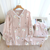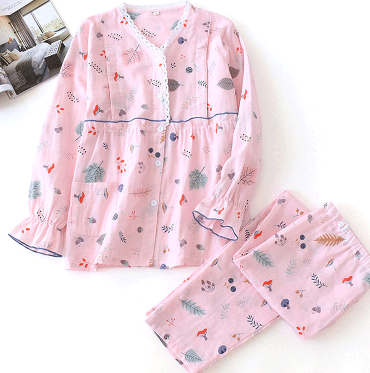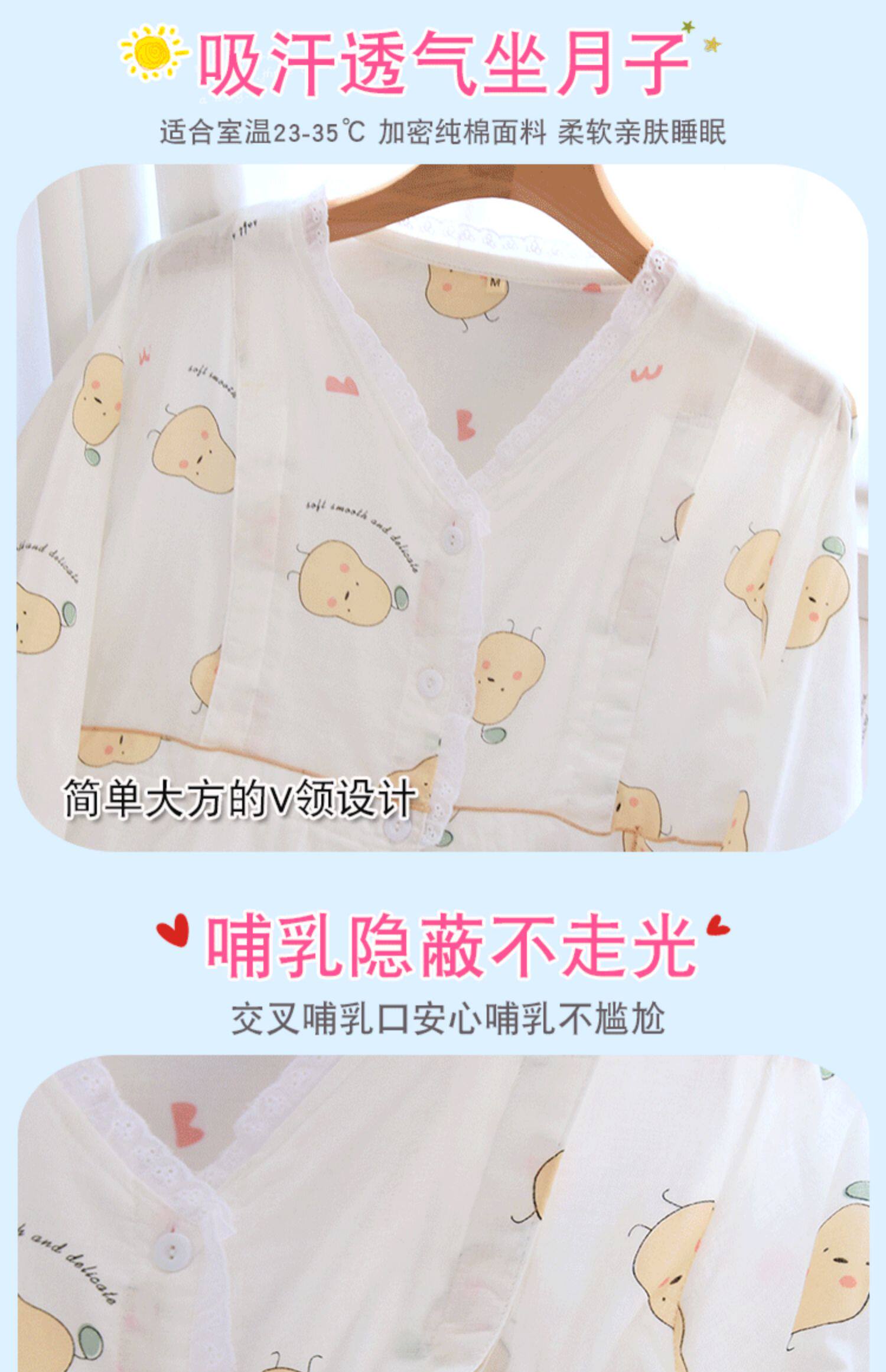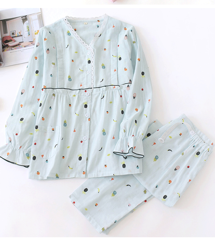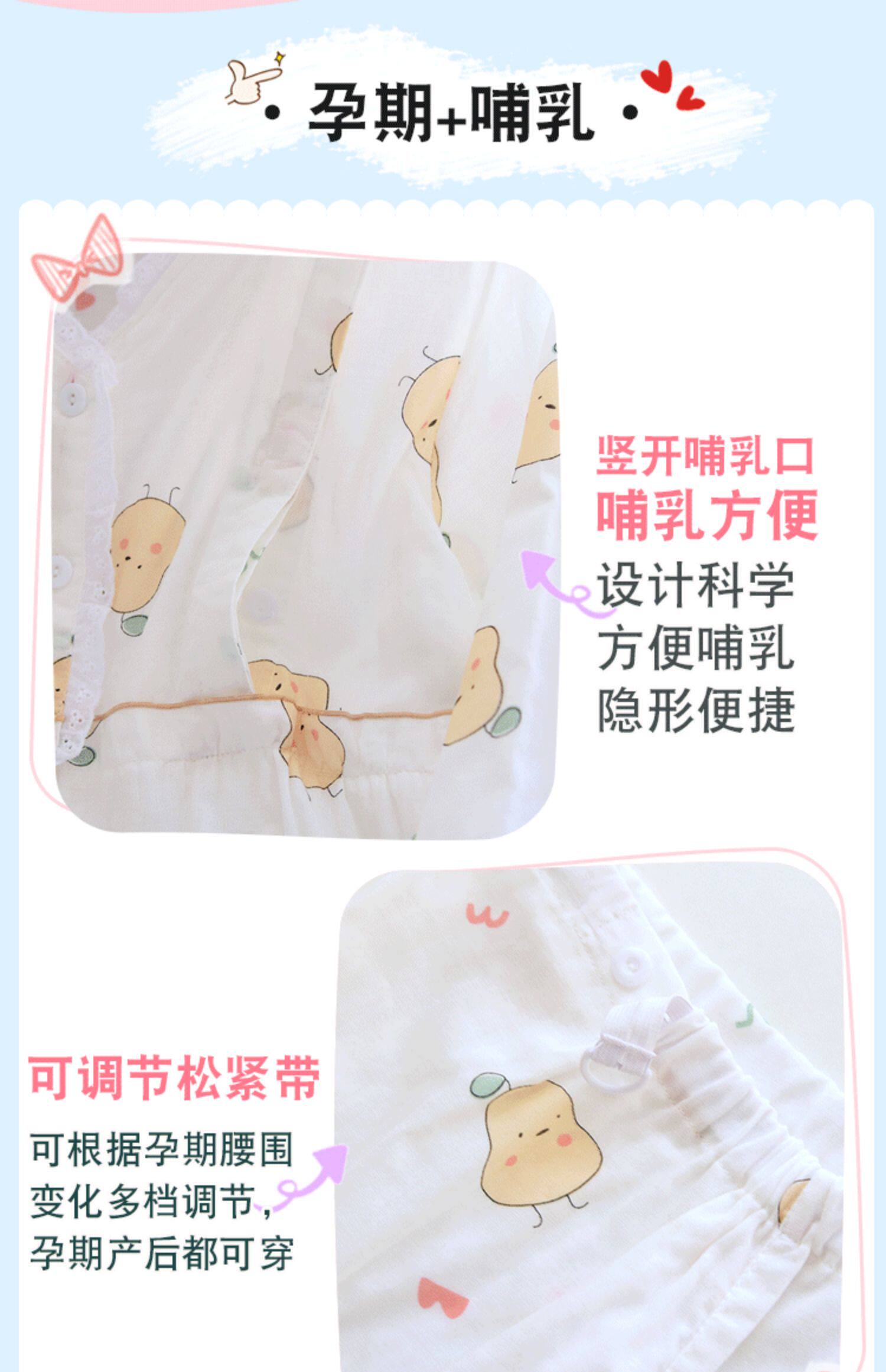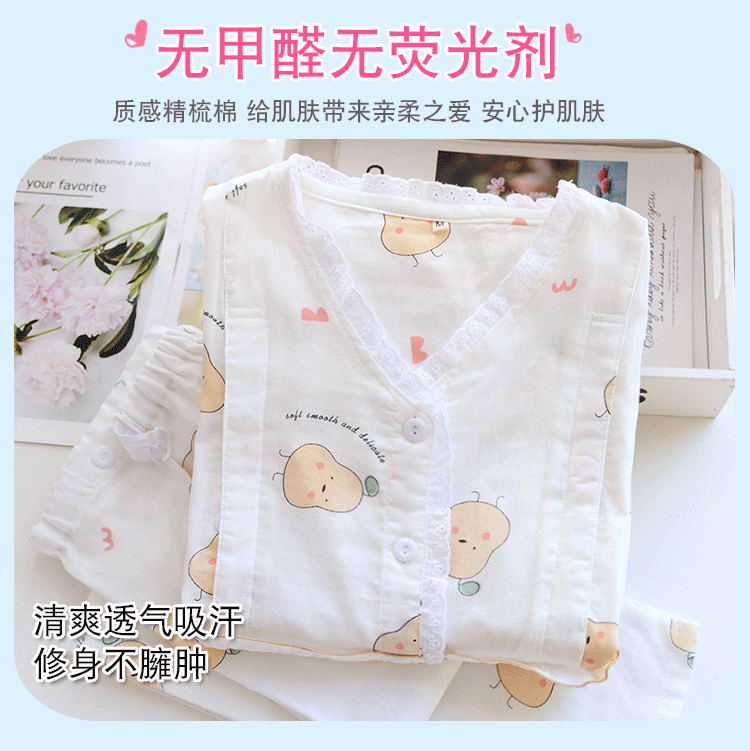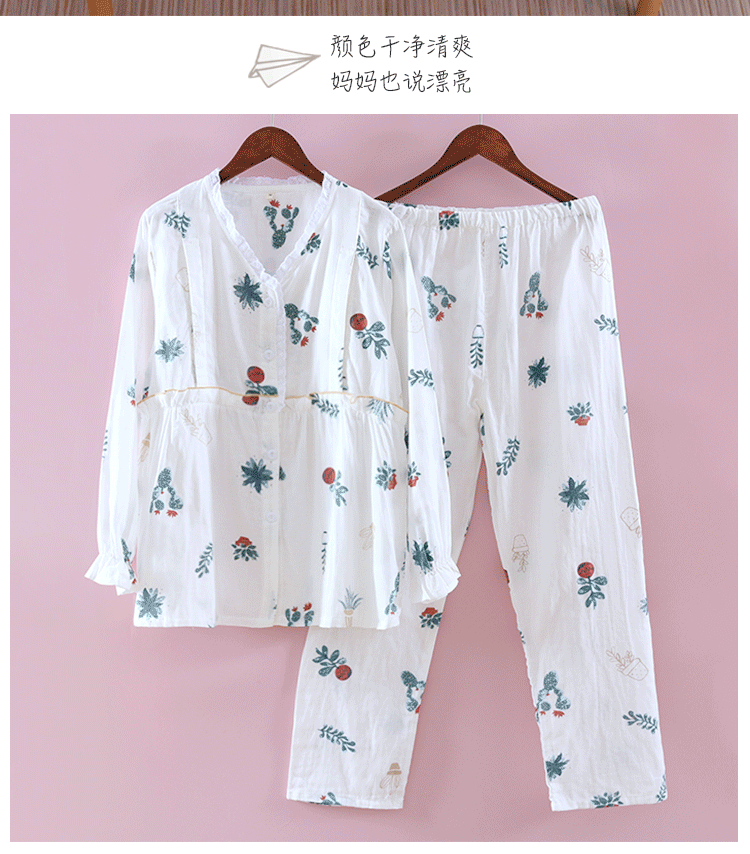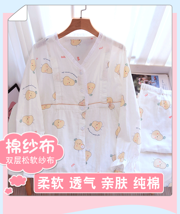 Лето лето стиль После родов 6 апреля чистый хлопок Тонкий стиль Грудное вскармливание беременных женщин пижама большой размер 200 кит.фунт Марля четвертая