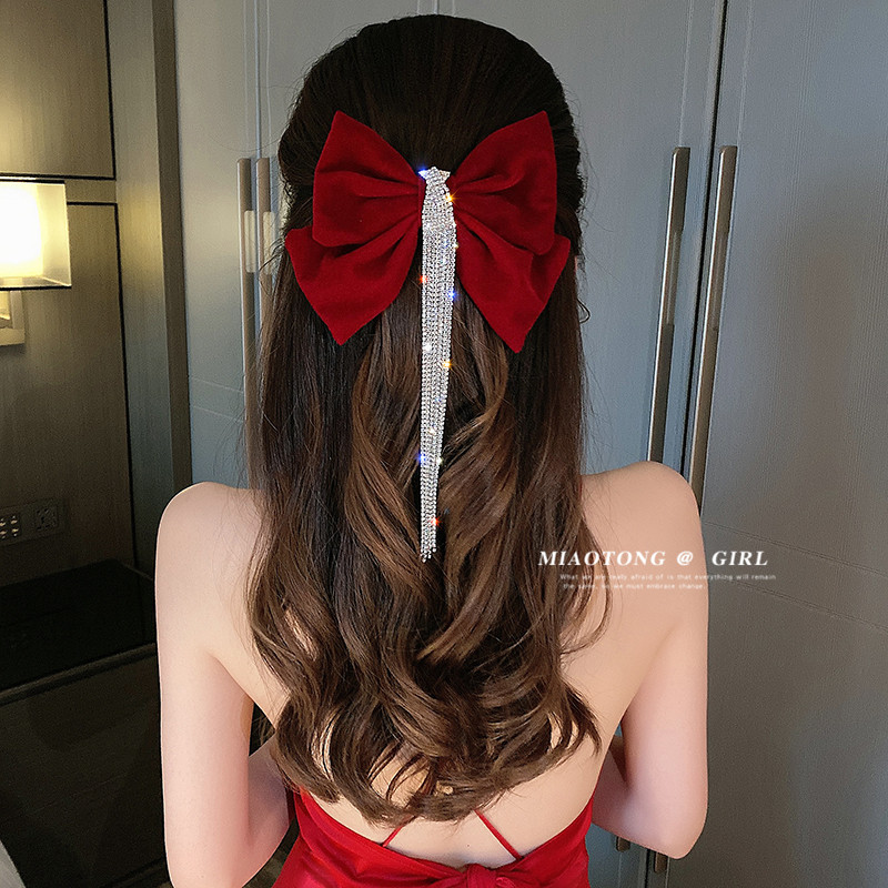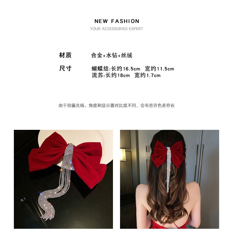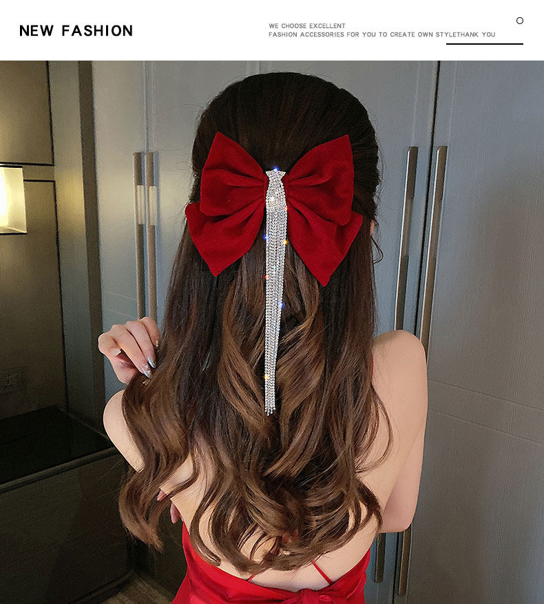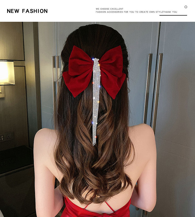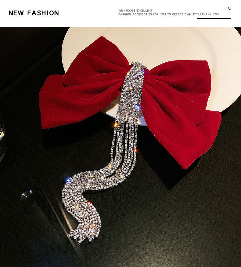 Цвет: Флэш-сверление с бахромой Заколка для волос красный, Флэш-сверление с бахромой Заколка для волос черный